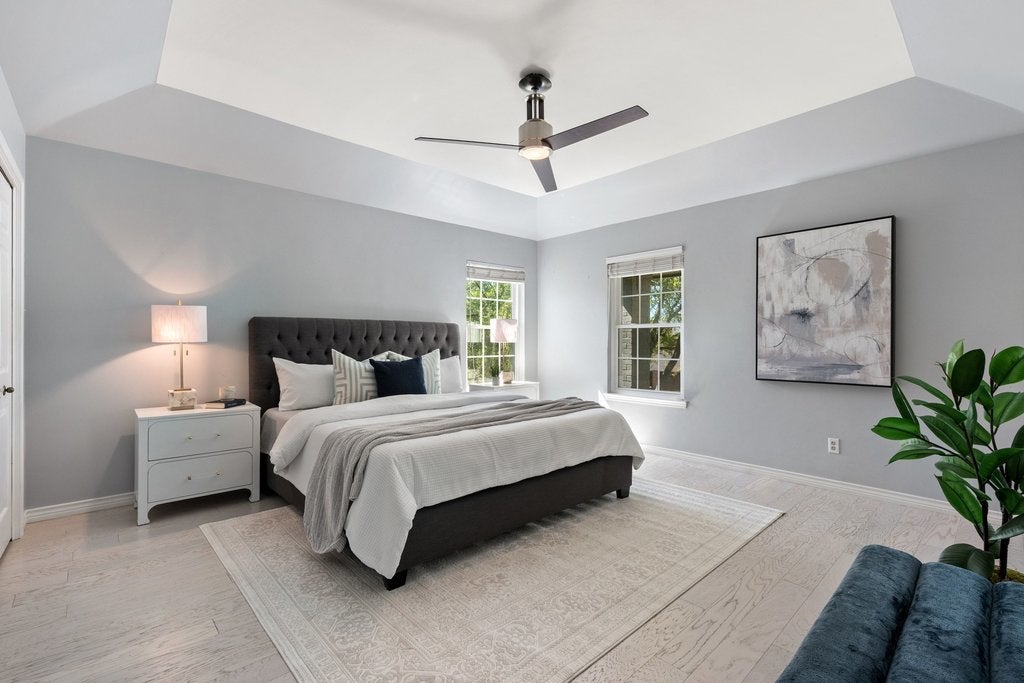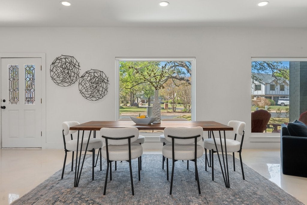 Meticulously updated, this turnkey modern gem is a rare find in North Austin. Perfectly positioned on a prime 1/3+ acre corner lot, it offers unmatched privacy with no direct backyard neighbor. The stunning exterior sets the stage, but step inside and you'll find an interior that’s nothing short of extraordinary, perfectly designed for entertaining. Abundant natural light streams through upgraded, oversized energy-efficient windows, highlighting the sleek lines, polished concrete floors, and crisp modern finishes. The open design effortlessly blends multiple living and dining spaces, perfect for hosting. At the heart of it all is a chef’s dream kitchen, outfitted with top-tier built-in appliances—a gas range with a contemporary hood, a wall oven and microwave, and a built-in bar with a wine cooler—all designed for effortless entertaining and culinary creativity. The second level is reserved for privacy, featuring two secondary bedrooms, a full bath, and a generous primary suite. Flooded with natural light, the primary offers a serene retreat with an updated ensuite bath. With all bedrooms tucked away upstairs, the main level transforms into the ultimate entertaining haven, seamlessly extending to the private backyard. Here, you’ll find a secluded, nature-filled escape with no direct rear neighbors—ideal for outdoor gatherings or peaceful relaxation. This home has been thoughtfully enhanced with numerous updates, including, new windows, garage doors, epoxy flooring, permanent holiday lighting, an upgraded HVAC, RO water filtration system, and an MSC mosquito system—ensuring comfort and enjoyment indoors and out. And the location? Unbeatable. Just 10-15 minutes to Lake Travis parks or The Domain and The Arboretum, 8 minutes to Lakeline Mall, just over a mile to Balcones Country Club, and blocks from Spicewood Elementary and local parks. You’re at the center of it all, with endless opportunities at your doorstep. Homes like this are rare—don’t let this one slip away!