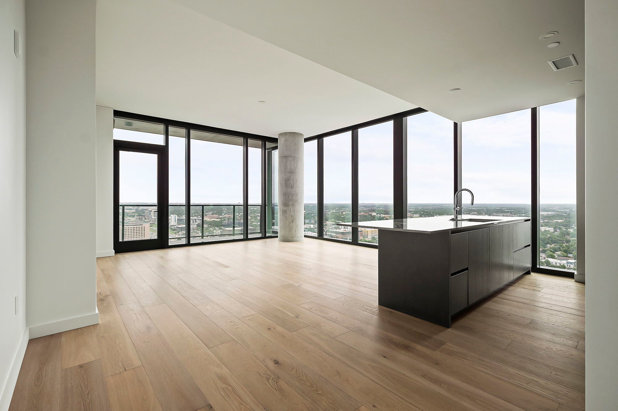 Residence 2812 at The Modern Condos delivers clean lines, thoughtful design, and effortless city living with expansive views and an open, light-filled layout. Floor-to-ceiling windows flood the space with natural light, while polished finishes and contemporary details create a sleek yet welcoming vibe. The kitchen features modern cabinetry, stone countertops, and stainless appliances—ideal for everyday living and entertaining. The open living area flows seamlessly to the private bedroom suite, offering comfort, privacy, and a calm retreat above the city. A neutral palette and quality materials make this home easy to style and timeless in feel. Rare for downtown living, this unit includes two assigned parking spaces with EV charging, providing unmatched convenience for electric vehicle owners. Residents enjoy secure access and a true lock-and-leave lifestyle, just minutes from Austin’s best dining, shopping, nightlife, and outdoor spaces.