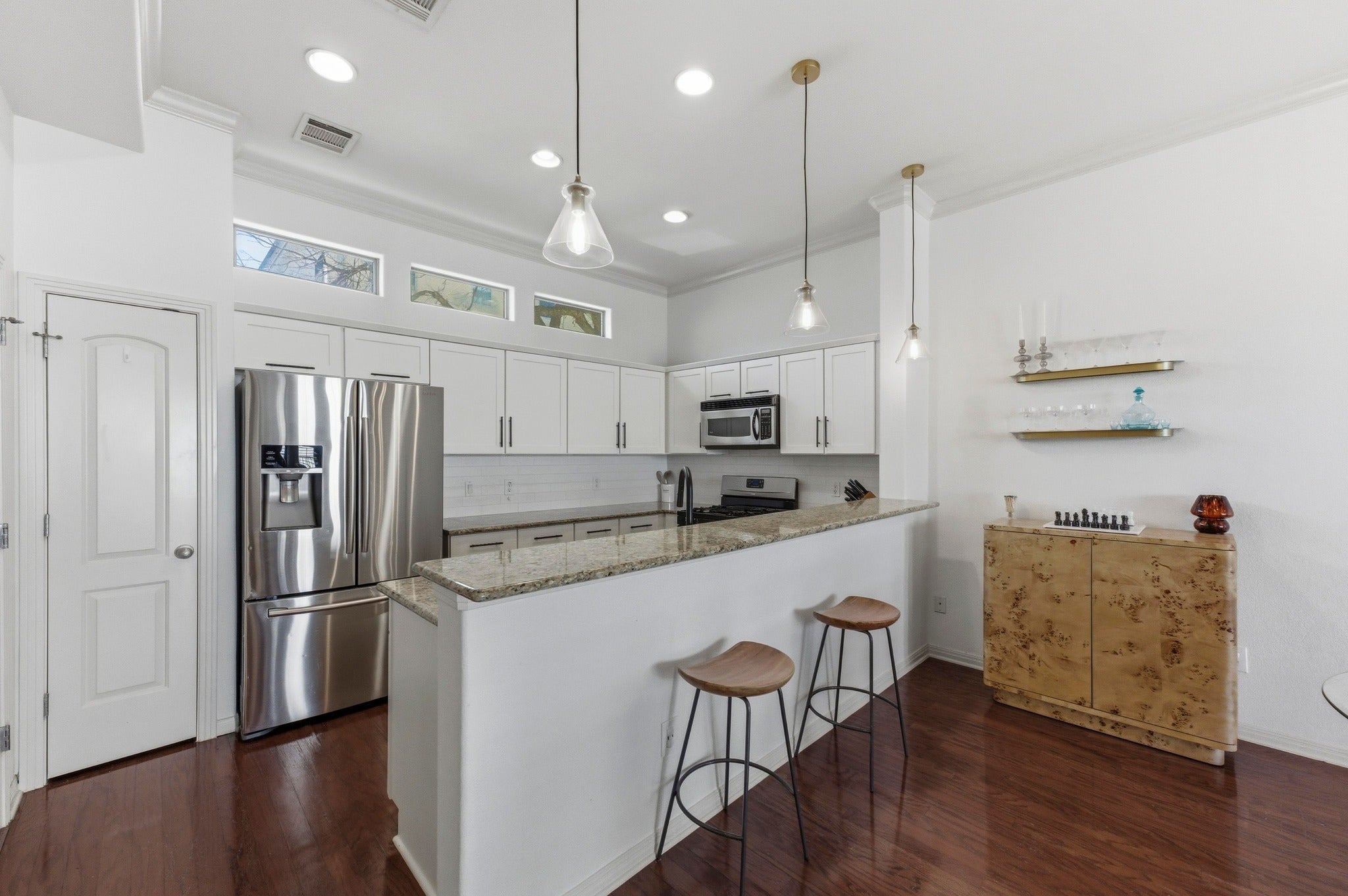 If you lived here, your week would be shaped by the neighborhood more than a schedule. Morning coffee along South Lamar. A midday walk when the weather’s too perfect to stay inside. Last-minute dinner plans that don’t require planning at all. Zilker Park, Barton Springs, and the trail around Lady Bird Lake are all part of your regular rotation, not special occasions. Inside, the three levels of living give your days structure without rigidity. One level to work and focus, one to settle in at night, one for everyday living and hosting. The office isn’t an afterthought, it’s a true workspace that makes working from home feel sustainable. Two bedrooms offer comfort and privacy, whether you’re hosting visitors or spreading out on your own. The design is classic and clean throughout, with finishes that feel intentional and easy to live with. The kitchen and baths are polished without being flashy, and details like updated lighting, hardware, and fixtures add to the sense that the home has been carefully maintained. Storage is generous and practical, and the layout allows each room to be used the way it’s meant to be used. Outdoor space is part of the lifestyle here. Multiple balconies give you room to step outside with a drink, take a break between meetings, or wind down in the evenings. The rooftop deck extends your living space even further and becomes a natural gathering place for sunsets, quiet nights, or hosting friends before heading out. A two-car garage, in-unit laundry, and easy access in and out of the neighborhood make day-to-day life feel seamless. Living at 1115 Kinney Ave #15 puts you close to everything without feeling caught in it. You can be social when you want, quiet when you don’t, and always a few minutes from whatever mood the day calls for. It’s the kind of place where friends naturally suggest “your place” because everyone already knows the area and loves being here.