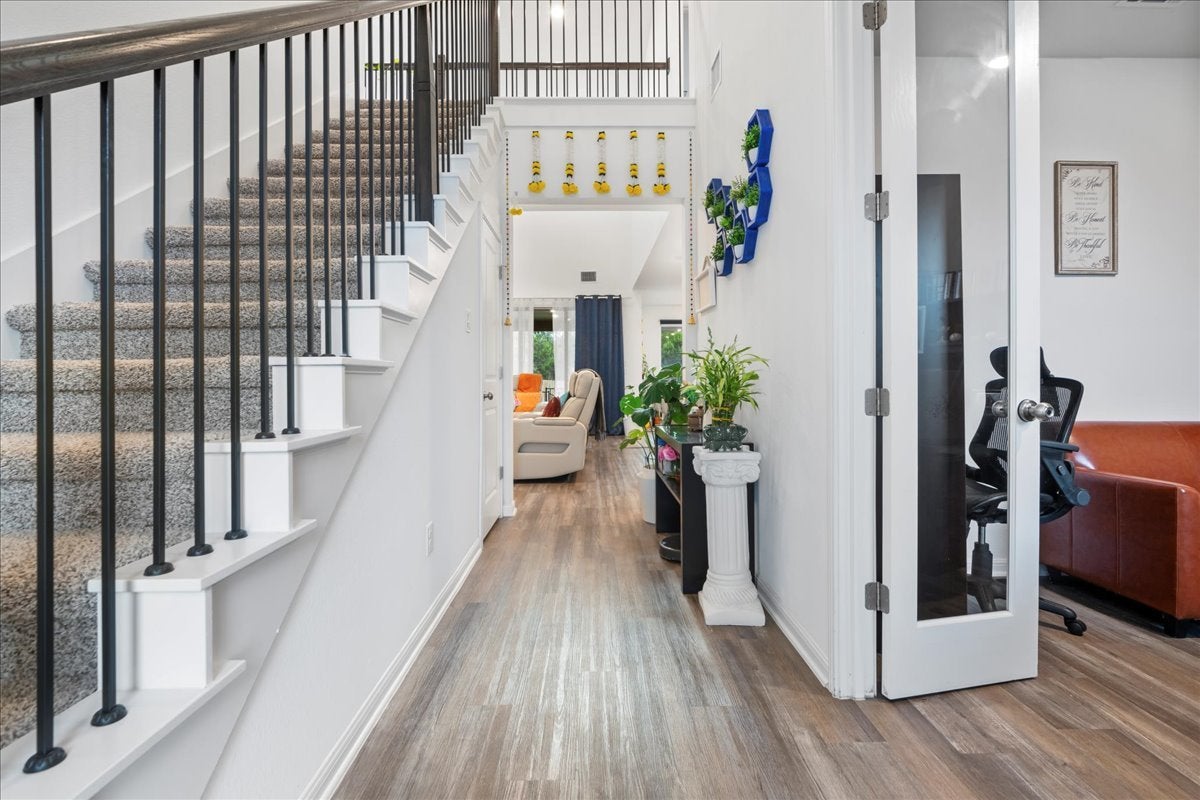 Welcome to 209 Terra Manor Trail — a beautifully designed Taylor Morrison home that effortlessly blends modern sophistication with everyday comfort. Offering 4 spacious bedrooms, 3.5 baths, and a dedicated office, this residence provides an ideal layout for both relaxation and productivity. As you enter, you’re greeted by thoughtfully crafted living spaces filled with natural light and an inviting flow. The chef-inspired kitchen stands as the heart of the home, featuring white cabinetry, a sleek vent hood, and a generous center island that serves as the perfect gathering spot for casual meals, entertaining, or weekend cooking. Its open design ensures seamless connection to the dining and living areas, creating an atmosphere that is both welcoming and functional. The dedicated office room offers privacy and comfort for working from home, studying, or managing household tasks. Step outdoors to the covered patio, an ideal space for morning coffee, evening dining, or simply unwinding. Beyond the patio lies a tranquil greenbelt, offering added privacy, scenic views, and a peaceful natural backdrop that enhances the home’s serenity. Enjoy significantly reduced electricity bills with the home’s integrated solar panel system with a charge. Beautifully finished and thoughtfully designed, this home provides the ideal balance of elegance, convenience, and modern living—perfect for families, professionals, and anyone seeking a refined retreat.