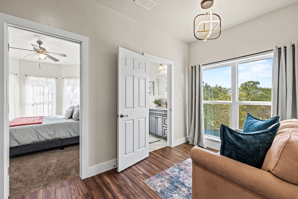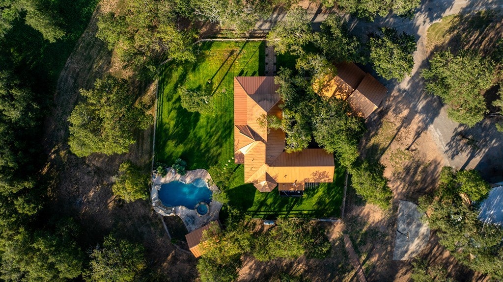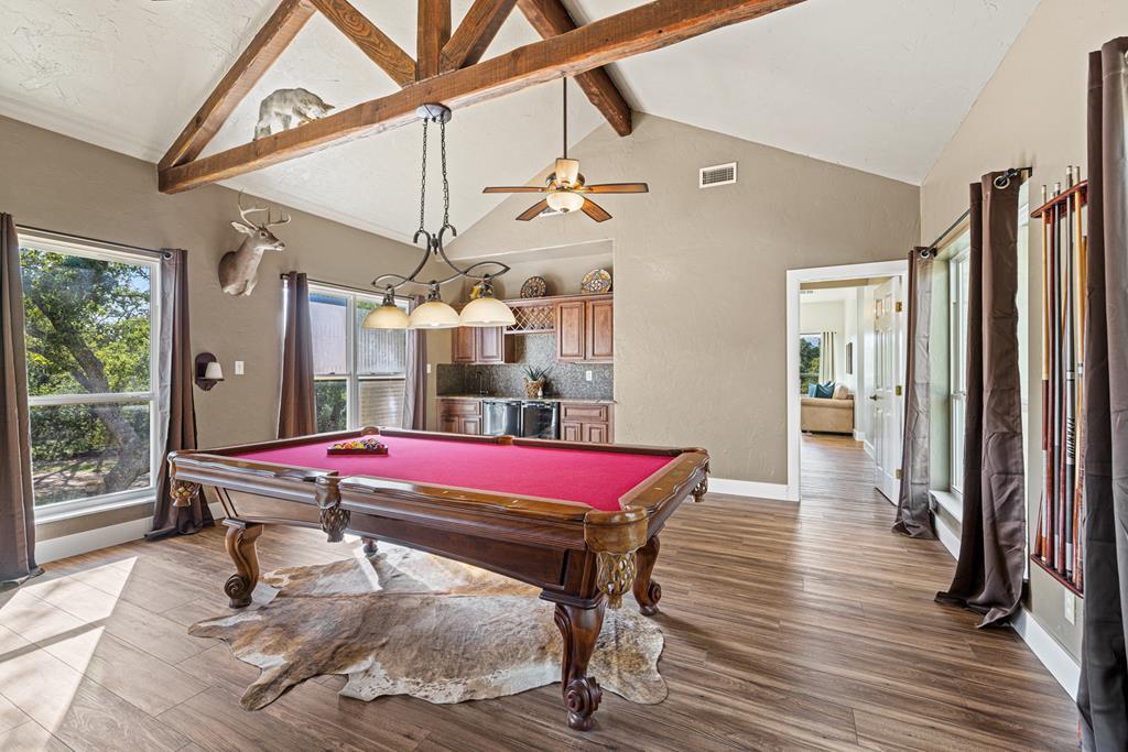 Discover this incredible 25+/- ac. property nestled in the heart of the Hill Country Wine trail. Just 8 miles from Fredericksburg, this location offers easy access to Austin and San Antonio. The residence features a 4,000 sqft home w/ 4 bdrms, 3.5 bath, wrap around porches, luxury pool w/ beautiful waterfall, fully equipped outdoor kitchen, cabana, and half bath w/ outdoor shower. Upgraded countertops and custom cabinetry throughout, 2 primary suites (1 lower level/ 1 upper level), large gameroom w/ balcony, wet bar, and wine fridge. 3-car garage w/ RV storage & separate large workshop. Additional amenities include a fully furnished tiny home, stock pond, whole property generator, half court basketball court, and about 570 ft of Pedernales River frontage. Beautifully manicured post oak & live oak trees, open native field, 80 gpm well & the property is completely perimeter fenced. This UNRESTRICTED & agriculturally exempt property, blends commercial potential with luxurious living. Entrance off of 290 offers amble possibilities for investors, wineries, or those seeking a premier quiet lifestyle in Texas Hill Country. Please note, there is more acreage available with commercial opportunity. 25 Acres to be surveyed out of larger parcel.