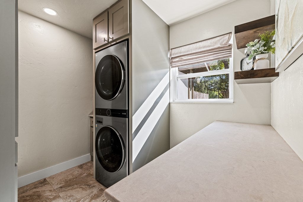 - Built-In Gas Range, Bar Fridge, Built-In Oven, Washer/Dryer Stacked, Dishwasher, Disposal, Ice Maker, Microwave, Propane Cooktop, Refrigerator, Stainless Steel Appliance(s), Wine Refrigerator