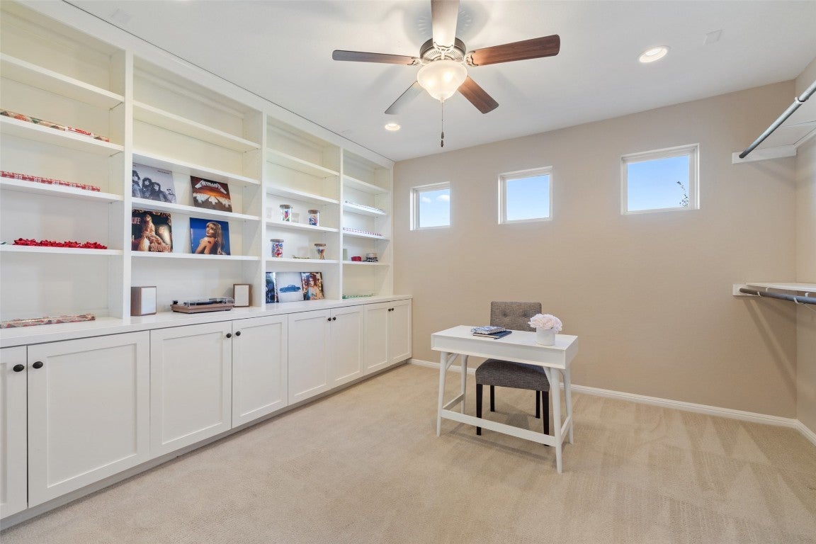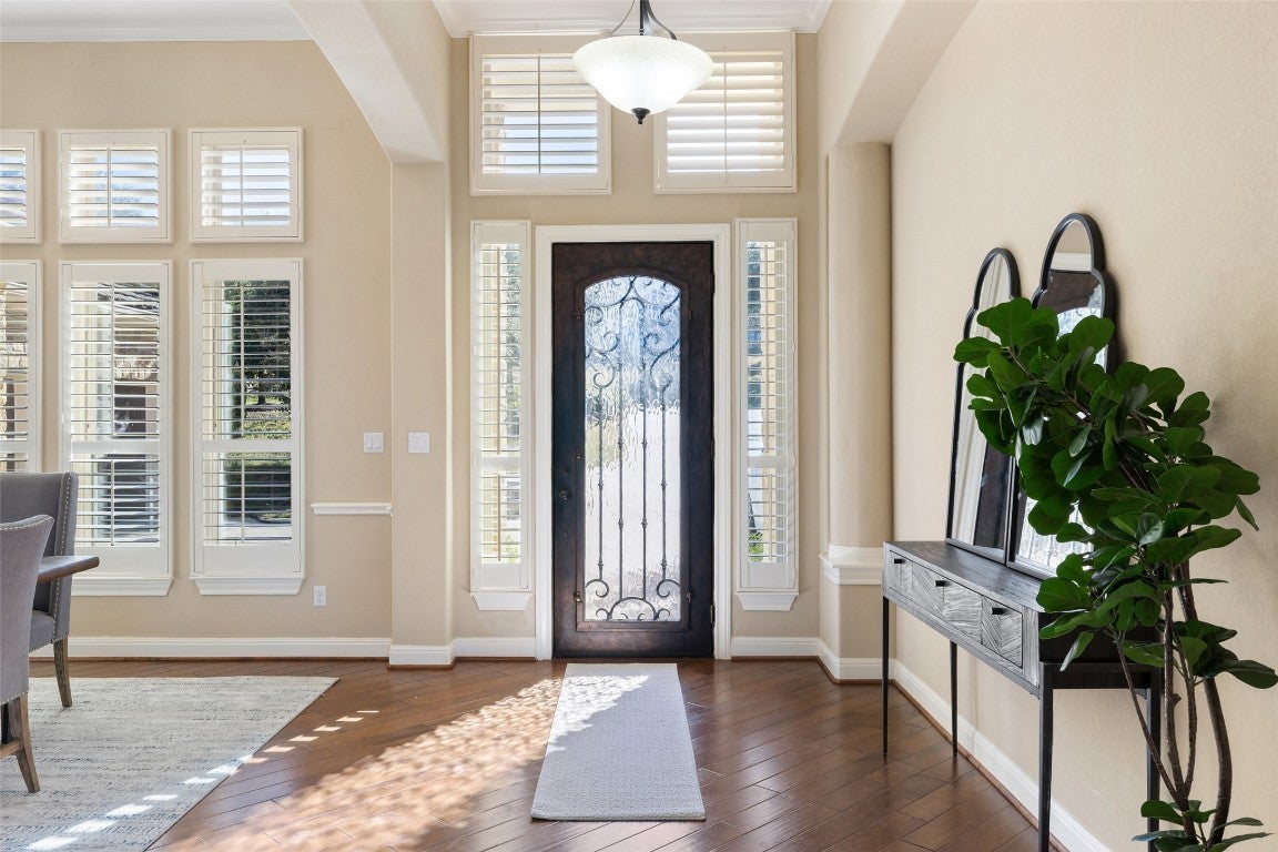 Nestled on a private one-acre lot within a gated community, this custom luxury estate offers a rare blend of refined design, resort-style outdoor living, and everyday functionality—ideal for buyers seeking privacy, space, and high-end finishes in the Lakeway area. Designed with bespoke craftsmanship and thoughtful detail, the home features rich wood flooring, custom millwork, plantation shutters, and built-in cabinetry throughout. The open-concept layout creates seamless flow between living, dining, and entertaining spaces. The chef’s kitchen is equipped for both daily living and hosting, featuring three ovens, six gas burners with griddle, a warming drawer, and an expansive Butler’s pantry with bar, wine cooler, and prep sink. Living spaces include a cozy family room with built-in bookcases and integrated sound, along with a spacious great room anchored by a striking stone gas fireplace—ideal for entertaining or relaxing. The primary suite offers a private retreat with a spa-inspired bath, including a 7-foot Jacuzzi tub, walk-in shower with dual shower heads, and a custom boutique-style closet by Programme Martin. Secondary bedrooms feature generous walk-in closets and serene views, while the upstairs game room with full bath provides flexible space for a media room, guest suite, or playroom. A well-appointed utility room includes a second refrigerator and additional sink. The outdoor experience is truly exceptional, featuring: * A tranquil koi pond with cascading waterfall * Two additional water features * Multiple outdoor living areas, including a slate-tile terrace with gas and water access * Premium AstroTurf play area with custom wooden swing set * Raised garden beds and lush landscaping Ideal for buyers seeking a private estate with room to entertain, work from home, and enjoy elevated outdoor living in a secure gated setting.