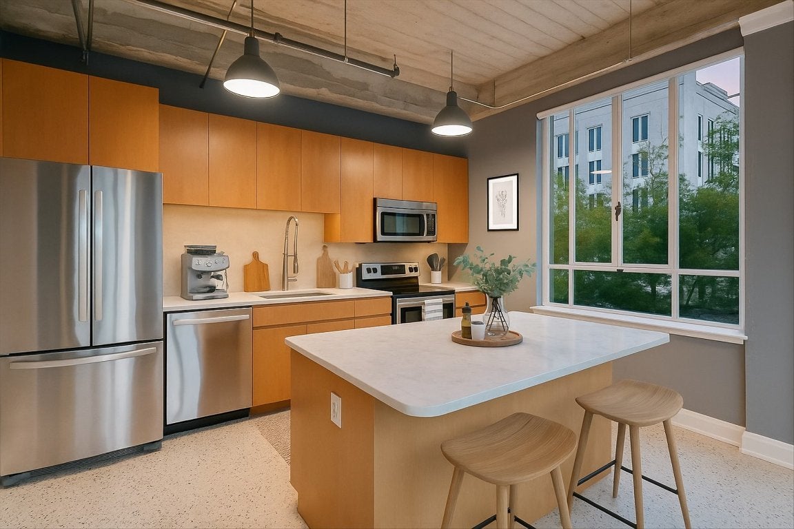 One-bedroom urban studio loft in the historic Brown Building, deep in the heart of downtown Austin with super rare major tax savings from the historic tax exemption (up to about 75% w/homestead and estimated 35% without-investors). Coveted corner unit showcasing four massive sections of windows, super views and cheery light streams. Built in 1938, this Art Deco landmark blends timeless architecture with modern comfort. Inside, the open loft layout features tall 10 ft+ concrete ceilings, spacious updated kitchen w/island, in-unit full washer and dryer connections, updated bath, stainless appliances and bright open spaces capturing the energy and heartbeat of the city below. Quiet, super secure building with an elegant marble lobby, original vintage mailboxes, three fast elevators, private fob access and a callbox for guests and deliveries. Amenities include a rooftop deck with panoramic skyline views, well-equipped fitness center and one easy access space in attached garage parking. HOA covers water, sewer, trash, and parking. Central chilled-water HVAC keeps utilities very low resulting in Brown Building residents enjoying the most economical downtown ATX living. Google high-speed internet. Very pet friendly community with no weight limit. Warrantable for conventional financing. No STR; 6-month minimum lease. Step outside and experience your best life. Sip coffee at Houndstooth, Jo’s, or Merit, dinner at Comedor, Red Ash, or La Condesa, and weekend visits to the Downtown Farmers Market at Republic Square. Trader Joe’s, Lady Bird Lake, 2nd Street District, Hike/Bike Trails, State Capitol, and Waterloo Park are all just a short walk away. Truly a rare gem offering history, design, and location in one classic downtown address.