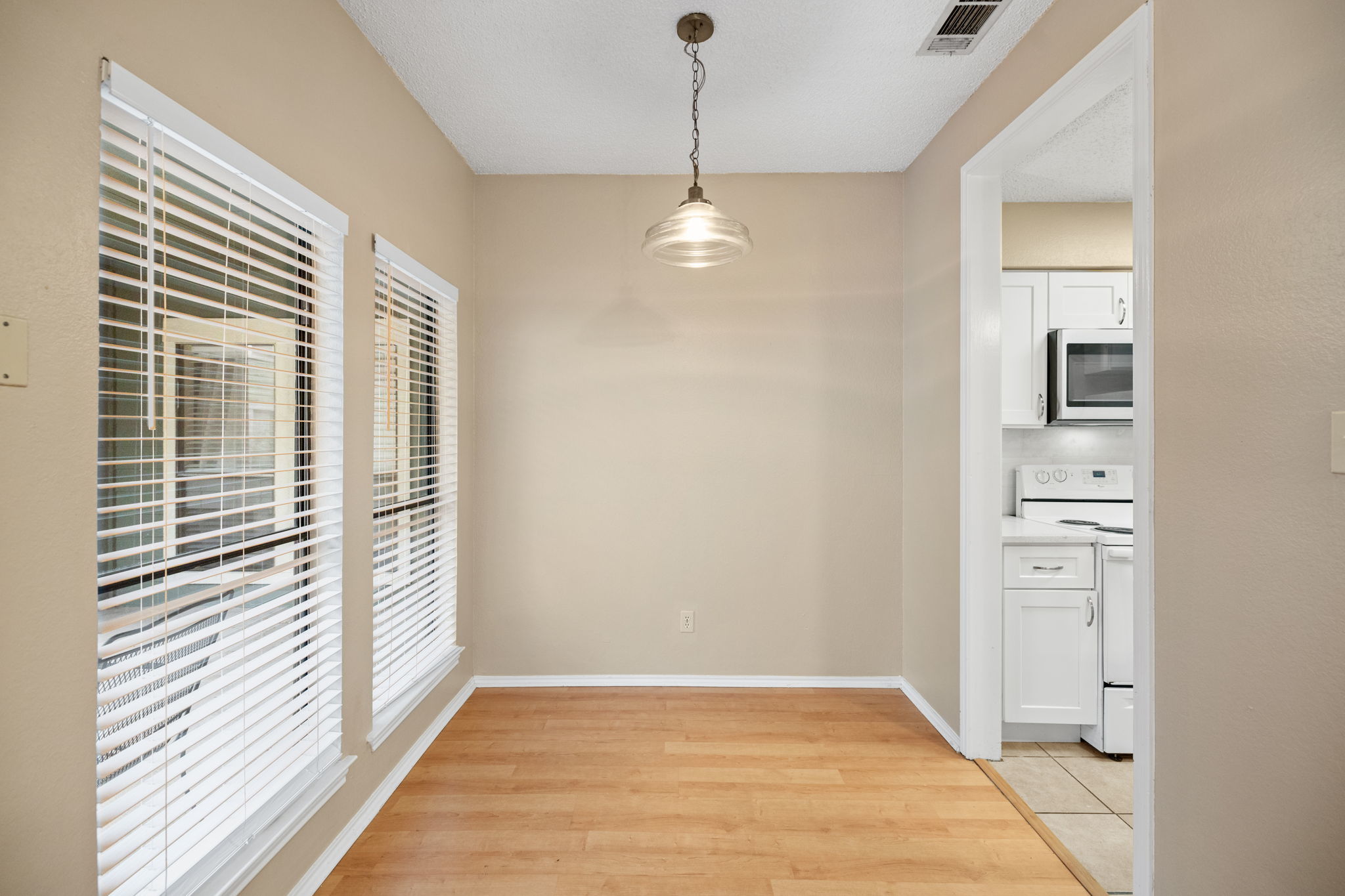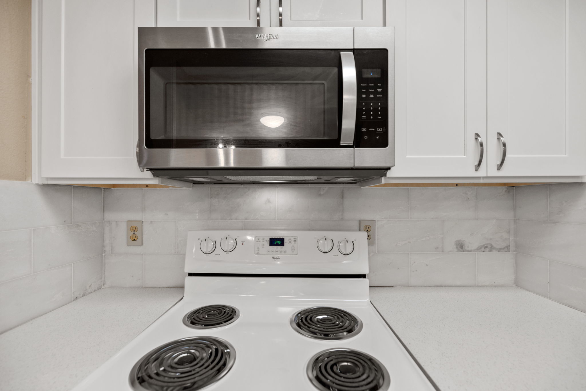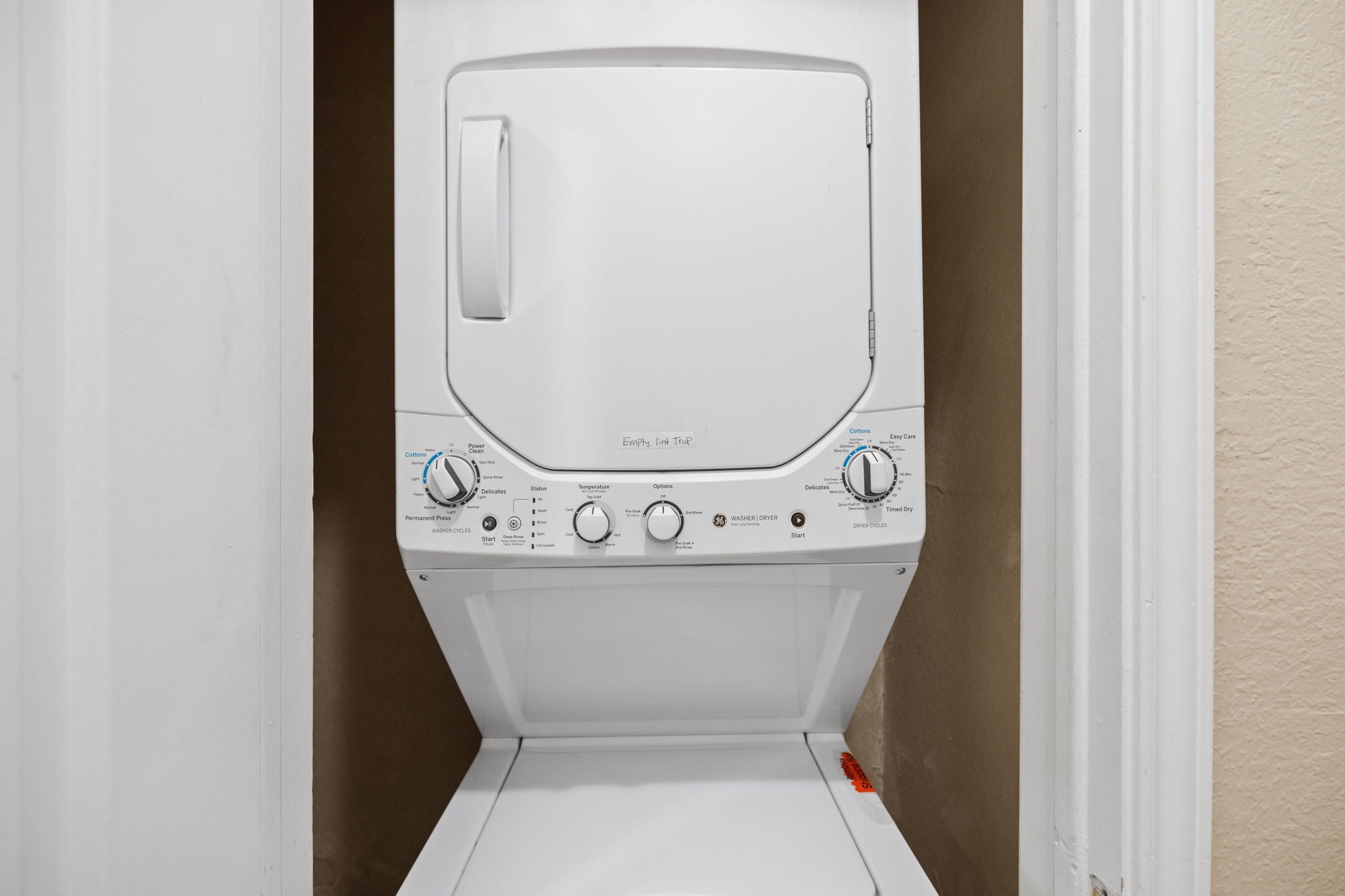 - Washer/Dryer Stacked, Dishwasher, Free-Standing Electric Range, Disposal, Microwave, Refrigerator