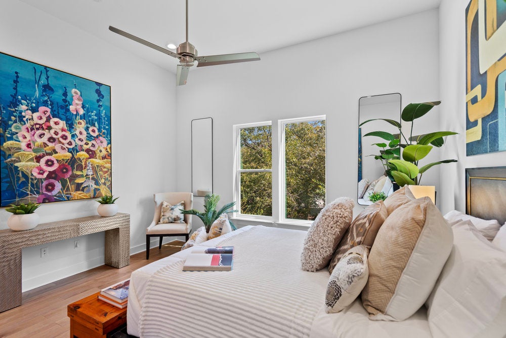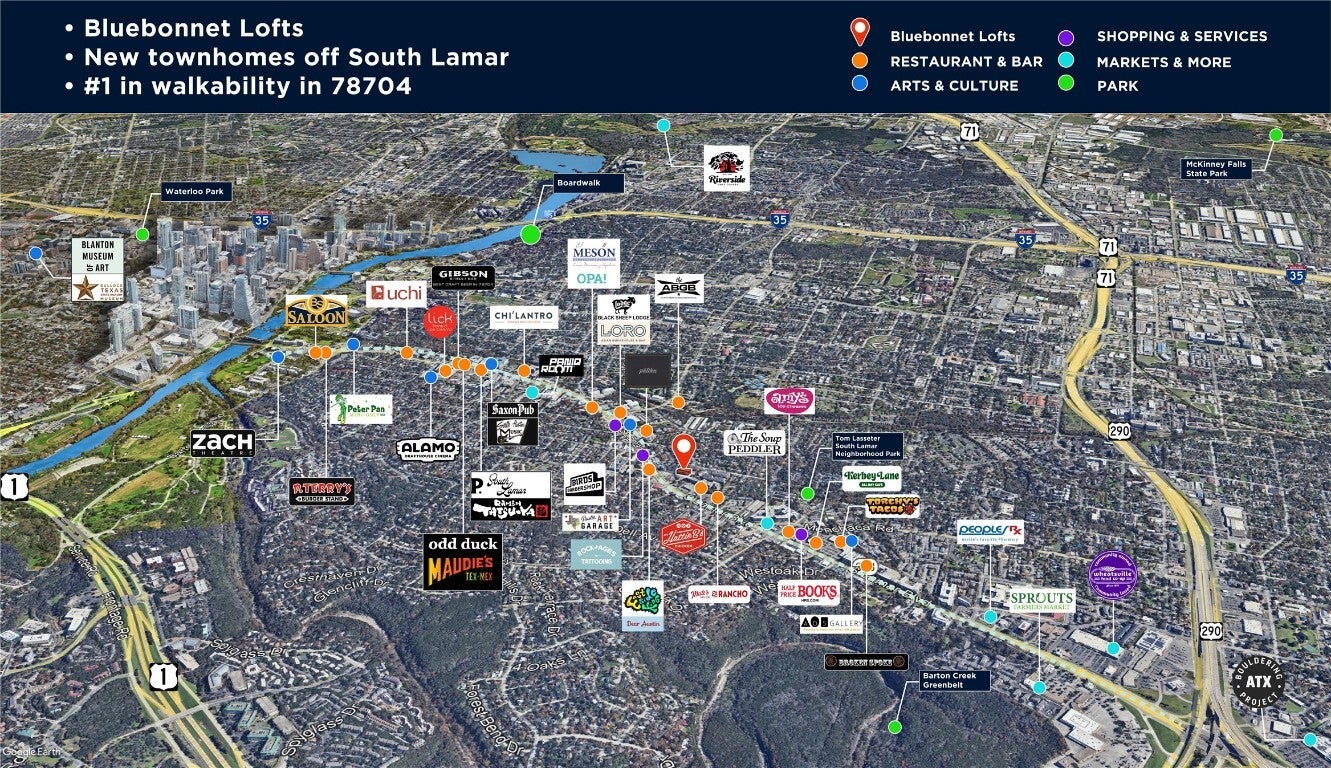 ASK ABOUT OUR YEAR END PROMO - 2% of SALES PRICE CAN BE USED AS FLEX CASH (RATE BUY DOWN, etc.). PRIME LOCATION! TWO STORY TOWNHOME IN THE HEART OF VIBRANT SOUTH LAMAR AT A GREAT PRICE! First floor living, light and bright, high-end finishes, small backyard, 2 nd floor bedroom overlooking mature trees. New construction, just completed. This home is a hidden gem, tucked away in a small private 18 unit gated community on Bluebonnet Lane. Enjoy the walkability of this convenient location - cool cafes, restaurants, bars, parks, theaters, green spaces, and artistic experiences are minutes from your doorstep. Less than 2 miles to Downtown, Lady Bird Lake, Zilker Park, and easy access to Hwy 290, 360, and Mopac. Spacious open concept floor plan that lives like a single- family home. Hardwood floors throughout, 12 foot ceilings, 8 ft doors, recessed lighting, 1 car garage plus 1 additional parking spot. The kitchen is equipped with a breakfast bar, quartz countertops, BOSCH appliances, and upgraded soft-close cabinetry. Upstairs, the bright owners retreat is inviting with an ensuite bath with a large oversized walk-in shower with two showerheads, double vanity, large walk in closet. The secondary bedroom is huge like a second master, and has an ensuite bathroom. Laundry room is on the same floor as bedrooms for convenience. Experience indoor-outdoor living with 10 foot stackable sliding doors leading to a small yard and backing to mature trees. We also have a dog park for your furry best friend, or a short walk to popular Del Curto Park. HOA covers exterior maintenance, exterior insurance & landscaping of the yard. New home warranty included. Intown Homes is a trusted Texas home builder since 1980, building exceptional boutique townhome communities throughout Austin, Houston, and Dallas/Fort Worth. Call today for an appointment.