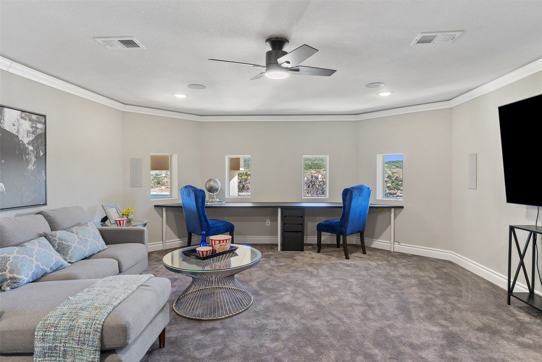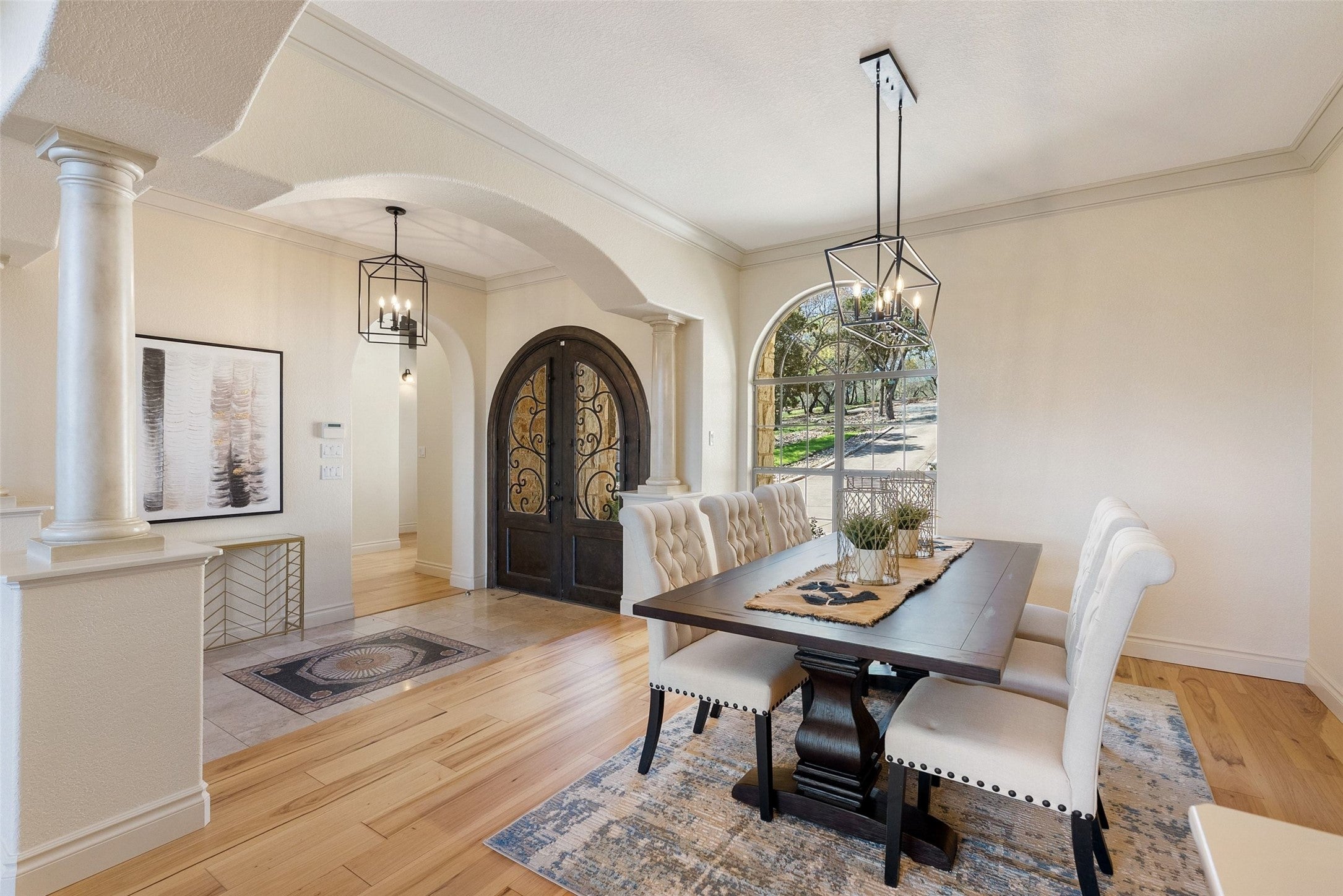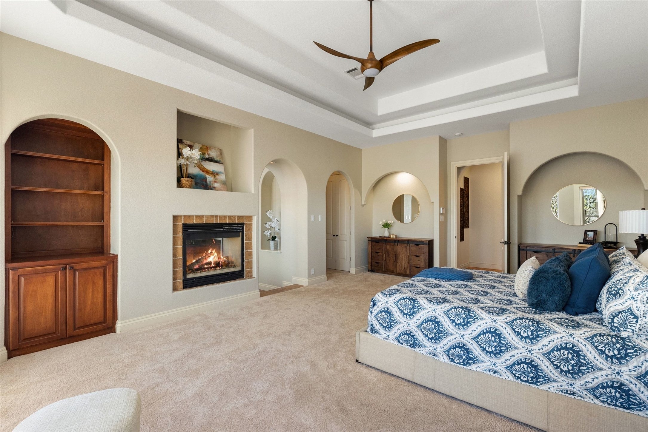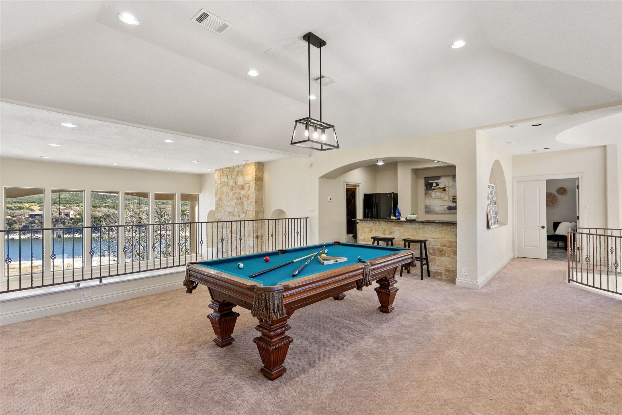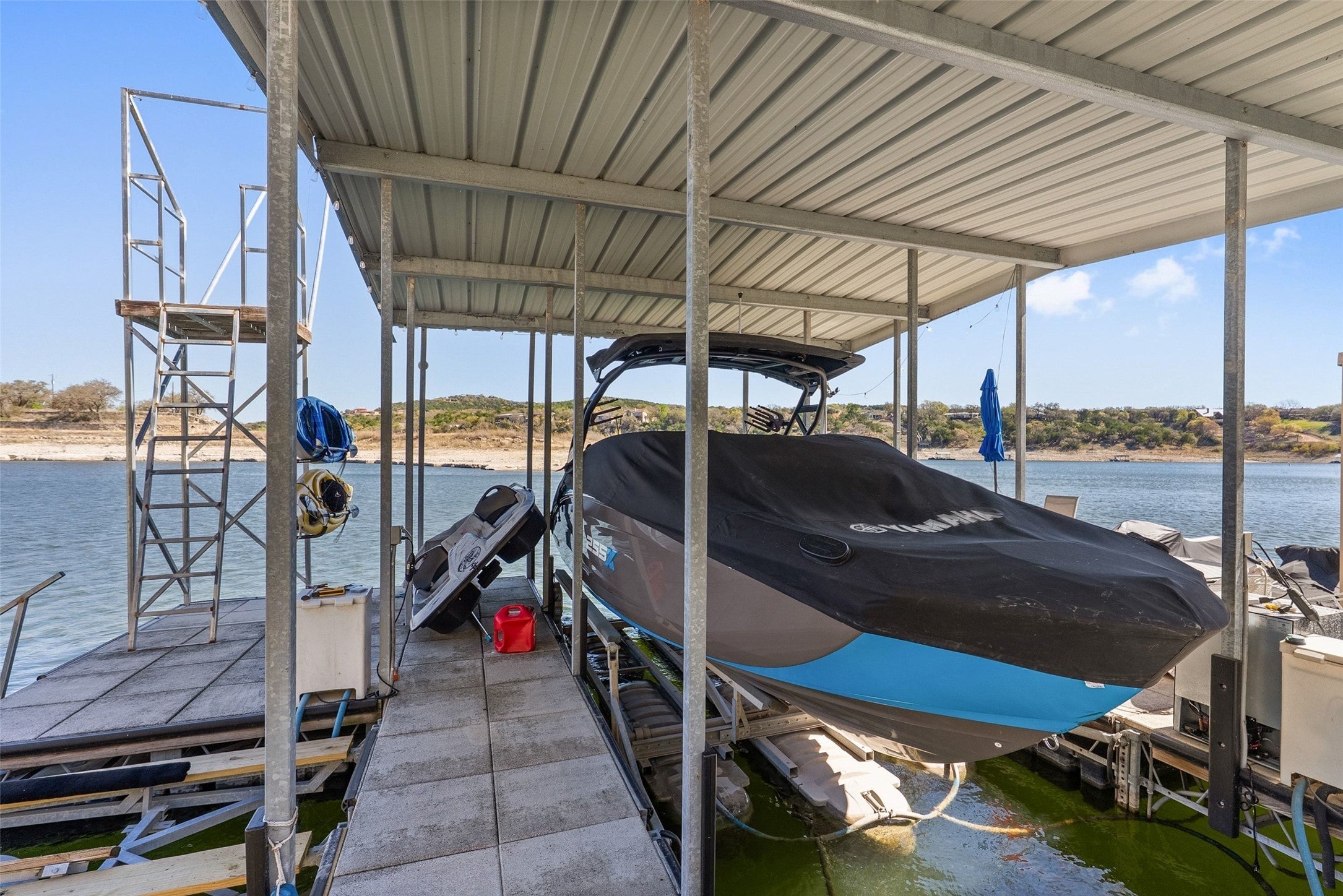 Private Lake Travis retreat with tram access, covered dock, and resort-style outdoor living just minutes from Cedar Park. A covered tram carries you from the home down to the floating dock, where a HydroHoist boat lift and three jet ski lifts are ready for full days on the water. The backyard feels like a private lakeside resort. A heated pool overlooks the water, while new Trex decking connects outdoor spaces from the pool terrace to the dock entrance. The covered patio is designed for entertaining with a full outdoor kitchen featuring granite countertops, gas grill hookups, sink, and a swim-up bar that keeps the conversation going. Inside, expansive windows fill the home with natural light and showcase east-facing Lake Travis views. The open living room anchors the home with a floor-to-ceiling stone fireplace, built-in cabinetry, and seamless access to outdoor spaces. The kitchen is designed for gathering with abundant granite workspace, center island, brick-accent cooktop surround, built-in ovens, double sinks, and a large walk-in pantry. A spacious owner’s suite offers lake views, patio access, fireplace, and a spa-inspired bath with dual vanities, soaking tub, and oversized shower. Game room, media space, oversized bedrooms, and three-car parking complete this thoughtfully designed Lake Travis waterfront home built for entertaining, relaxing, and enjoying life on the water.