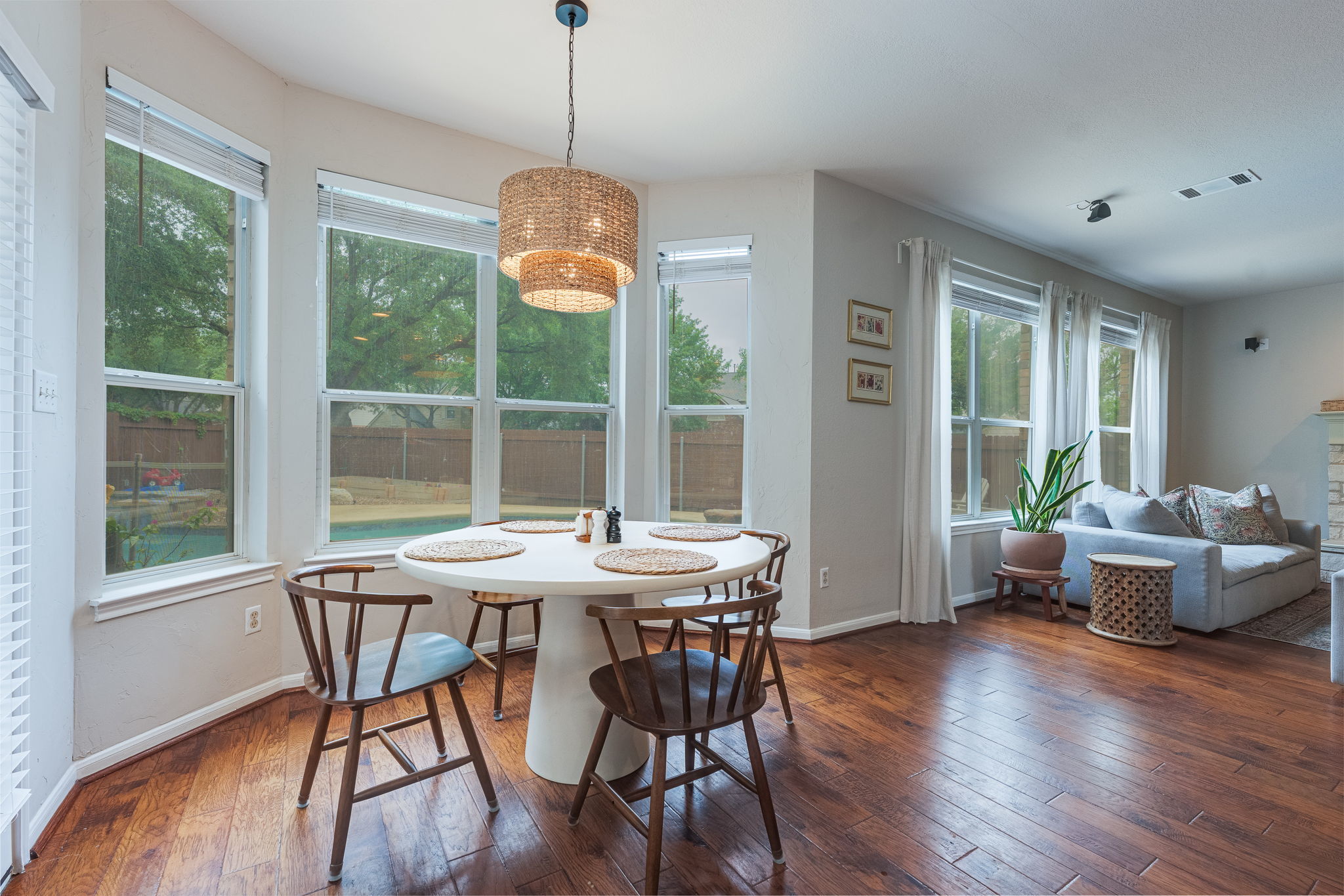 Welcome to this beautifully updated home with 4 bedrooms, 3 full bathrooms, gameroom and flex space perfectly situated on a desirable corner lot in a quiet cul-de-sac. Designed for both comfort and functionality, this home features upgrades including hardwood floors, granite countertops, stainless steel appliances, updated tile backsplash and remodeled bathrooms. The spacious primary suite offers a private retreat, complete with an attached office space—ideal for working from home—and a fully remodeled bathroom featuring a large walk-in shower. Upstairs, a versatile gameroom is perfectly positioned between two of the secondary bedrooms, creating a great space for entertainment or relaxation. Downstairs, you’ll find a private guest bedroom and a remodeled full bath with a walk-in shower, offering comfort and convenience for visitors or multigenerational living. Step outside to your own backyard oasis, featuring a heated pool and spa, along with a raised bed garden equipped with sprinkler heads—perfect for gardening enthusiasts. The home is also within walking distance to a community park with a brand-new pirate-themed playground, adding to the charm and appeal of this exceptional property. This home truly combines modern updates, flexible living spaces, and an unbeatable location.