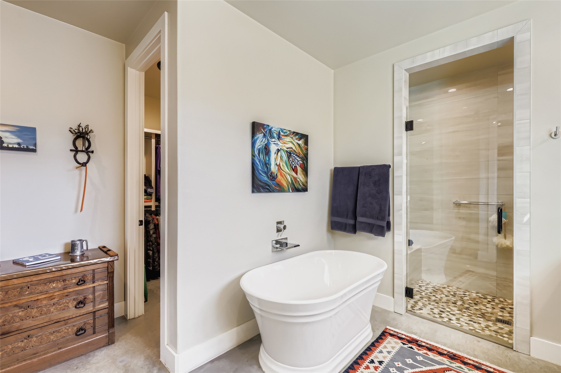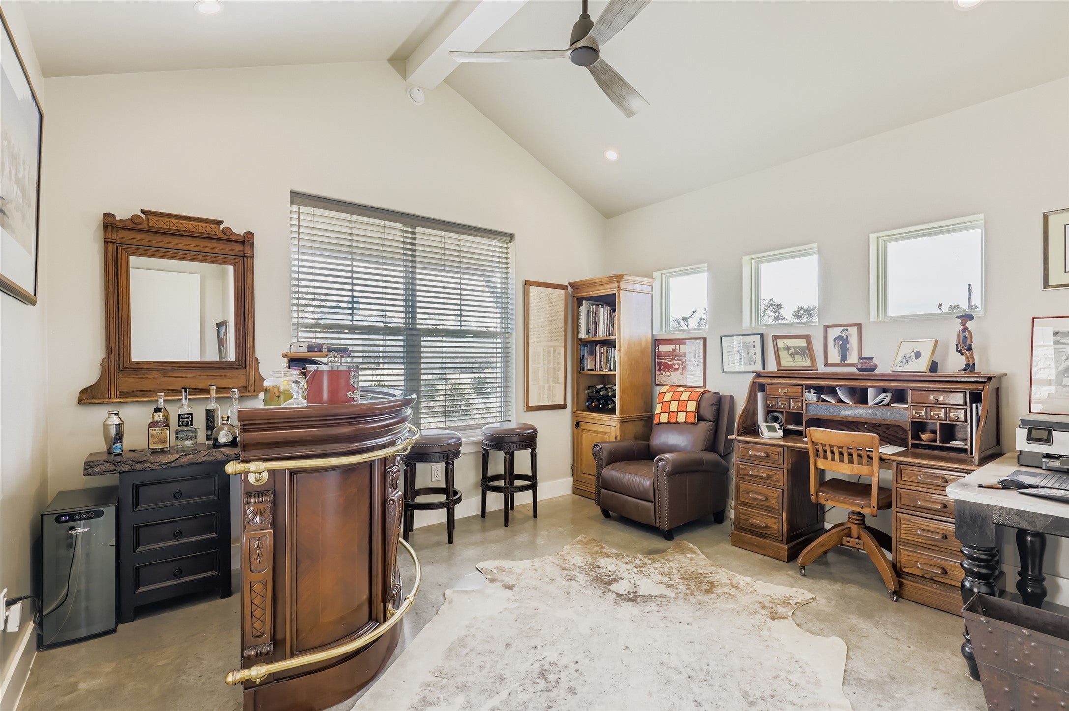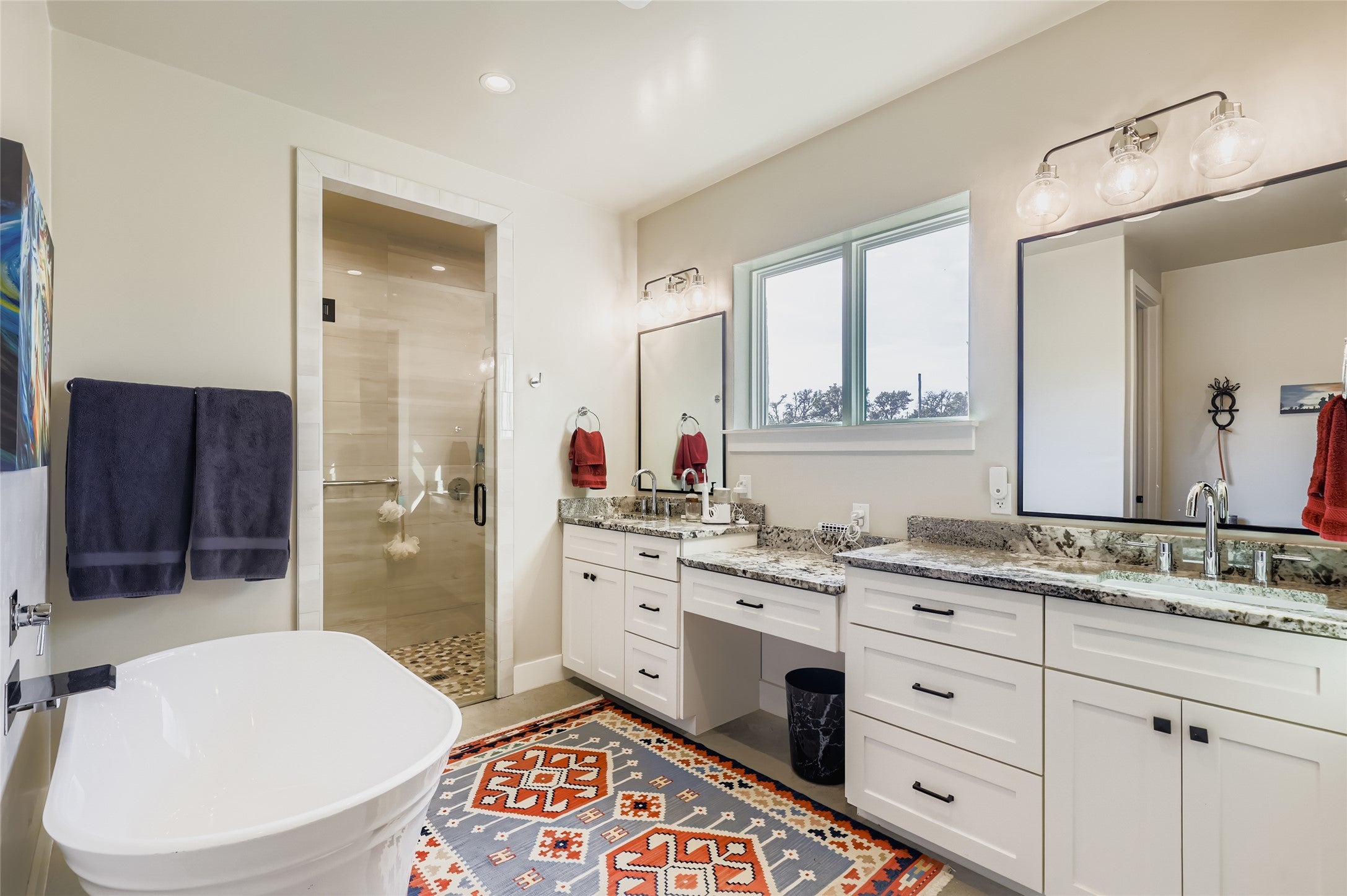 Enjoy Hill Country living in this Texas Farmhouse style home, located in a boutique gated community surrounded by all that the Hill Country has to offer. Privately set on 3 lush acres with elevated finishes and a versatile layout, this home is meticulously maintained - better than new! Customized features include a rainwater harvesting system, epoxied patio + garage with extended workshop, & incredible amenities for entertaining. Upon entrance into the home, sky-high vaulted ceilings welcome you into a generous open living space, showcasing the outdoor space with four paneled sliding doors. Entertaining flows perfectly from inside to outdoors, where the spacious & serene patio space can be enjoyed without a neighbor in site. In the kitchen, timeless white cabinetry + sleek black counters are beautifully contrasted with warm wooden accents in the center island & beamed ceilings. The primary suite has views of the property,+ a luxury owners bath w/ double vanities, soaker tub, walk-in shower, & large walk in closet. Off the living area, a versatile room with its own private entrance makes for the perfect home office/additional bedroom. On the other side of the home, what is now a guest suite w/ bedroom + full bath + living area, can be easily changed into a hallway w/ two bedrooms, by seller upon request. Off the secondary bedrooms - a 3rd full bathroom, mudroom, laundry room w/ built in cabinetry + large sink (currently used for dog baths!), and an extra large garage with space for a workshop, ATVs, etc. Outside, the oversized patio includes a seating area with a cozy fireplace, perfect for unwinding in the evenings or watching the game. Plus, the outdoor kitchen is equipped with a grill, sink, burners, & fire pit that can be used as a smoker or grill. Located just 12 mins from Marble Falls for HEB, restaurants, & shopping, & 15-20 mins to dozens of wineries & breweries in the Johnson city area. Special financing + Rent-to-own financing options - Inquire for details!