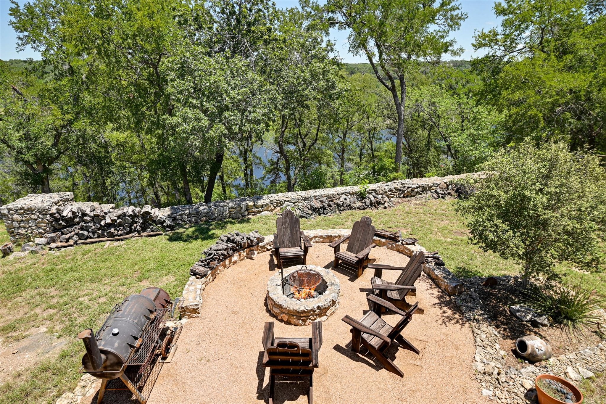 Beautiful Waterfront Retreat! You will love this luxury living on 3ac. fronting the Pedernales spur of Lake Travis! This beautiful home is perched on a bluff overlooking the lake w/ about 200' of waterfront and an easy pathway down to the water. The owners have spent over $300k remodeling the property with great attention to detail throughout and includes a redesign of the kitchen, master bed and bath as well as adding a detached garage with upstairs workout or storage room and much more. The open floor plan is designed to enjoy the incredible lake and hill country views and there are multiple outdoor areas to relax in and enjoy as well, including the covered and open back deck with outdoor kitchen and backyard fire pit. Come enjoy the peaceful setting, just a short drive from everything you need but not too close. This is a home you'll enjoy escaping to and won't want to leave. Lick Creek Ranch/Pedernales Canyon is a friendly and active community with two volunteer HOAs that include 2 neighborhood parks (one with a boat ramp, picnic area and fire ring). It is also in the highly rated Lake Travis ISD. The sellers are also offering a $50,000 credit you can use toward the boat dock of your choice!