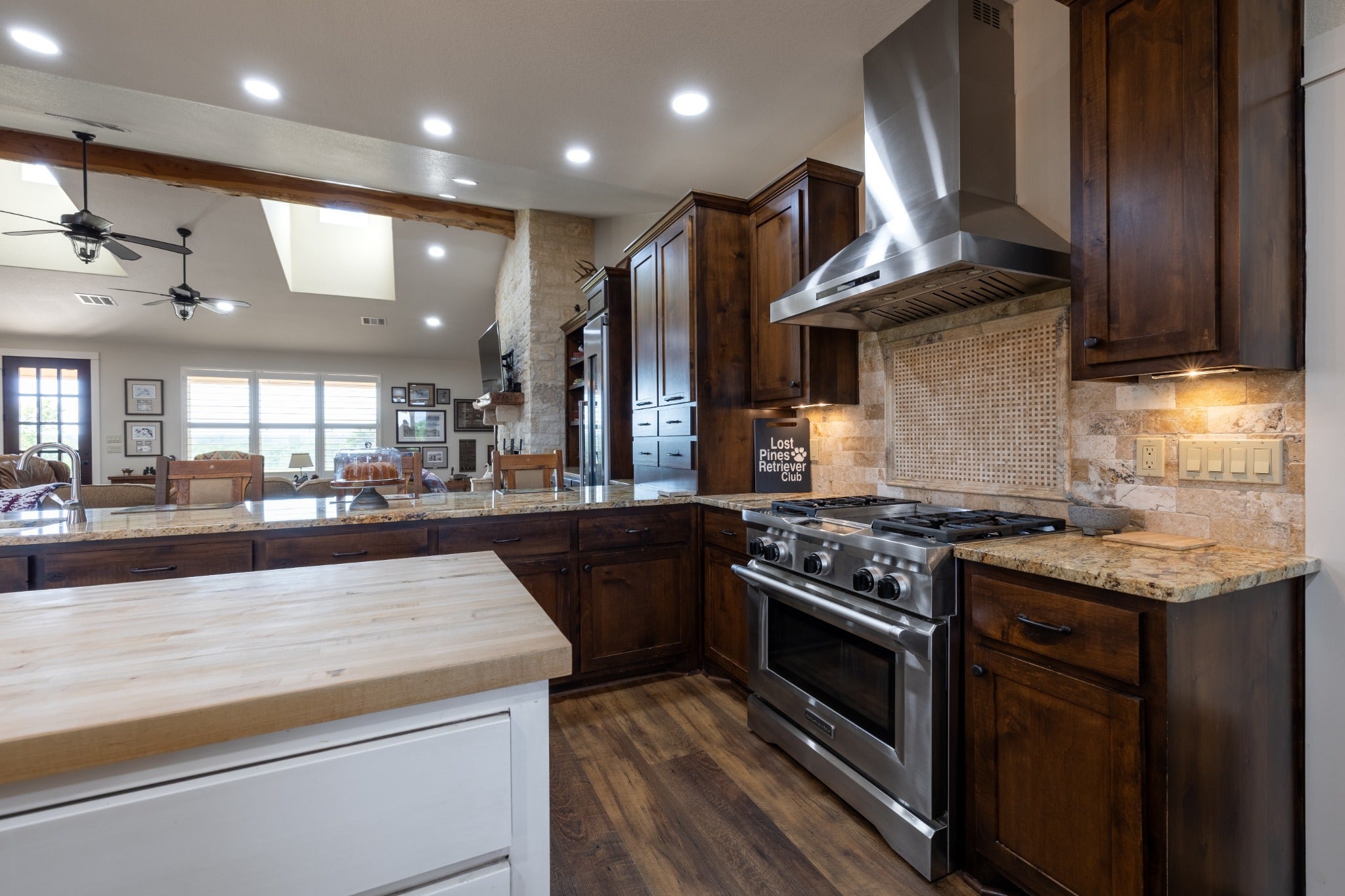 Red Fox Ridge Ranch is a rare 120 acre Hill Country offering just 0.4 miles from Mason, Texas, combining luxury improvements, recreational appeal, and exceptional convenience. One of the larger tracts this close to town, the ranch is only about 1.5 miles from the historic Mason Square, giving owners quick access to dining, shopping, and small-town charm while still enjoying the privacy and freedom of ranch living. At the center of the property is a beautifully maintained 3,000± sq. ft. 3-bedroom, 2-bath limestone home designed with timeless Hill Country style and comfort in mind. Interior features include an open-concept layout, expansive kitchen with granite countertops and stainless appliances, grand stone fireplace, custom cabinetry, repurposed timber accents, mudroom, upgraded laundry room, full-home LED lighting, and a vertical wine cooler. Outside, a Keith Zars custom pool and spa with waterfall, outdoor cooking station, and flagstone decking create an ideal setting for entertaining and relaxation. Tiff-Tuff Hybrid Bermuda grass adds a clean, low-water landscape around the home. A major highlight is the dedicated fiber optic line through Mason’s fiber service, a rare amenity outside the city limits, with up to 1000 Mbps internet available. The ranch also features a 4,000± sq. ft. insulated barn with four RV-size overhead doors, loft storage, large overhang, LED lighting, and a 1-bed, 1-bath guest suite with full kitchen, living area, utilities, and fiber internet. Additional improvements include fruit trees, grapevines, a regulation-quality skeet and trap field with Lincoln commercial machines, three ponds, and a portion of Comanche Creek along the back of the ranch. Water resources include a reported 10.5+ GPM well and a rainwater collection system with filtration and 37,600 gallons of storage. Ag exempt. Red Fox Ridge Ranch is a turnkey Mason County property with comfort, recreation, and investment appeal.
