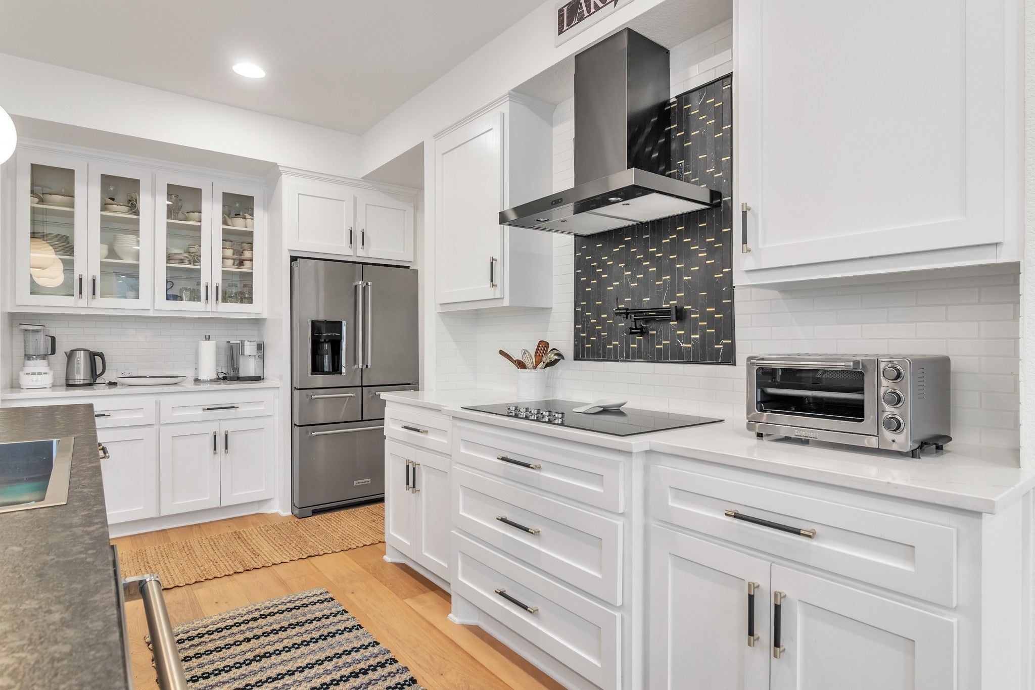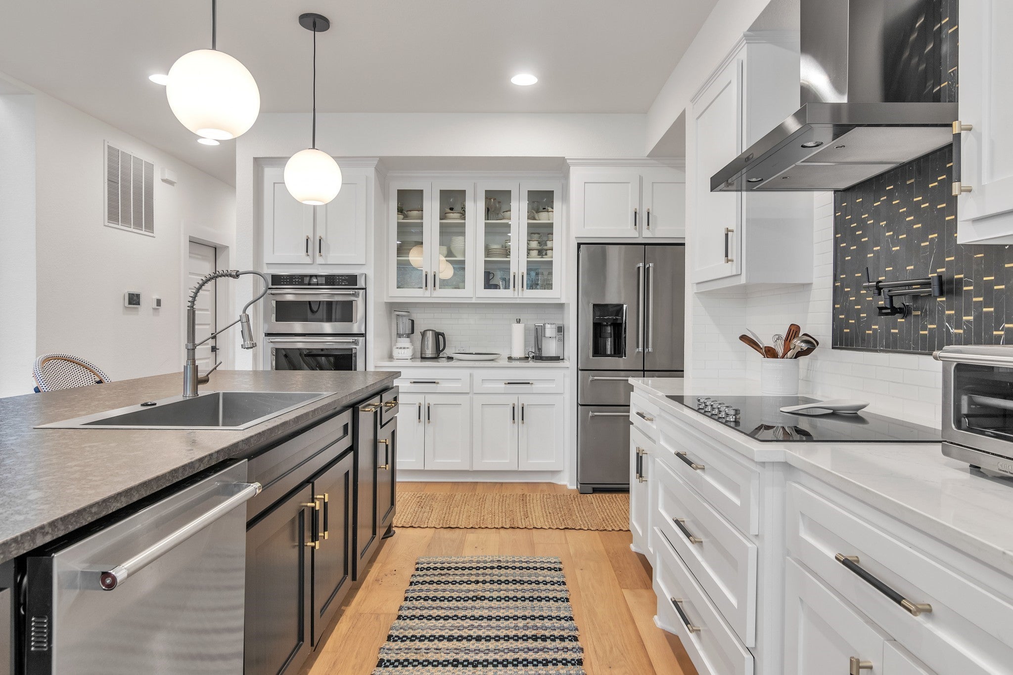 - Built-In Oven, Dishwasher, Disposal, Electric Cooktop, Exhaust Fan, Microwave, Refrigerator, Stainless Steel Appliance(s), Tankless Water Heater