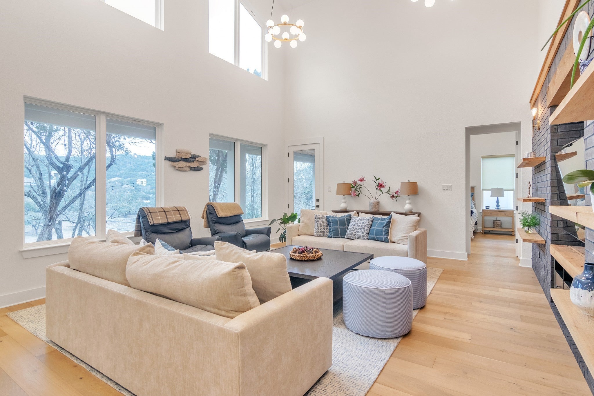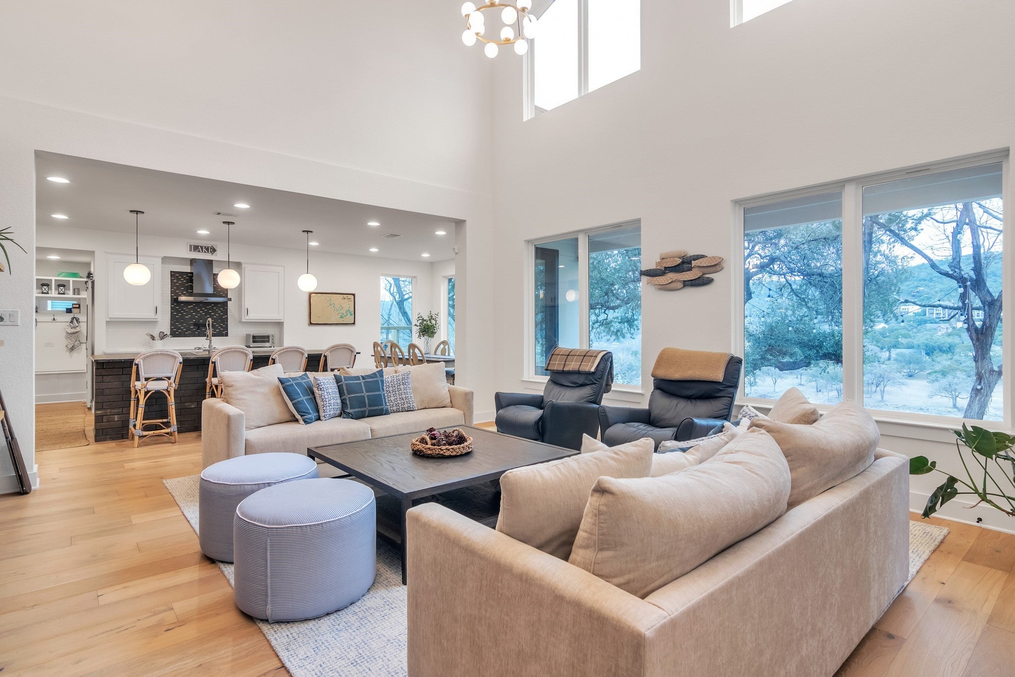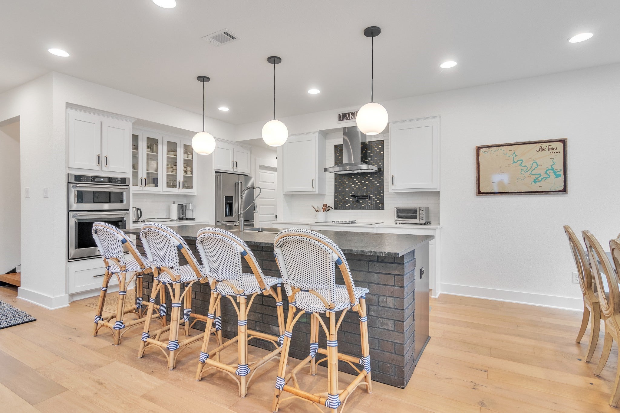 $25K closing cost incentive with an accepted offer! Indulge in the allure of lakeside living at this impeccably designed residence on Lake Travis. With flawless designer interiors, a private dock, and direct lake front access, this 2,371sqft gem is a showpiece of luxury and comfort. Step inside to be greeted by soaring ceilings and an expansive floor plan, ideal for both relaxation and entertaining. Walls of windows frame breathtaking views, creating a seamless connection to the natural beauty that surrounds. The gourmet kitchen is a culinary haven, boasting custom cabinetry and stainless steel appliances that cater to the most discerning chef. The main-floor primary bedroom is a retreat in itself, featuring a marble spa bathroom with a spacious walk-in shower and separate vanities. Upstairs, two secondary bedrooms with attached baths provide ample sleeping accommodations, ensuring a restful sanctuary for all. Practicality meets elegance with a well-thought-out layout that includes a convenient laundry/pet wash area. Venture outside to discover a resort-style oasis with inviting decks, patios, and lush landscaping—a perfect backdrop for outdoor enjoyment. Noteworthy is the property's allowance for Short Term Rentals, making it an ideal investment for those considering Airbnb opportunities. Seize the chance to own a piece of lakeside paradise that not only promises a luxurious lifestyle but also presents a lucrative investment potential. There is a transom staircase that leads down to the water's edge of Lake Travis. Must see!
