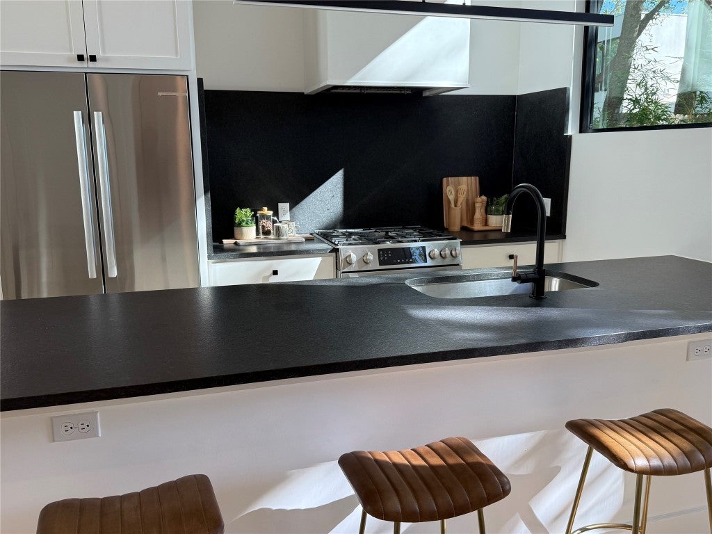 Gorgeous build by Sett Studio in the heart of 78704 Zilker. Beautiful home set on a quiet interior street, in the coveted 78704 Zilker neighborhood, 1604 Nash Ave., Unit B is where contemporary meets comfort. Enjoy the Austin experience minutes from downtown and walkability to South Lamar restaurants and coffee shops. Built by Sett Studio, this 2 bed, 2.5 bath home has been thoughtfully designed for open-concept living and entertaining with timeless style and high-end finishes. Ten-foot ceilings- main level, large windows, and a neutral color palette make the living, dining, and kitchen feel bright and open. The kitchen features a large breakfast island, leatherized granite countertops, Bosch appliances, an integrated refrigerator, and pantry/storage space. It is perfect for preparing a meal while friends gather around the large center island or relax in the living room. Upstairs, two bedrooms with ensuite baths and walk-in closets offer a private space for both owners and guests. In the primary bedroom, you will find gorgeous large windows and a skylight. The backyard is perfect for gardening, barbecuing, or just relaxing on a sunny day. Highly sought after Zilker Elementary - rates 9/10 on Greatschools.org! *Buyer to independently verify all information including but not limited to taxes, sqft, lot size, schools, restrictions, city of Austin STR rules, etc. Greatschools ratings subject to change. Tax estimate is taking 2025 tax assessment x 2024 tax rate (2025 tax rates are not out yet). Curtains in the living room are the tenant's and excluded.