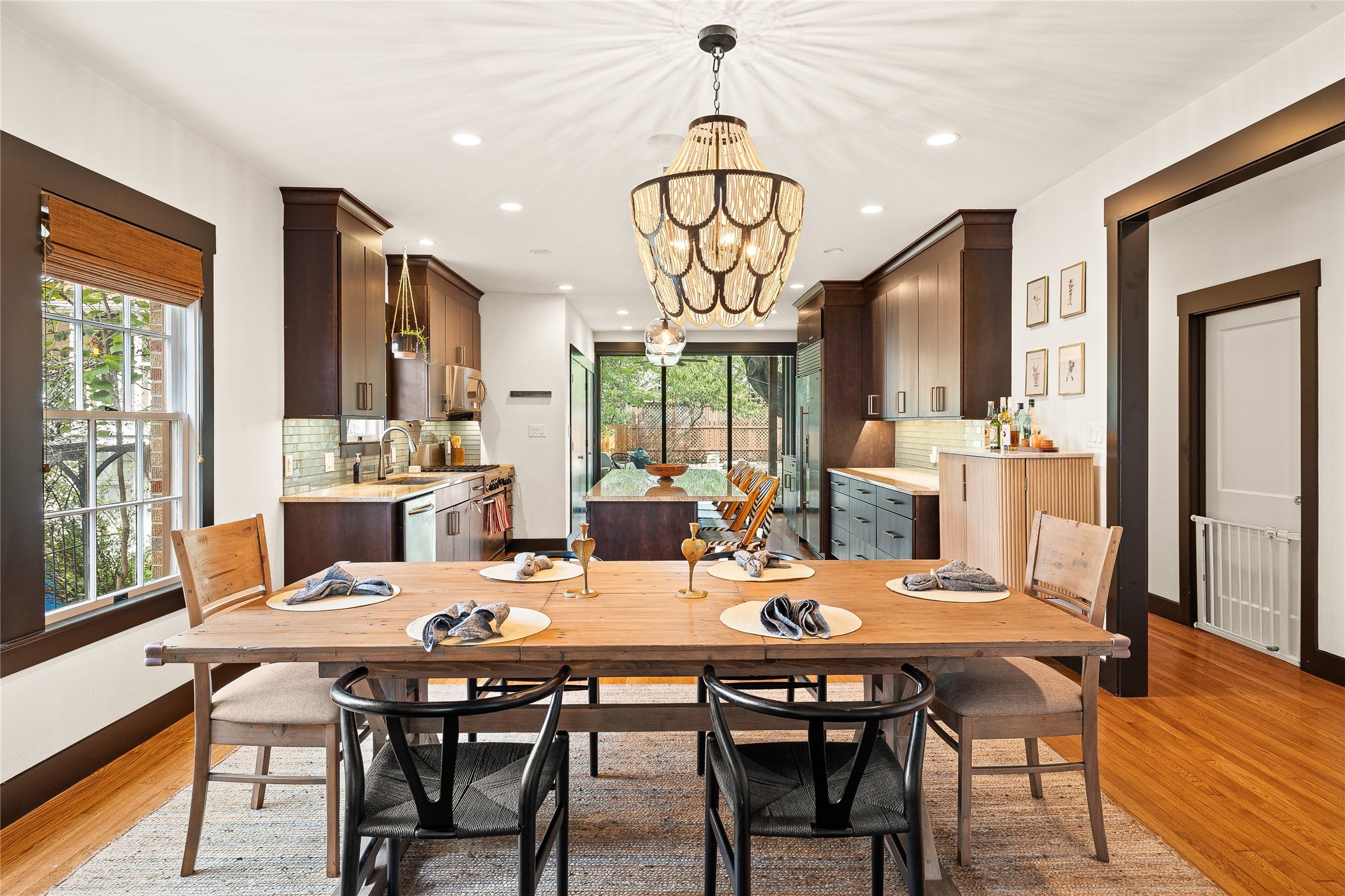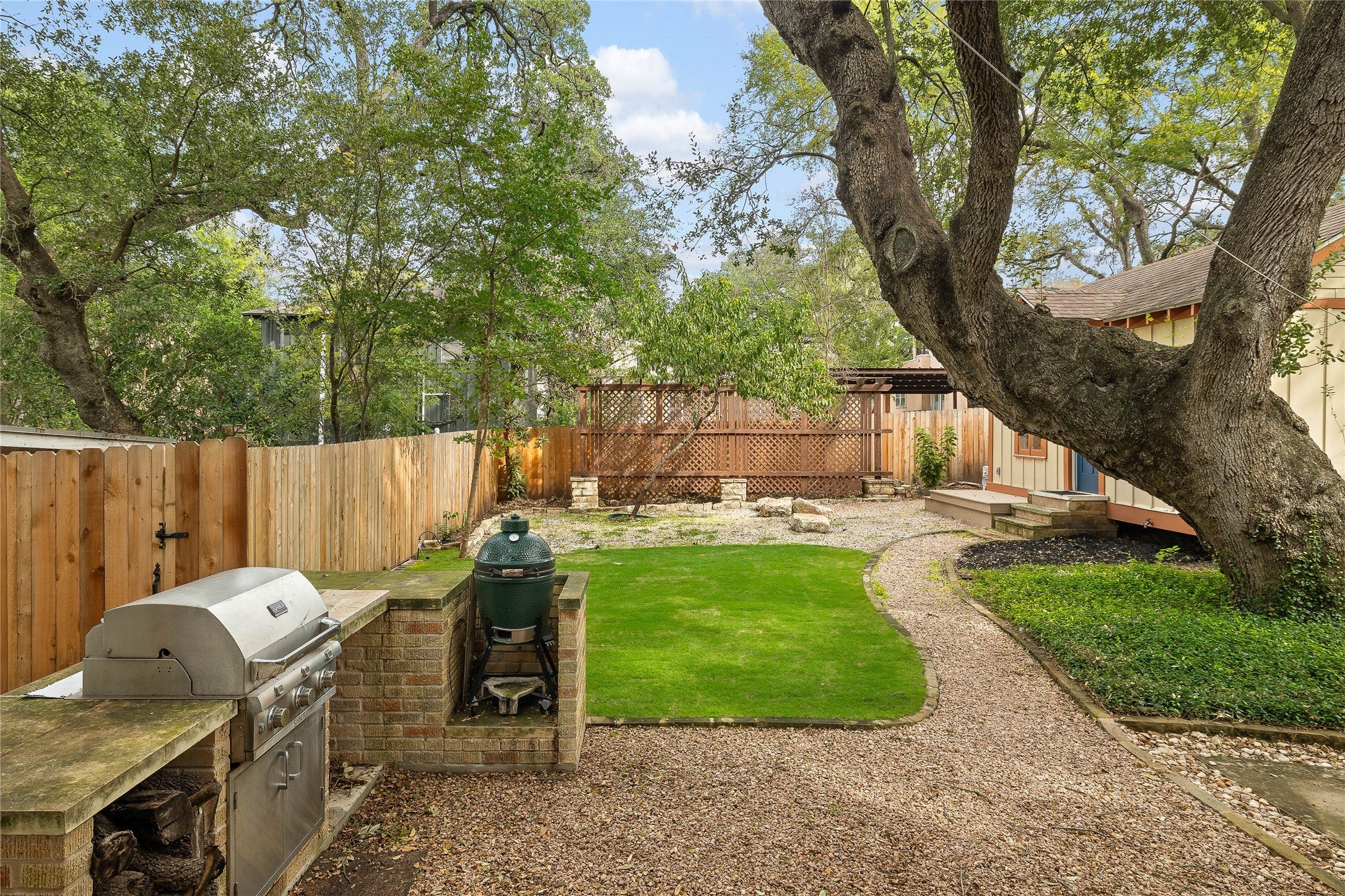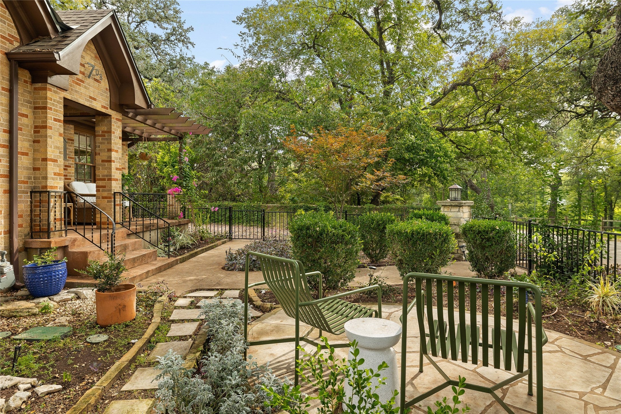 708 Sparks Avenue is a charming Tudor-style residence tucked on a quiet street in the heart of Austin. Surrounded by live oak trees, the home offers the rare feeling of living in a private treehouse while enjoying an unbeatable central location near the University of Texas at Austin, St. David's Medical Center, I-35, top-rated schools, and Eastwoods Park. With four bedrooms and four full bathrooms, this beautifully updated property blends timeless elegance with thoughtful modern enhancements. The 2014 remodel, designed by architect Steve Zagorski, added intentional updates that complement the home’s original character. Inside, bright interiors and stunning hardwood floors create a warm, inviting atmosphere. Vaulted ceilings elevate the spacious living and lounge spaces, which flow into the open kitchen and dining area, featuring a center island, stainless steel appliances, including a Sub-Zero refrigerator, stone countertops, and a sliding door that opens seamlessly to the picturesque backyard. The primary retreat feels like a secluded sanctuary, complete with a private terrace, Lutron blackout shades, and a spa-inspired bathroom with dual vanities, a soaking tub, and an expansive walk-in shower with dual heads, all beneath vaulted wood ceilings. Outdoors, multiple entertaining spaces await, from the covered patio and built-in BBQ to the large rooftop terrace with a hot tub, offering views over the tree line. An air-conditioned detached casita with a full bathroom and living space provides flexibility for guests, a home office, or a gym. Rarely does a property combine architectural distinction, modern comfort, and exceptional outdoor living in such a premier central Austin setting. Tax and assessed values are estimates for illustration purposes only. All figures should be independently verified.