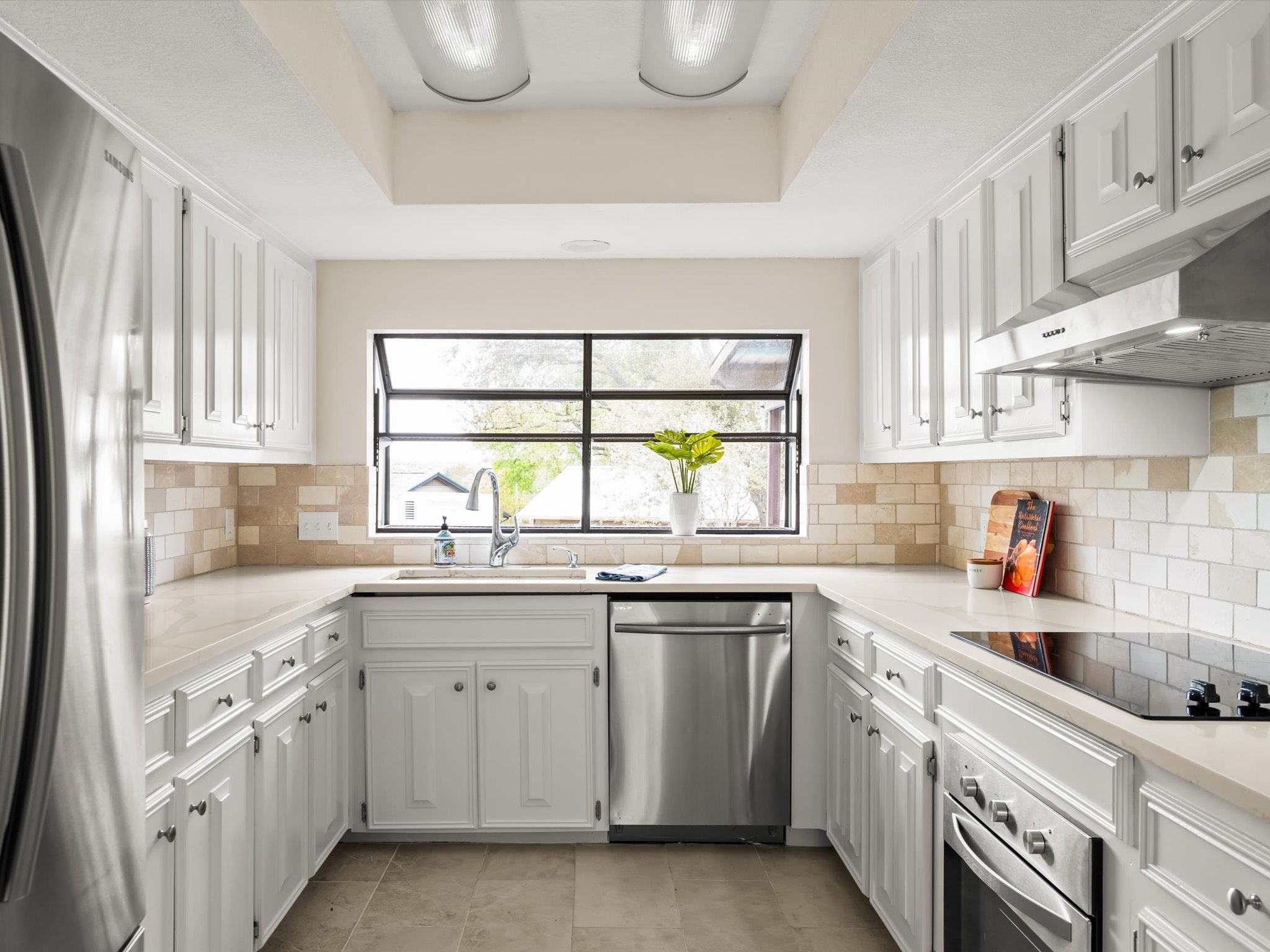 - Built-In Electric Oven, Dishwasher, Electric Cooktop, Exhaust Fan, Electric Oven, Electric Water Heater, Disposal, Stainless Steel Appliance(s)