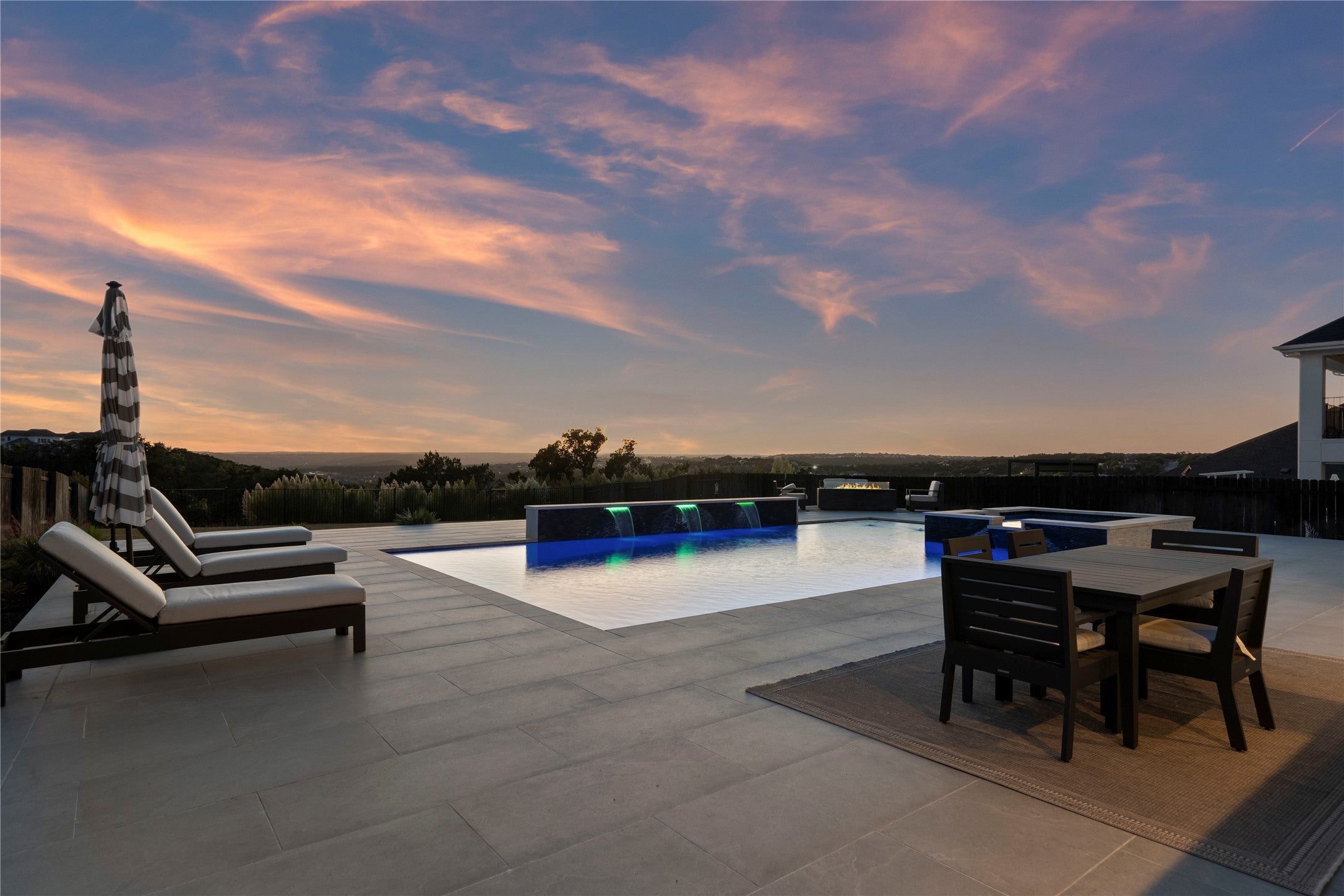 Hill Country Luxury Meets Modern Living in Crystal Falls. Welcome to 2513 Long Lasso Pass, a beautifully reimagined home nestled in the prestigious Crystal Falls community of Leander, Texas. This expansive 5-bedroom, 4.5-bathroom estate sits on nearly half an acre and offers the perfect blend of modern elegance, thoughtful upgrades, and breathtaking Hill Country views. Step through custom Cantera iron doors into a light-filled interior with soaring ceilings and an open floor plan built for effortless living and entertaining. The chef’s kitchen is a standout, featuring granite countertops, JennAir appliances, built-in refrigerator, a large double island, and custom cabinetry that extends to the ceiling. The main-level primary suite with a sitting area is a serene retreat with a spa-like en-suite bath that includes a steam shower, soaking tub, dual vanities, and two walk-in custom closets. Upstairs, you’ll find 4 spacious bedrooms, a media room, game room, and an expansive covered balcony—offering an inviting space for family and friends. Outside, the resort-style backyard is built for year-round enjoyment. The custom outdoor kitchen features multiple cooking surfaces, a sink, and refrigerator—all overlooking the heated pool, spa and the most incredible hill country views. The expansive covered patio and private yard make the perfect backdrop for relaxing Texas evenings. A rare 4-car garage provides ample space for vehicles, gear, or your weekend toys. Located within the award-winning Leander ISD and just minutes from top-rated schools, shopping, and dining, this home offers the best of both worlds—quiet suburban living with convenient access to Austin. Residents of Crystal Falls enjoy an array of amenities including multiple resort-style pools, parks, a catch-and-release fishing pond, playgrounds, tennis courts, and scenic hiking trails.