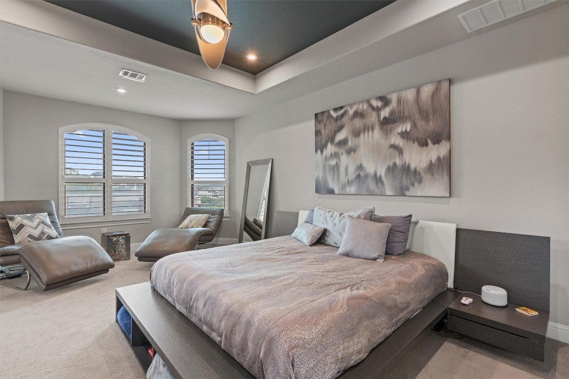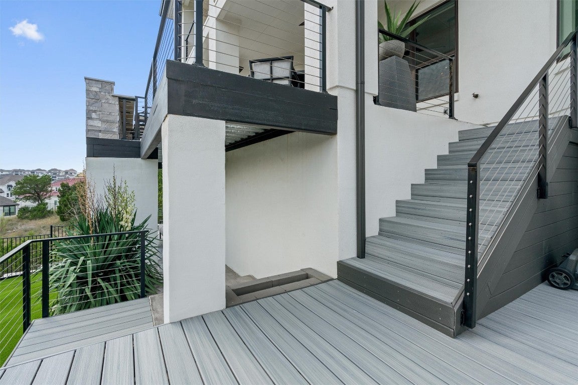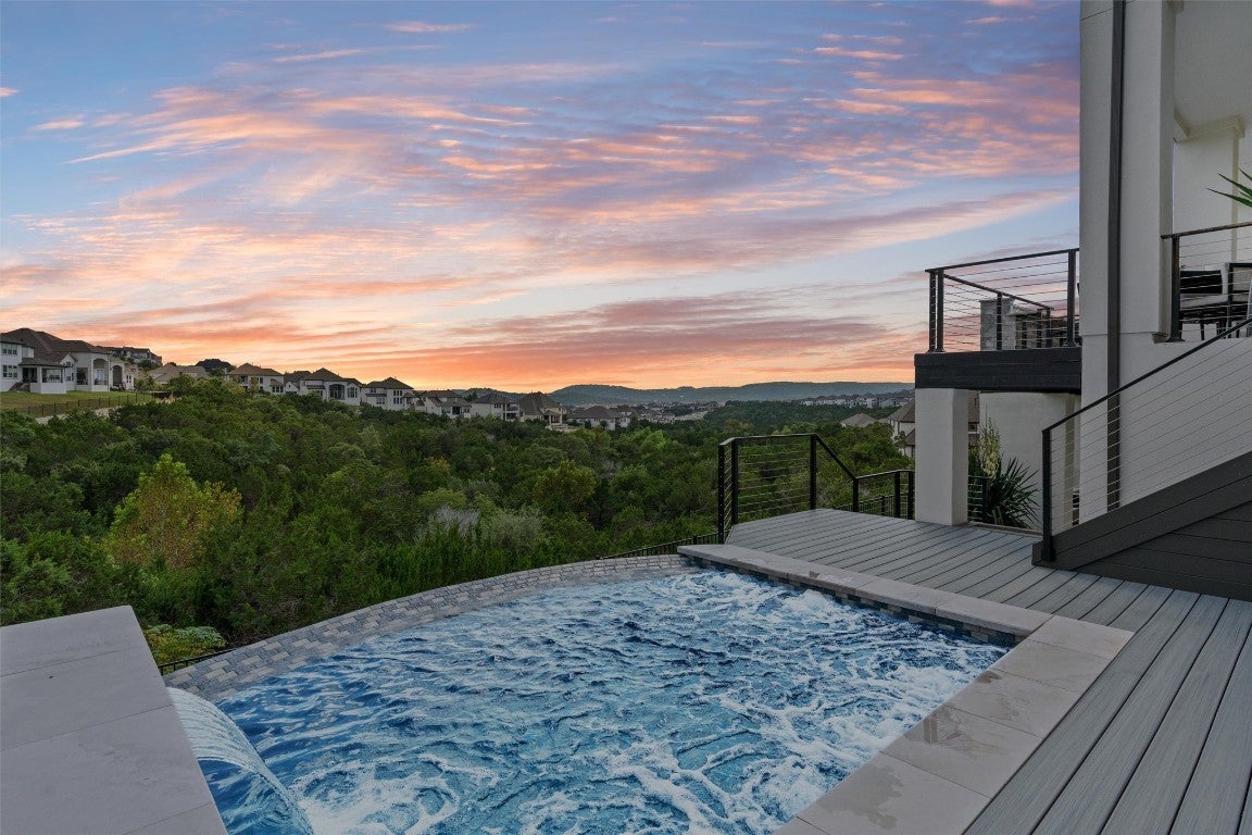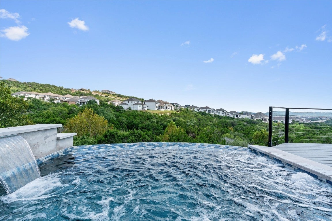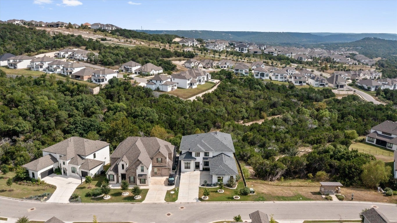 New roof installed in 2025 + Experience contemporary Elegance with Uninterrupted Views - This extraordinary Toll Brothers residence showcases thoughtful design and extensive upgrades throughout. Positioned against a permanent greenbelt, the property delivers panoramic views from multiple rooms. + The main level features an expansive primary suite designed for privacy and indulgence, with a spa-like bath offering a deep soaking tub, oversized walk-in shower, and custom dressing room that connects directly to a spacious laundry area. A secondary bedroom with its own en-suite bath and a custom-designed powder room also occupy the first floor. + Entertaining flows effortlessly thanks to two wine walls (one climate-controlled), a built-in bar, and a contemporary chef’s kitchen equipped with dual ovens, a five-burner cooktop, an oversized island, and generous counter and storage space. Upstairs, a large loft—already plumbed for an additional bar—sits beside a fully customized theater for true cinematic experiences at home. + The outdoor living spaces are equally impressive. Multiple terraces and an oversized spa take advantage of the protected green space beyond, ensuring unobstructed views across three levels – and from the spa. The outdoor kitchen completes the well thought-out space. + Residents of Travisso enjoy resort-style living with access to two premier amenity centers. The Palazzo Clubhouse offers a fitness center, resort pool with splash pad, lighted tennis courts, and playgrounds, while the new Forum Amenity Center features a lap pool, bocce and basketball courts, a recreational pond for kayaking, zip line, and indoor wellness spaces. Miles of hike-and-bike trails wind through parks and open green space, connecting neighbors to the outdoors. Just minutes from the Texas Hill Country, Travisso combines modern amenities with the natural beauty of one of Central Texas’ most scenic landscapes. + Travisso is zoned to the popular Leander ISD.