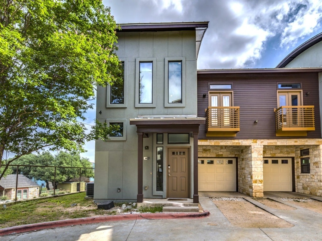 Live in the heart of it all in this bright and modern end-unit condo. Just steps away from South Congress favorites like Home Slice Pizza, Perla’s, Jo’s Coffee, Allen’s Boots, and the Continental Club, plus Zilker Park and Barton Springs Pool just minutes away. Whether it’s live music, boutique shopping, or Austin’s best dining, you’ll find it right outside your door. Inside, you'll find a layout with abundant windows, flooding the space with natural light. The kitchen features Silestone countertops, stainless steel appliances, gas cooking, and LED lighting. Premium wood floors and tile flow throughout the main level. Upstairs, a versatile loft offers the perfect space for a home office, TV room, or creative studio. Both bedrooms include en-suite baths, and the home features a guest-friendly powder room on the main level. The Primary bedroom even has partial downtown views through its floor to ceiling windows! The attached garage accommodates a small to mid-sized car, and this condo has a 4-Star Green rating with a tankless water heater that ensures efficient, eco-conscious living. Your trash & water services are covered by the association and the unit also just received a brand new exterior paint job that makes it pop!. Don't miss this one!