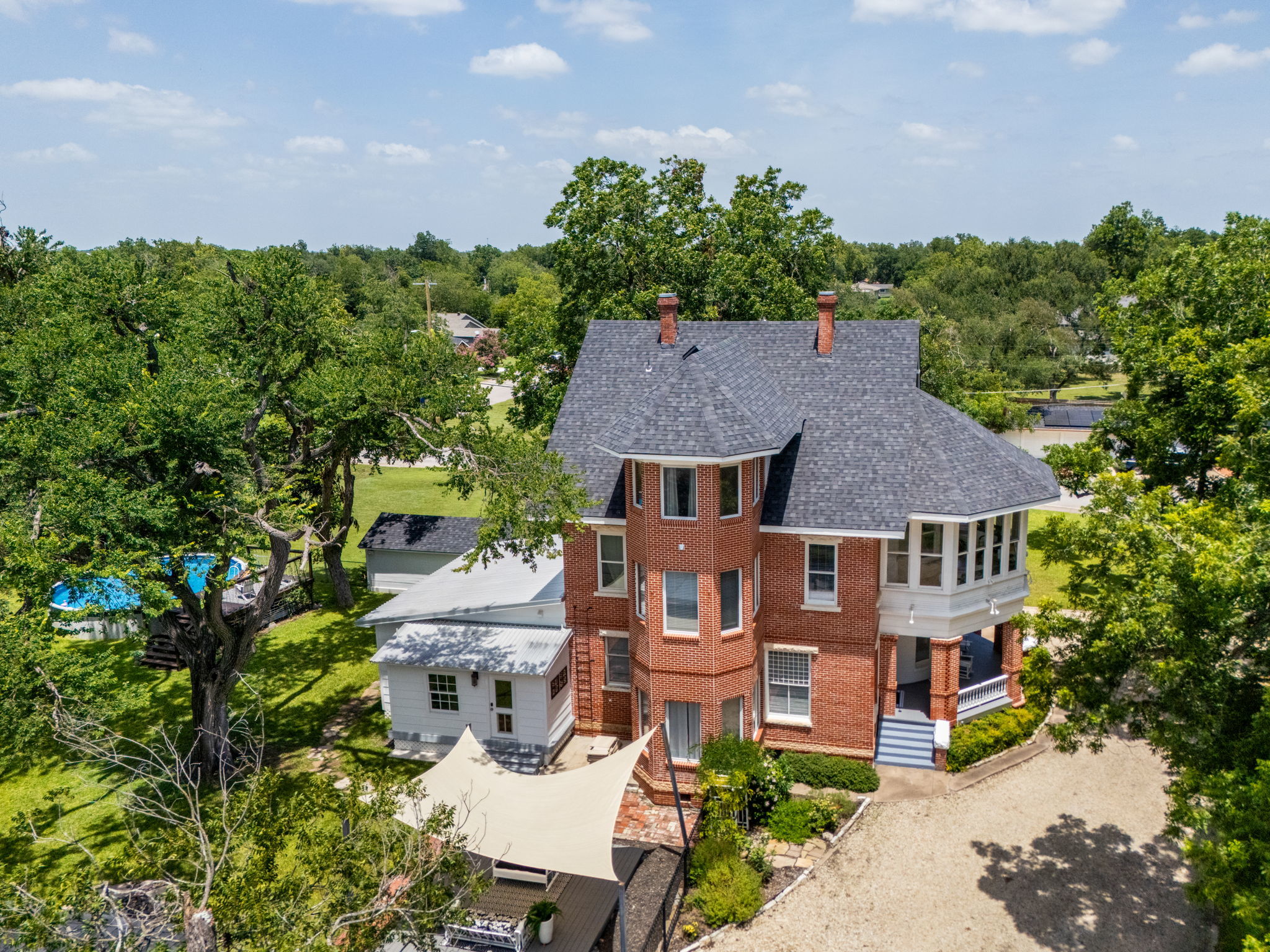 INCOME-PRODUCING POTENTIAL MEETS HISTORIC LUXURY This is not just a home—it’s a fully scalable opportunity. Welcome to the iconic Charles Hague Homestead (circa 1888), a 3-story Victorian estate on 1.4 acres in the heart of rapidly growing Taylor, Texas. With 4,527 sq ft, 4 bedrooms, 4 bathrooms, and multiple living areas, this property offers flexibility for a variety of uses. The setting lends itself to a wedding or event venue, boutique bed and breakfast, short-term rental, or corporate retreat. Mature trees, open grounds, and timeless architecture create a beautiful backdrop for gatherings. Outdoor features include a private pool, sport court, RV hookup, and outbuildings, including a detached structure ideal for events or guest space. The corner lot provides room to expand. Inside, soaring ceilings, historic details, and three fireplaces create a memorable atmosphere that enhances guest appeal. This property offers strong income potential in a high-demand historic niche. It can also serve as your private residence, allowing you to carry on the legacy of this historic home. Schedule your private tour and explore the possibilities.