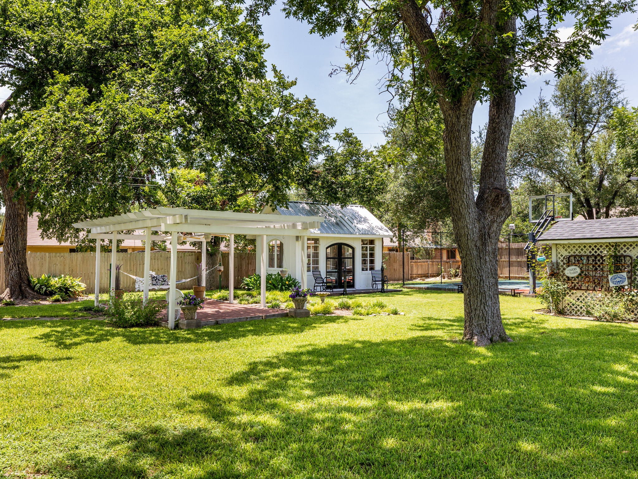 - Balcony, Exterior Steps, Private Yard, RV Hookup, Arbor, Basketball Court, Sport Court