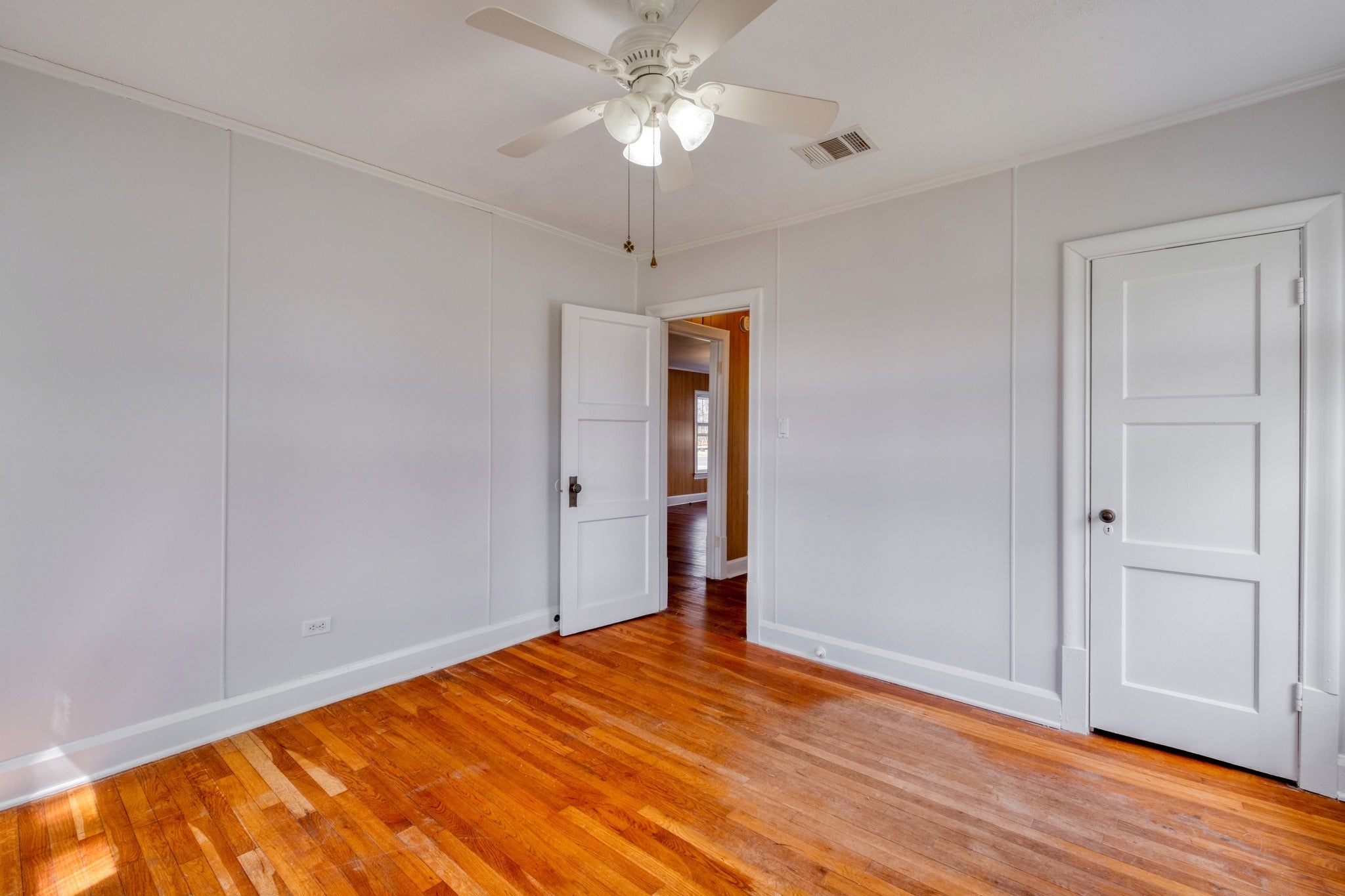 Charming 1940s home in the heart of Elgin with vintage charm, beautiful natural light, and a spacious yard shaded by mature trees. Antique wood floors, abundant windows, and a welcoming front porch give this 2-bedroom, 1-bath property a warm, historic feel, while the functional layout makes smart use of the space. Inside, the home offers a generous main living area with room for both living and dining. One bedroom features French doors opening to the living area and a larger closet, offering flexibility for a bedroom, office, or bonus space. The second bedroom is positioned toward the back of the home for a more tucked-away feel. Set on a sizable unfenced lot, this property offers outdoor space to enjoy along with convenient proximity to downtown Elgin (0.6 mi), the Elgin Parks and Recreation Center (1 mi), and nearby Elgin Memorial Park (0.8 mi). This is a unique opportunity to lease a well-maintained home with timeless charm in an established Elgin neighborhood setting.