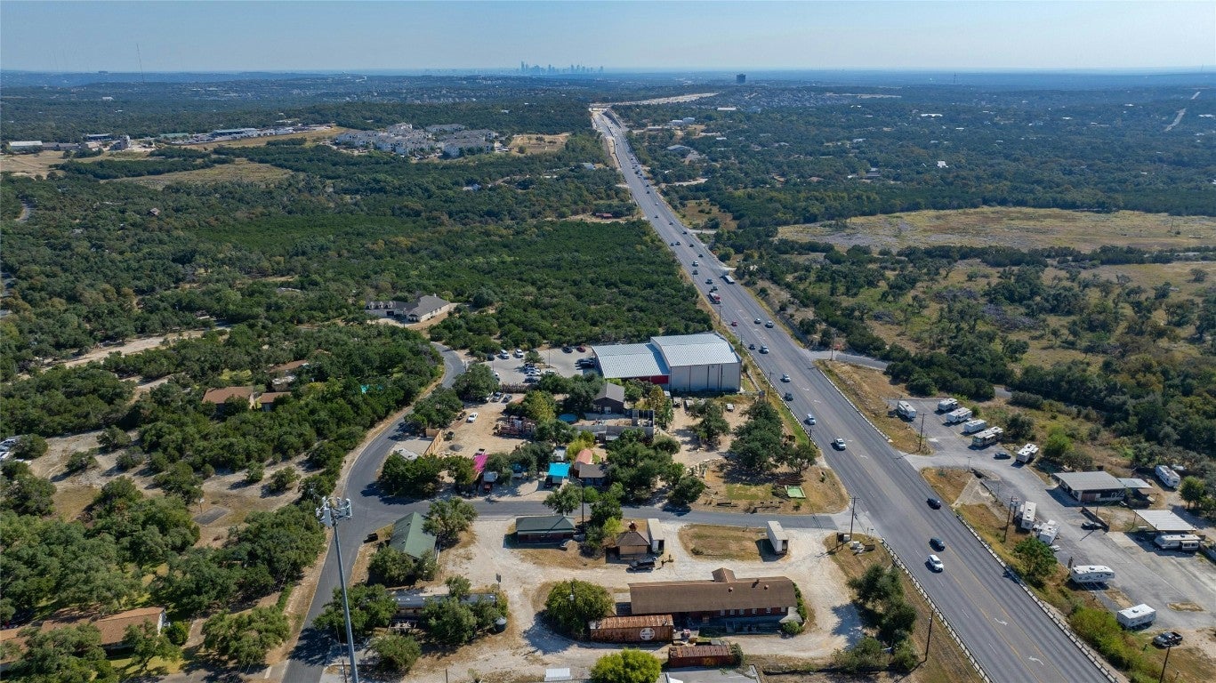Unique opportunity to purchase over 250 feet of frontage on a 2-acre un-zoned corner lot fronting along 290 near Dripping Springs with 1 TXDOT curb-cut into the property from 290, another entrance from the side street off Eitel & an additional private gated entrance to the residence on Vikki Terrace. This expansive property sits outside the city limits and has also been removed from the Austin ETJ. Multiple different buildings on the property – currently used for the owners landscaping business. 2/1 home on the property, above ground pool, mechanic shop, greenhouse, storage, well house with storage, 2 full bathrooms and laundry room building for potential income producing RV spots. Detached metal workshop building being used as a mechanics repair shop & storage building. The Residential home structure has two spacious bedrooms with closets and a full bath along with an open kitchen and living area floor plan. The opportunities are endless with this property. It provides excellent visibility and accessibility, making it an ideal choice for a wide range of business ventures and development opportunities bordering the current Highway 290 Expansion Project from Oak Hills into the greater Dripping Springs area. Great high traffic count in addition, at just about 28,000 vehicles per day, for any new potential business! Buyer to perform own Due Diligence.