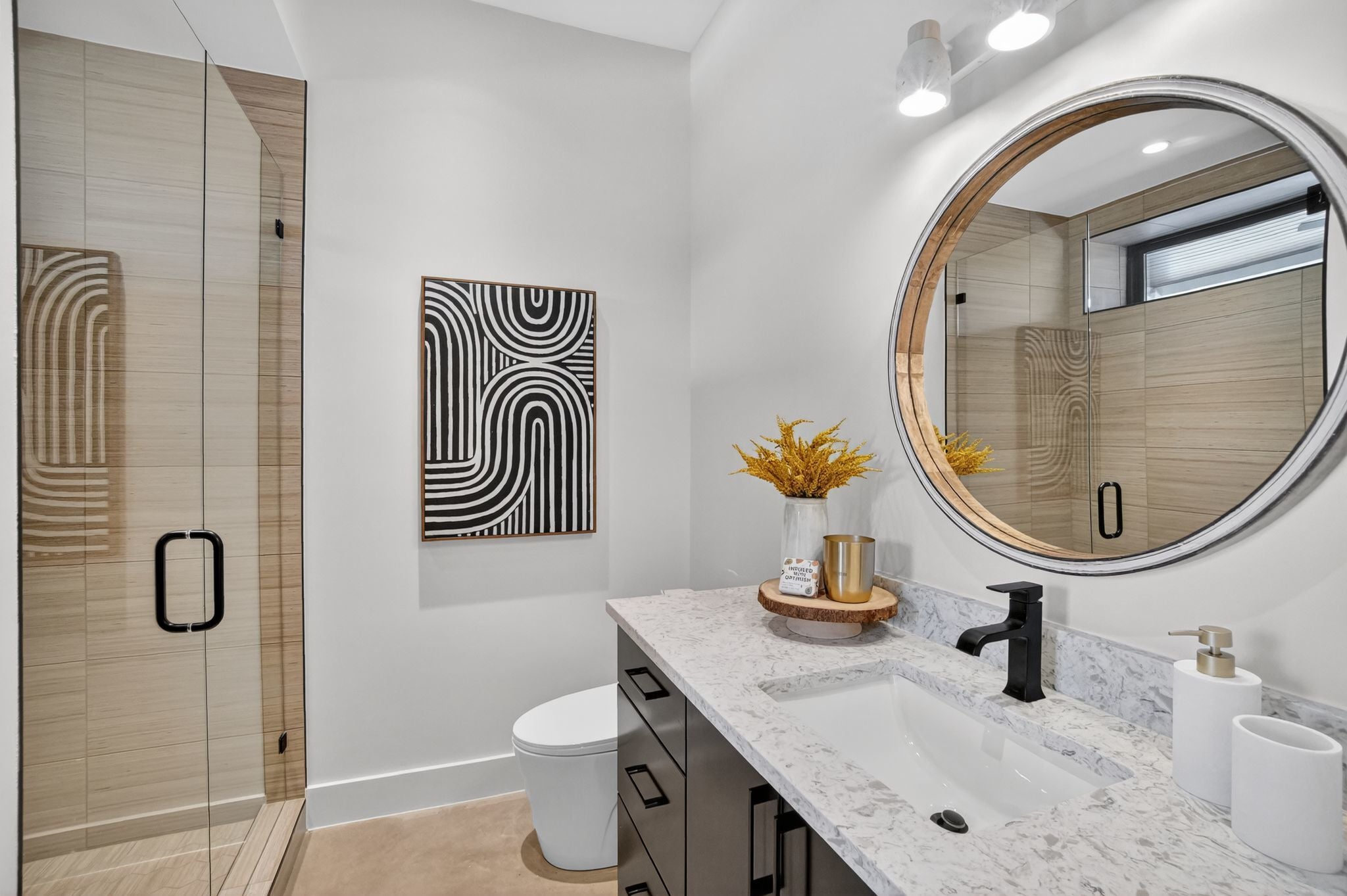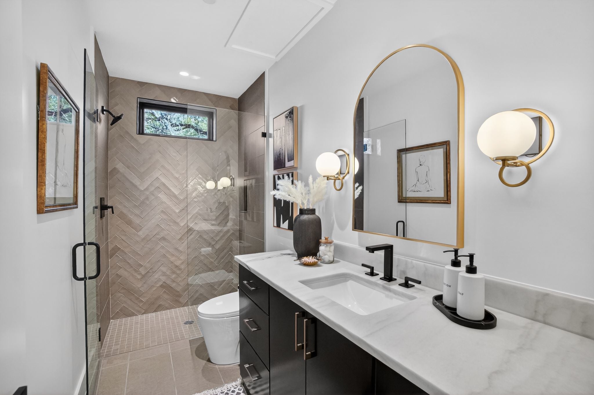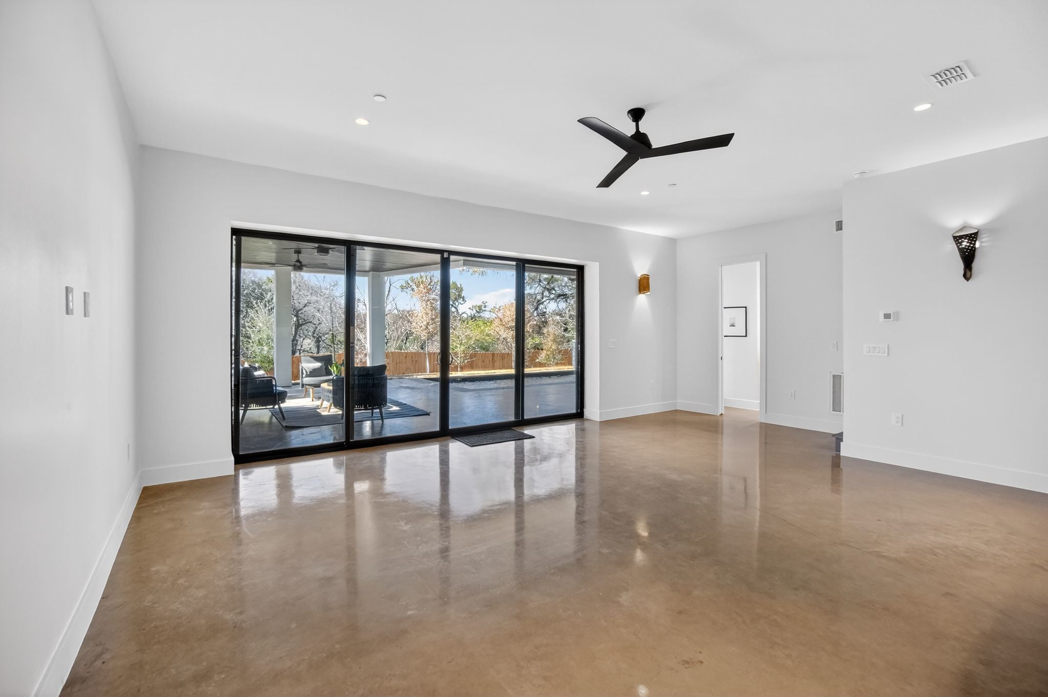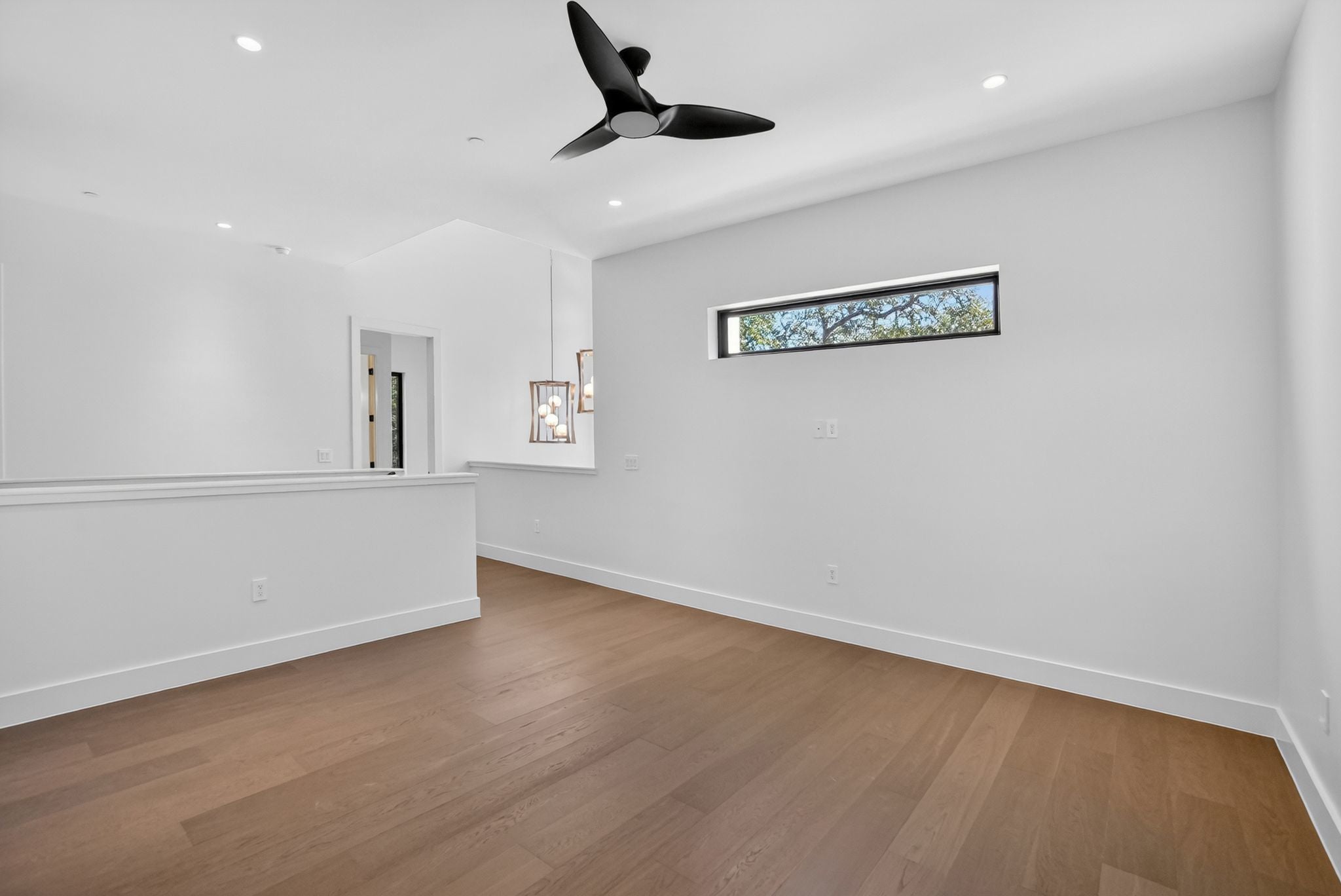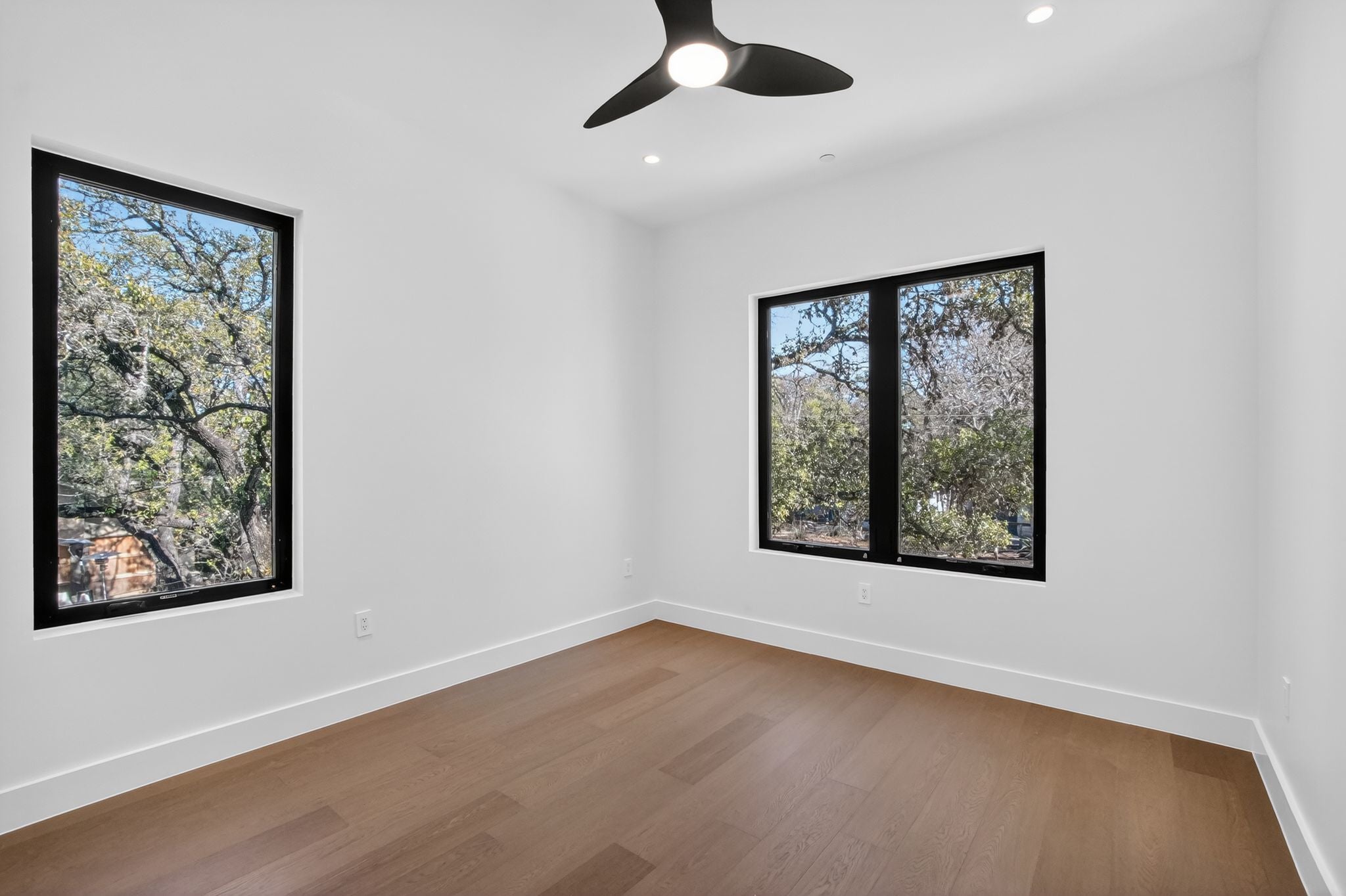 Introducing a striking new construction residence steps from Rollingwood park, where modern architecture meets the serenity of mature trees and Hill Country surroundings. Privately positioned yet just minutes from the vibrancy of Downtown Austin, this sleek luxury home blends refined design with effortless livability. A dramatic designer floating staircase serves as a stunning architectural centerpiece, setting the tone for the home’s contemporary aesthetic. Wide-plank wood floors flow throughout the home, complemented by a custom-designed fireplace anchoring the main living space. The chef’s kitchen is a true showpiece, featuring quartzite countertops and backsplash, a premium Thermador appliance suite including a 6-burner range with griddle and statement hood—counter-depth refrigerator, dishwasher, microwave, and built-in wine refrigerator. Designed for everyday living and elevated entertaining, the kitchen opens seamlessly to main living and dining areas. Walls of glass invite natural light indoors and open to a spacious balcony overlooking rolling hills and lush treetop views. The primary suite is bathed in natural light and offers a spa-inspired ensuite bath with double vanities and oversized walk-in shower, a peaceful private retreat. The lower level is designed for exceptional flexibility—entertaining, multigenerational living, or nanny quarters—with a separate living area opening directly to pool, kitchen, full bath, and versatile flex room ideal for a media room, gym, or additional bedroom. Upstairs, 3 spacious bedrooms feature their own ensuite baths, accompanied by a secondary living area ideal for a game room or lounge plus a convenient second laundry room. Located in one of Austin’s most coveted neighborhoods offering a rare blend of privacy and accessibility and zoned to highly rated EANES ISD. Residents enjoy quick access to Downtown Austin, Zilker Park, trails along Lady Bird Lake, boutique shopping, popular coffee shops, and acclaimed dining.