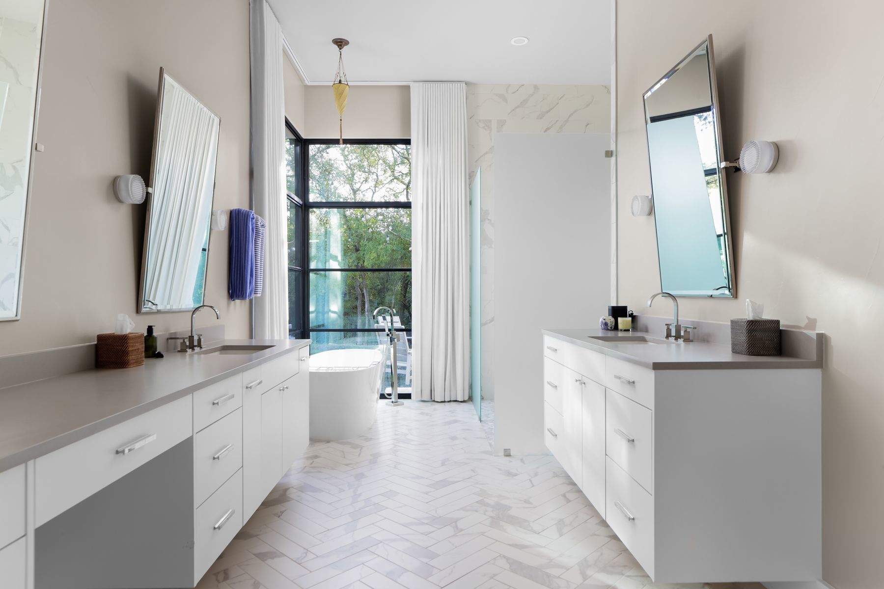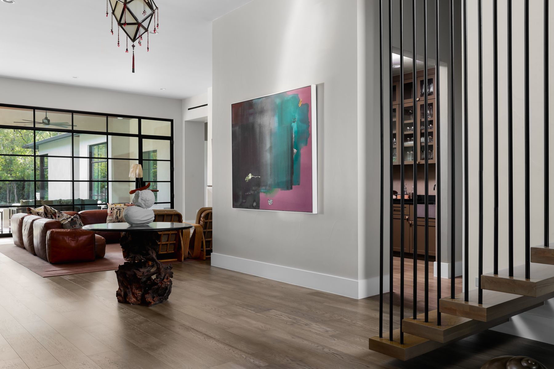 Nestled in the prestigious Stratford Hills enclave, this architectural gem commands a private 1.5-acre estate with sweeping green belt vistas. The property exudes refined elegance and serenity, creating an intimate sanctuary within beautifully manicured grounds. Step inside to discover soaring steel-framed windows that frame the breathtaking living space, where panoramic pool views meet the warmth of a handcrafted stone fireplace. The chef's kitchen anchors the home with lustrous marble surfaces and twin oversized islands. The gracious dining room transforms every meal into an occasion worth savoring. A stylish bar and climate-controlled wine cellar complete the entertaining spaces, designed for hosting in unparalleled style. The primary suite provides a peaceful haven with expansive proportions, tranquil landscape views, and a spa-inspired bathroom paired with a generously appointed walk-in closet. The main floor includes an additional bedroom with private ensuite, offering convenience and seclusion for family or overnight guests. The upper level reveals an impressive recreation and media space, complemented by three additional bedrooms, each capturing distinctive perspectives of the estate's natural beauty. Outside, the grounds unfold as a private paradise featuring a stunning infinity-edge pool with integrated spa. The substantial terrace, complete with an outdoor kitchen and radiant heating, extends the living space into every season. The expansive grounds provide complete privacy while cultivating a peaceful ambiance that elevates outdoor enjoyment. A practical 3-car garage and generous front parking complete this exceptional property, where functionality seamlessly meets luxury. This isn't simply a homeāit's an expression of distinguished living for those who value comfort, seclusion, and elegance in one of the area's most coveted communities.