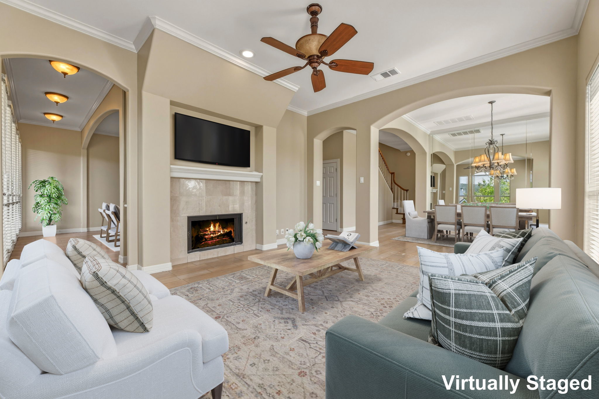 - Family Room, Glass Doors, Gas Log, Great Room, Living Room