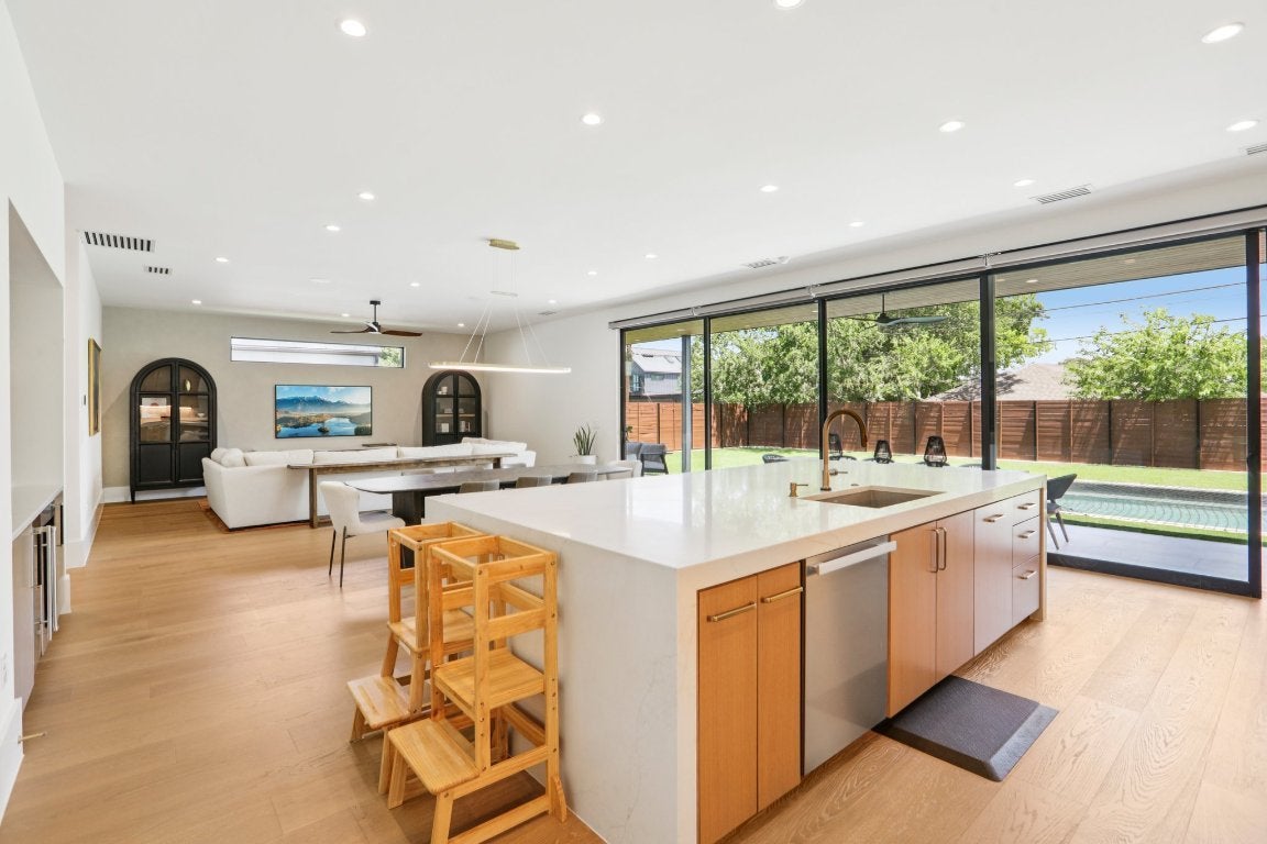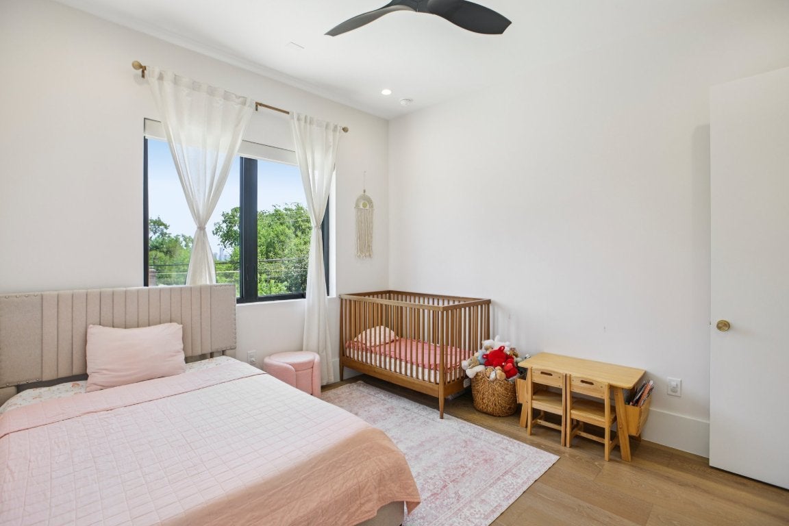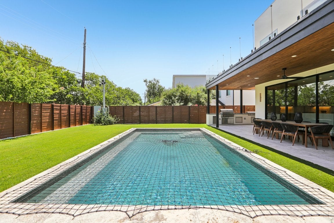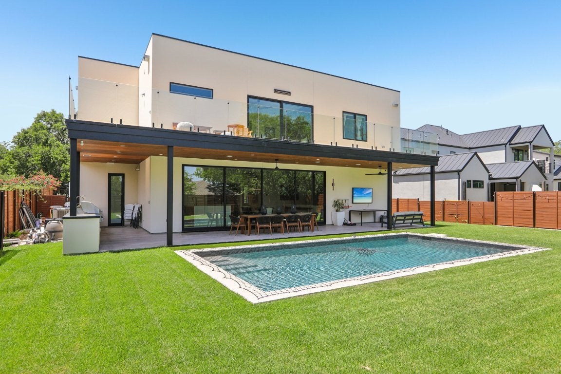 Welcome to 2010 Meadowridge Drive, a stunning contemporary home that blends modern luxury with breathtaking views of downtown Austin. Built in 2024, this residence features six spacious bedrooms and three and a half bathrooms, designed with an open-concept floor plan where the kitchen and living areas flow seamlessly together. The chef’s kitchen is a dream, showcasing a large island, Sub-Zero and Wolf appliances, and custom fixtures and finishes throughout. The luxury master suite offers a serene retreat, while every detail of this fully automated smart home reflects thoughtful design and high-end craftsmanship. Step outside to enjoy the ultimate in outdoor living, with a covered patio and outdoor kitchen overlooking a sparkling pool and a balcony that captures the skyline views. With its beautiful drive-up appeal, striking architecture, and indoor-outdoor living at its finest, this home is a rare Austin treasure
