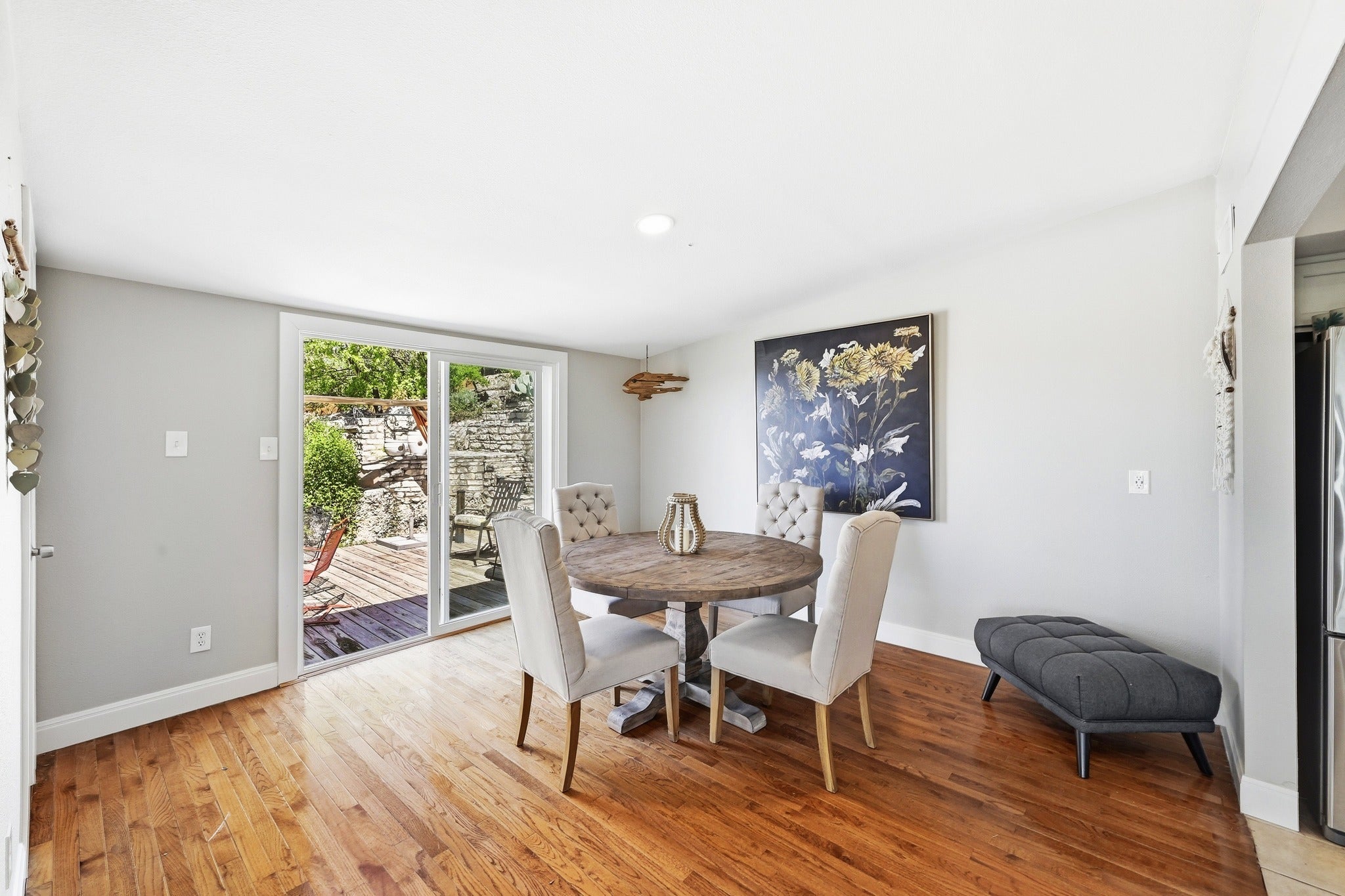 Iconic Mid-Century Lakeway Retreat with Sweeping Lake Travis Views! LAKEVIEW home offering stunning, PANORAMIC views of Lake Travis and the relaxed charm of Hill Country living. Thoughtfully designed with the main living level elevated to capture sweeping VIEWS, this mid-century home is filled with natural light and timeless character. Designed with an open floor plan, HARDWOOD FLOORING, UPDATED KITCHEN, and abundant natural light, the home provides an inviting flow between the living, dining, and kitchen. A wall of windows and sliding doors frame the views and open to outdoor living, while the main living area is anchored by a natural stone fireplace. The spacious primary suite is located on the main level, offering convenience and privacy, while the lower-level features two additional bedrooms and a full bath, ideal for guests, family, or a dedicated retreat space. Step outside to enjoy the flowing water fountain and multi-level living spaces. Perfectly positioned to take in breathtaking lake views, sunsets, and peaceful Hill Country evenings. Across the street, approximately six acres of city-owned parkland enhance both privacy and the natural setting, with frequent visits from deer, hummingbirds, and other native wildlife that make Lakeway so special. Additional features include an oversized 2.5-car garage with room for a golf cart, a covered parking space with direct access into the laundry room, tall ceilings, generous storage throughout, and an abundance of natural light in every room. Situated on a sizeable lot in the heart of Original Lakeway, just steps from Lake Travis access, golf courses, parks, shopping, dining, and highly regarded Lake Travis ISD schools, this home offers a rare opportunity to own a truly distinctive property with incredible views, character, and versatility-whether as a full-time residence or a dreamy lock-and-leave retreat. WALK to Lakeway Resort and Marina! LOW QUIET, CUL-DE-SAC STREET! LOW tax rate and NO HOA!