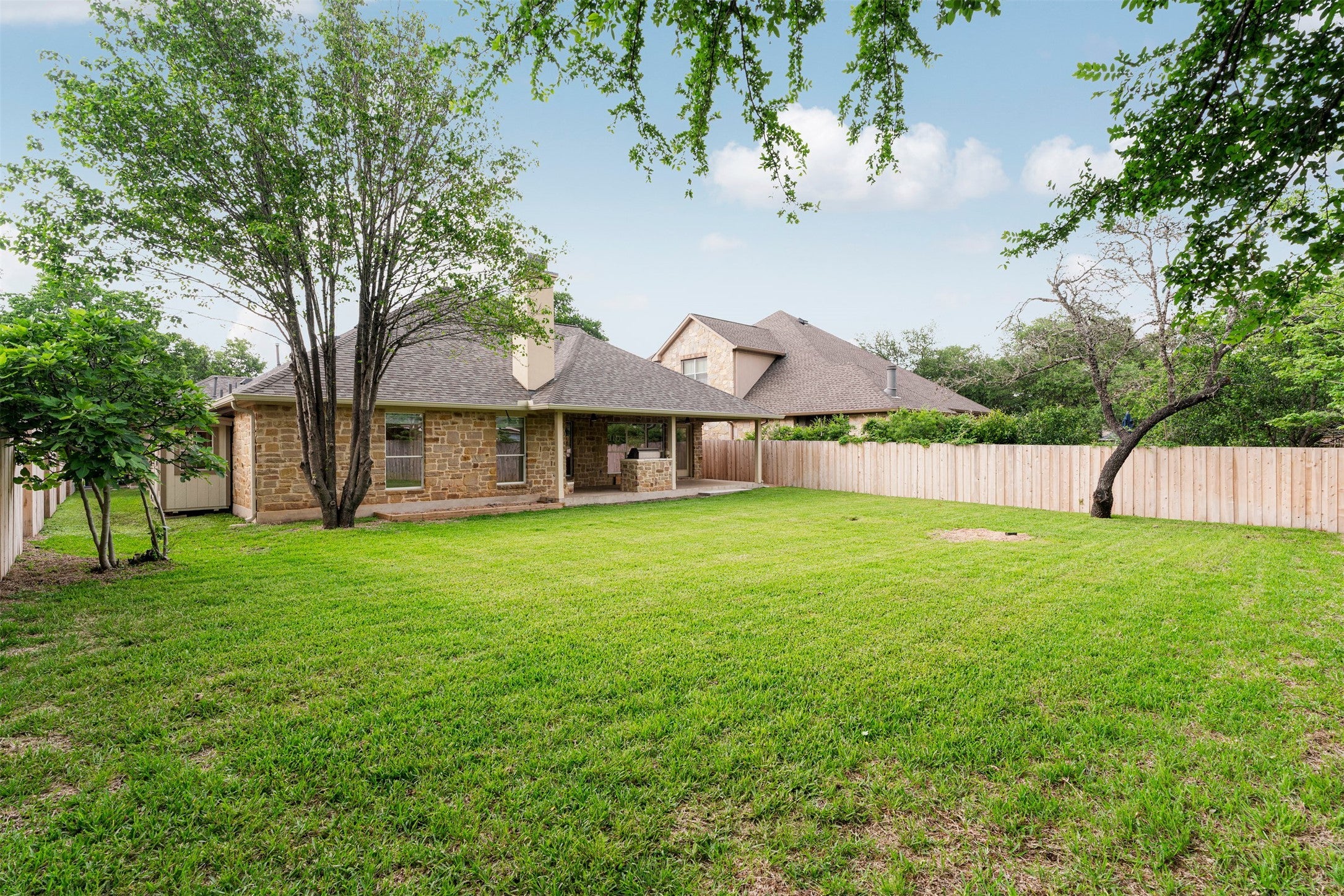 This Circle C home offers 3 bedrooms and 2.5 bathrooms in a quiet pocket that feels like a hidden gem. Wrapped by the fairways of the Grey Rock Golf Course, this section of Circle C is incredibly peaceful, catering to a lifestyle where morning walks and golf course views are part of the daily routine. While most homes in this area are original, this residence stands out with a list of upgrades, including a 2024 roof, a 2025 HVAC with warranty and 2026 smoke detectors. Most of the living happens on the main level, giving the home a convenient single-story flow, with the added benefit of a large upstairs game room. High-end oak wood flooring flows throughout the common areas, with fresh paint and recessed lighting throughout the entire interior. Through the front door, a flexible room sits to your left, perfect for a home office. Moving further in, the layout opens up into a kitchen, dining and living area. The kitchen is stunning with an updated center island and cabinets, and all stainless appliances including a gas cooktop, double ovens, dishwasher and microwave. In the living room, a floor-to-ceiling fireplace, with a one-of-a-kind mantel and high-end stone, serves as a focal point, while a wall of windows with linen shades looks out over the backyard. The primary suite is tucked away for privacy, offering a large layout and a custom California Closet with built-in hampers. The ensuite bath features a dual vanity, a soaking tub, a walk-in shower and a top-line bidet. The 2nd floor is dedicated entirely to the game room, which includes its own dry bar and half bath. Evenings are best spent on the covered back patio, which features a modified fireplace ready for a TV and a built-in grill. The backyard includes new fencing on 2 sides, a hand-built shed, and updated landscaping with a sprinkler system. This spot in Circle C is minutes from Escarpment Village favorites like HEB and Torchy’s, and just 15 miles from the center of Austin and 21 miles from the airport.