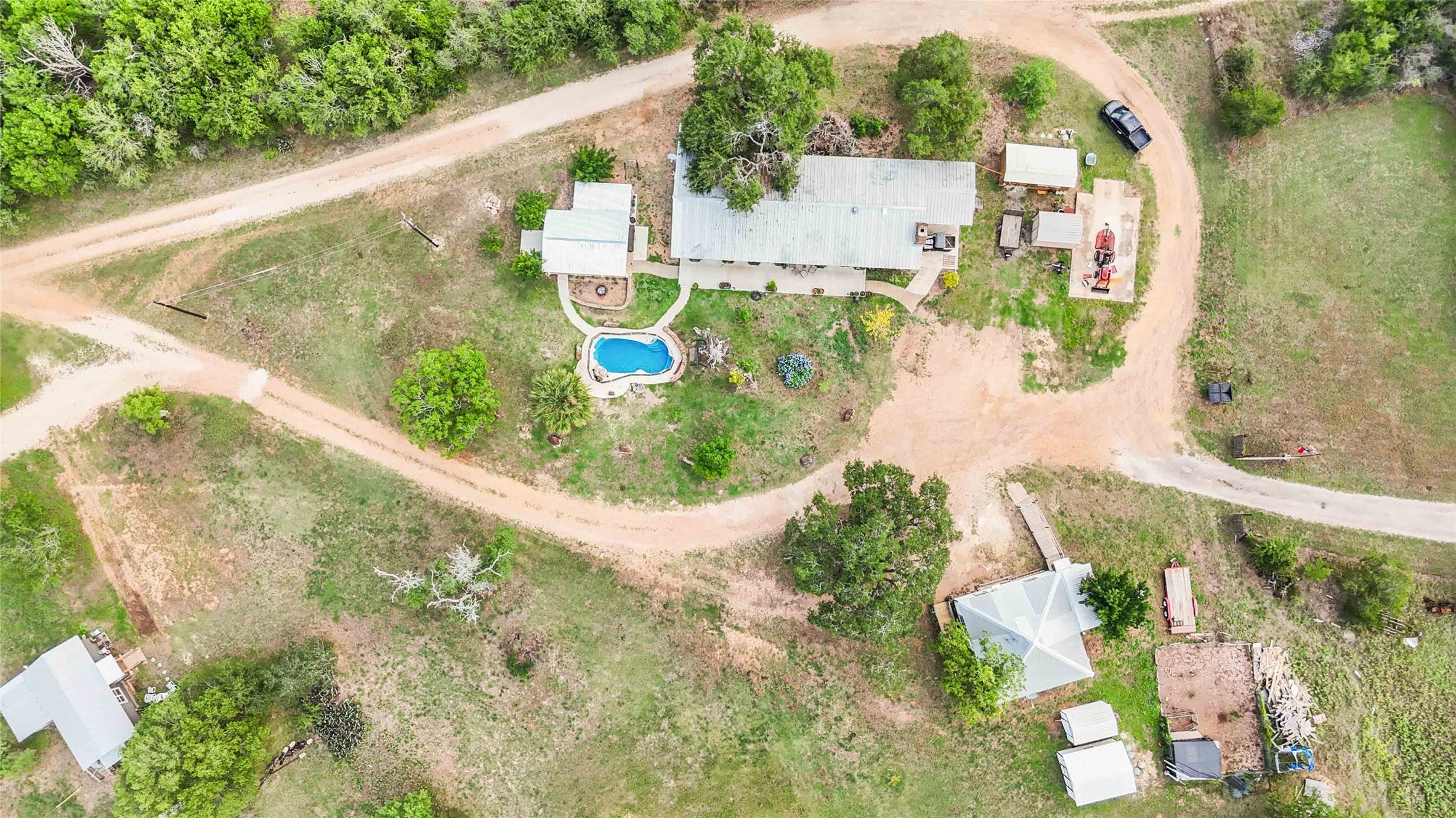 Rare Opportunity on 24 Acres Just Outside Lockhart! Welcome to Hillside Acres—an extraordinary property offering wide-open skies, rolling views, and unmatched versatility. Located just minutes from Historic Downtown Lockhart—a growing town known as the BBQ Capital of Texas, now expanding with local charm, new eateries, and a budding nightlife scene—this peaceful retreat offers both seclusion and convenience. This expansive 24-acre parcel includes three homes, with the option to remove the third if desired. Situated outside city limits, you'll enjoy the freedom of no city restrictions, a wildlife exemption for low taxes, and the ability to hunt on your own land. Whether you're envisioning a private homestead, a weekend getaway, or a picturesque wedding or event venue, this property delivers endless possibilities. Additional highlights include gently rolling terrain, mature trees and native landscape, rural setting just minutes from Lockhart. The main house showcases an in-ground pool with fencing and covered pavilion a few steps away. The second home was built in the late 1890's and has been freshly renovated. You have 4 separate water meters, 4 separate electric meters, and 4 separate septic systems. Two homes on the property will remain connected to utilities and move-in ready, leaving 2 RV spots with electric hook-ups, water and electric. Reach out for additional highlights of this property. Don't miss your chance to own a slice of Central Texas paradise with space to grow, roam, and create something truly special. Take a video tour at: https://youtu.be/UGp-XFDzC6s.
