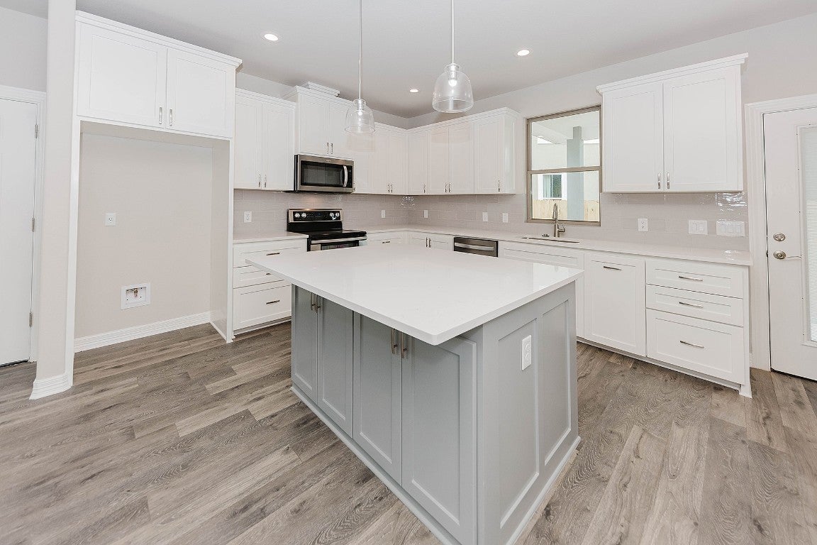 NO PETS, NO SMOKING! NO EXCEPTIONS! THIS IS NEW CONSTRUCTION! This is a beautiful new construction home on a cul-de-sac lot! With very high ceilings in the living area, open concept plan! The large kitchen with a lot of beautiful cabinets and quartz countertops is open to the dining and living area! The kitchen has a large island with storage on both sides a double oven range, trash drawer and deep drawers by the range! The primary bedroom is on the main floor and is a nice size with a luxurious primary bath with a garden tub and large separate shower and dual vanities. There is a large walk-in closet for the primary bedroom! There is a smaller living area/office area at the top of the stairs with built-in cabinets with quartz counters and drawers for storage of games, etc. Bedroom 2 & 3 are nice sized rooms with nice closet space. The guest bathroom has quartz counters and lots of drawers for storage and a tile shower/tub surround. The luxury vinyl plank floors are very pretty! The wood front door has 5 panel glass! The garage has good lighting and the laundry area is in the garage. Nice size backyard since this is a cul-de-sac lot! No fencing will be installed. This home has water service from BCWID#2 and there is an active HOA, but no HOA fee, just a $204 per lot road tax. Only 7 minutes to downtown Bastrop for fine/casual dining, live music, bowling alley/movie theater, Bastrop has a lake with 2 parks, a State Park, the Colorado river, etc. for the outdoor enthusiast