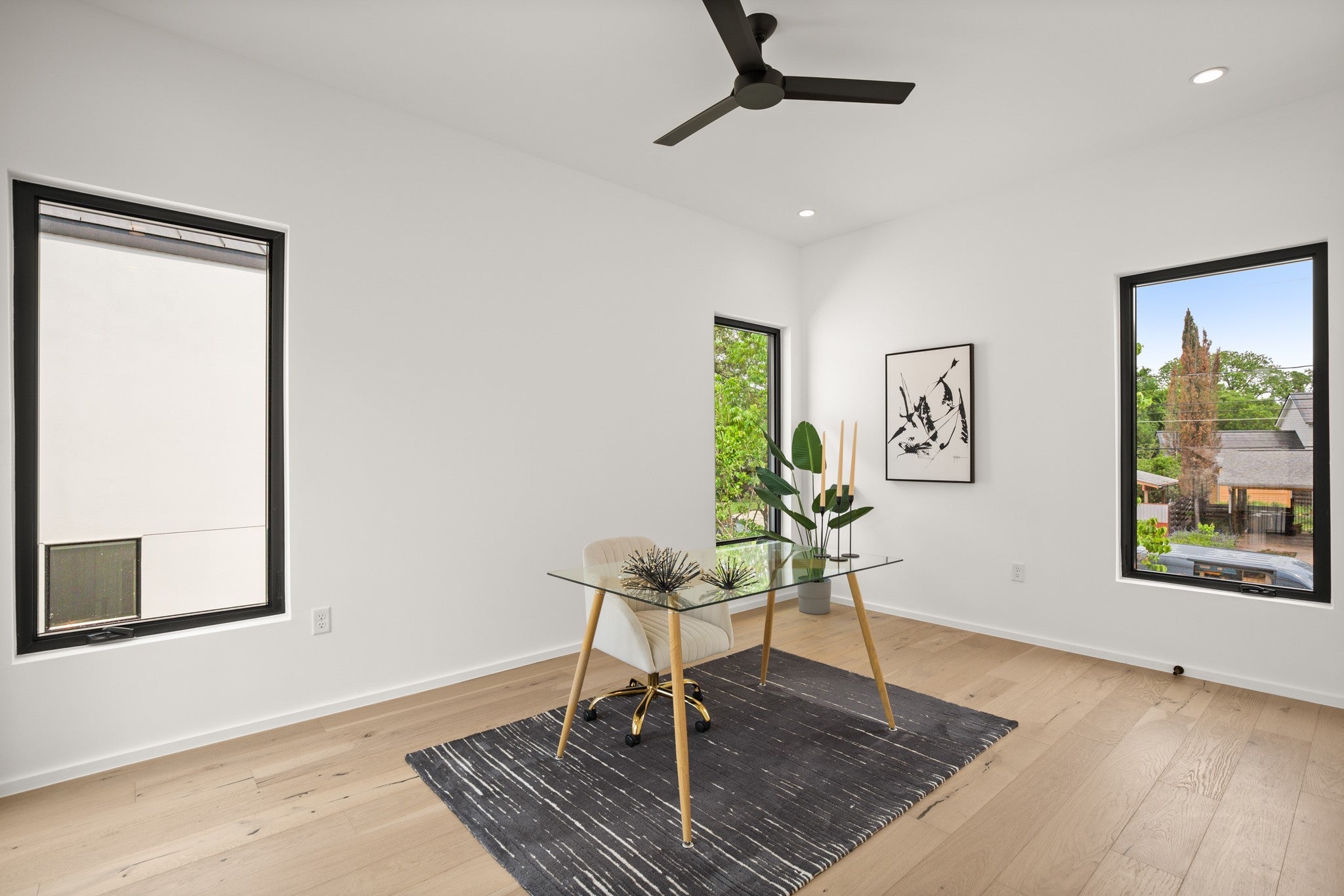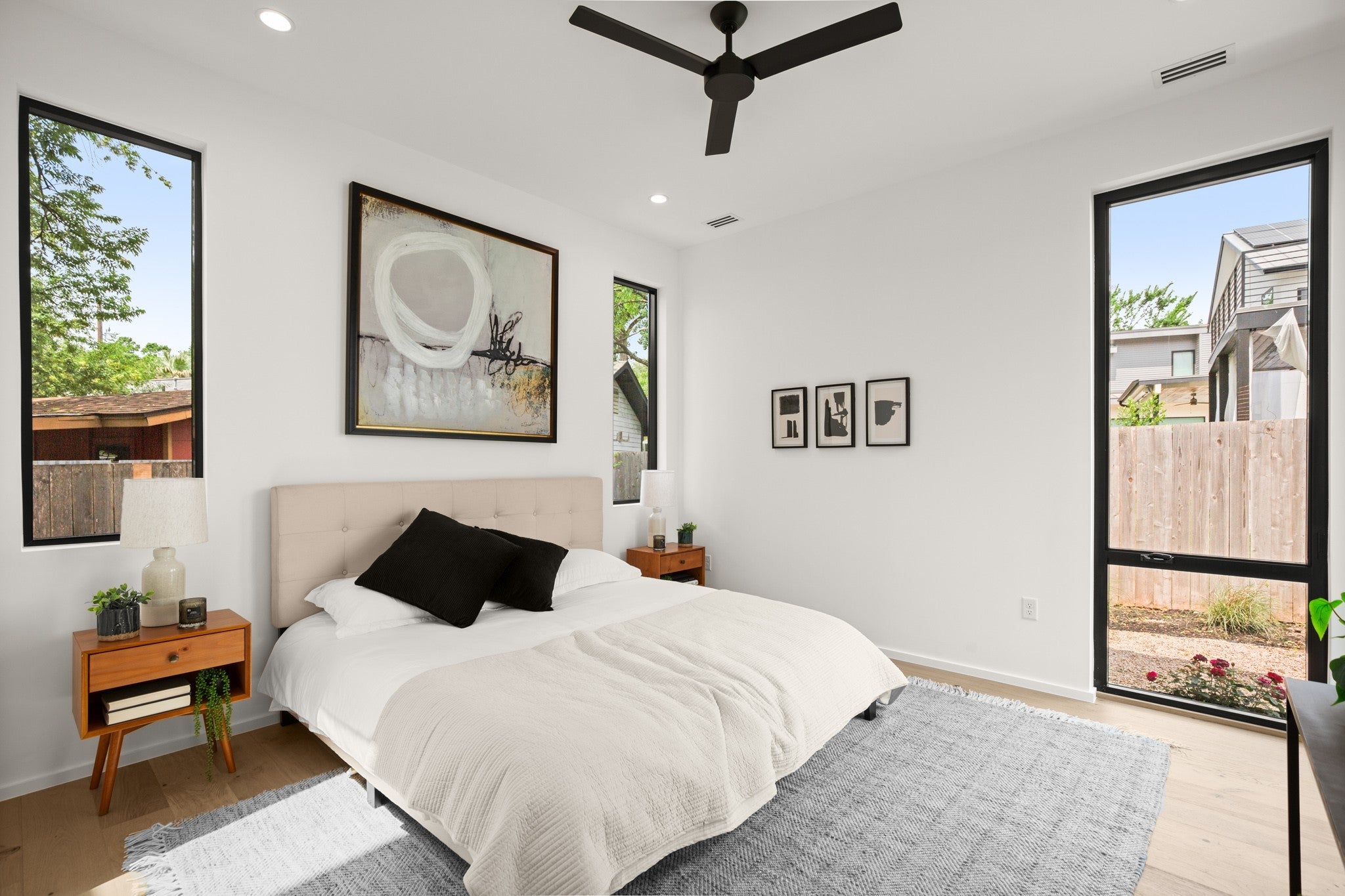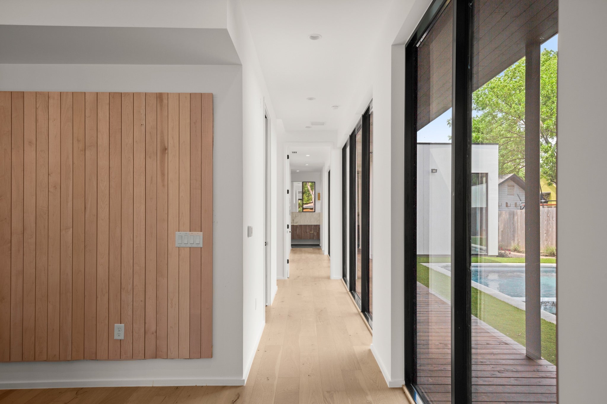An Entertainers dream with impeccable modern architecture located in the highly walkable Zilker neighborhood in the heart of 78704 with spectacular rooftop terrace downtown views! Masterfully built this home embodies both functionality and effortless design with a well thought out and strategically designed open floor plan perfect for hosting and entertaining. Sleek contemporary lines mixed with warm, natural elements invite you in with an abundance of natural light during the day and a cool, entertainers' atmosphere at night. Enjoy indoor/outdoor living year-round with massive floor to ceiling sliding glass doors, private fenced back yard with a stunning private pool. The exquisite kitchen features a jaw dropping huge quartz waterfall island great for dining and entertaining with state-of-the-art Dacor appliances package and sophisticated custom cabinetry. The spacious primary suite and gorgeous spa-like primary bathroom are a show stopper with tons a space and a dream walk in closet. Carefully curated tile and fixture selections throughout the home truly make for an impressive place of residence. The secondary bedrooms are on the second floor as well as the huge loft area that can be used as a home office, gym, second living room, etc. Travel up the stairs to the rooftop terrace where you can see downtown views with plenty of space to add another entertaining area. This home is in one of Austin's most coveted and convenient zip codes, with walkability to multiple different shopping districts, restaurants, coffee shops and more. Unmatched location, unbeatable design.