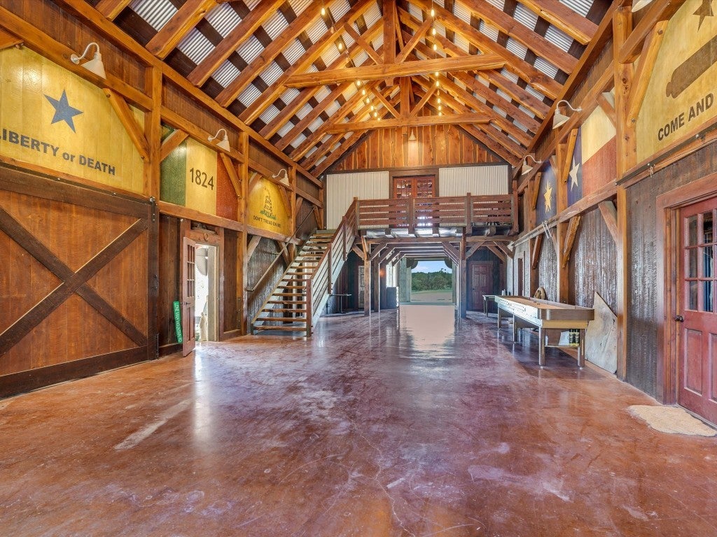 NEW RECREATIONAL RANCH LISTING IN WIMBERLEY TEXAS! Three contiguous tracts in the Texas Hill Country - Introducing the Party Barn - A Masterpiece of Craftsmanship: Experience unparalleled luxury at this extraordinary retreat on 83+/- ag exempt acres. The stunning Party Barn features 5,068+/- sq.ft. of meticulously crafted space, including 2,040+/- sq.ft. of conditioned living area. This Timber Frame/Post and Beam Hybrid structure, built from Eastern Red Aromatic Cedar, showcases craftsmanship and dedication. Exceptional Materials and Design: Constructed from rot and insect-resistant cedar, each log was carefully selected, milled, and inspected by the owner. The barn's artistic design includes book-matched pairs for knee braces and rafters, dovetailed slots for horizontal timbers, and handcrafted details throughout. Hand-painted historical flags add a unique touch. Luxurious Pool Complex: The pool house with outdoor living space including an outdoor kitchen and 1/2 bath, built with the same meticulous methods, features book-matched knee braces & rafters. The 48 by 24-foot pool includes a half-round sun deck, underwater armrests, a unique water feature with a 33-foot Aermotor Windmill, ensuring longevity and enjoyment. Regulation Skeet Range: For recreation, enjoy a regulation skeet range with professional-grade clay machines, two horseshoe pits, a 2-foot retaining wall, and shaded shooting stations. Nearby fire pit and rest area offer a perfect spot for relaxation. Dream Homesites: Either nestled among majestic century-old oaks, close to recreational activities or high on a ridge with panoramic hilltop views of the Wimberley Valley and the Austin skyline. In Summary - this one-of-a-kind property blends natural beauty, luxury, and recreational experiences. Discover endless possibilities within this exquisite Hill Country retreat. All information provided is deemed reliable but not guaranteed and should be verified. Some photos have been digitally enhanced.