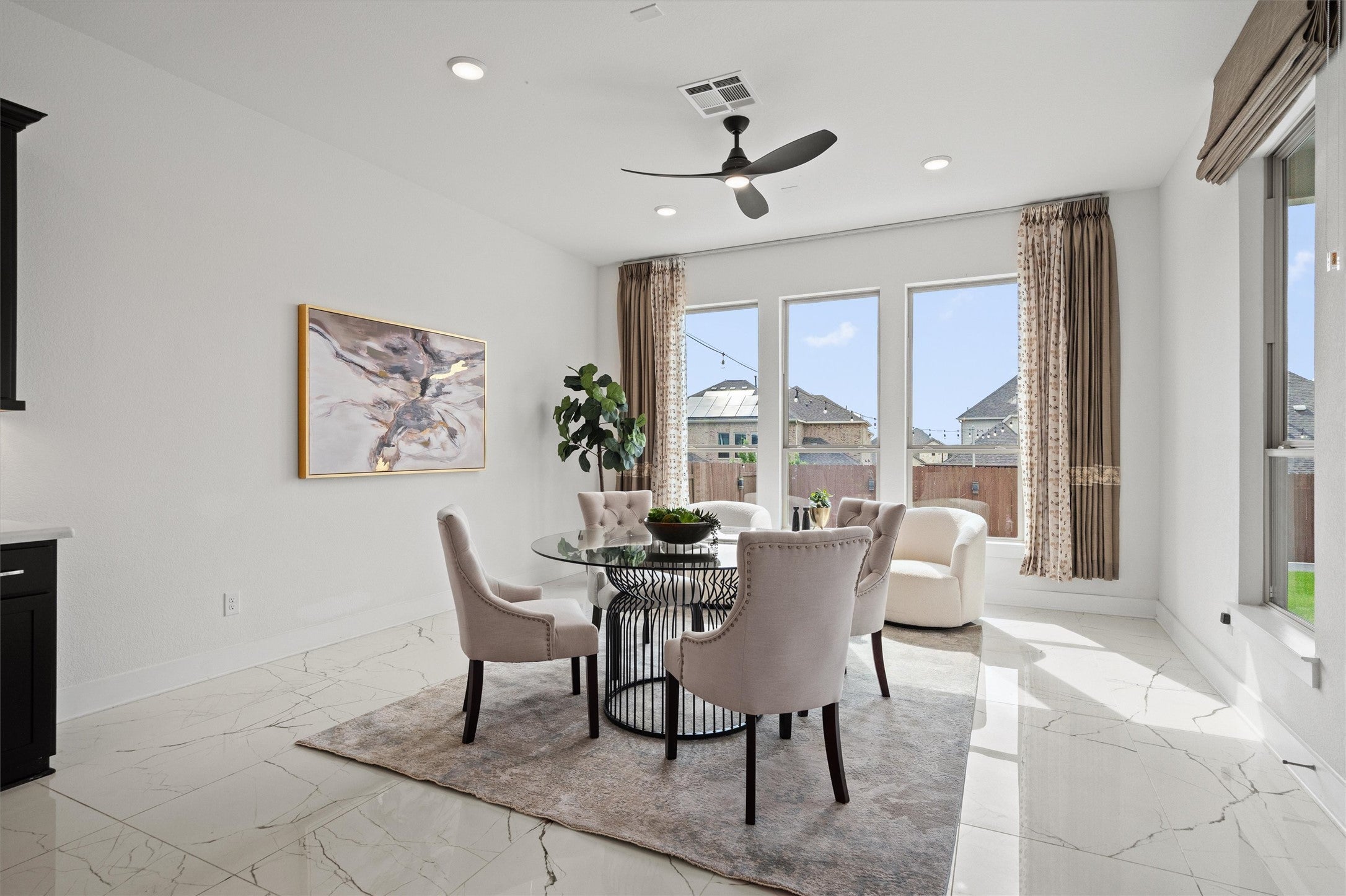 Welcome to a home that truly has it all—space, style, and a flexible layout. Built in 2021 by Taylor Morrison and spanning an impressive 5,187 square feet, this exceptional six-bedroom, four-and-a-half-bath residence in Vizcaya offers luxury, functionality, and modern design. Notice the expansive layout that make this home ideal for multi-generational living, entertaining, and everyday comfort. At the heart of the home is a stunning gourmet kitchen, featuring an oversized island, sleek quartz countertops, a six-burner gas cooktop, and stainless steel appliances. This space flows seamlessly into a large and bright breakfast area—perfect for gatherings both big and small. A butlers pantry and formal dining room add elegance for special occasions. Work from home with ease in the private office, while the upstairs loft and movie theater create the ultimate retreat for relaxation and entertainment. The flexible floor plan includes two spacious bedrooms with en suite bathrooms on the main level—ideal for guests or multi-generational living. Upstairs, you’ll find additional generously sized bedrooms and plenty of room to spread out. The spacious primary bedroom downstairs is a true retreat and the large bathroom conveys a spa like feel. It features two walk-in closets – one of them connecting to the laundry room for added convenience. Step outside to enjoy a large covered back porch overlooking the backyard—an inviting space to unwind, entertain, or simply enjoy the Texas evenings. Additional highlights include: No carpet throughout, ceiling fans in every bedroom and the office, abundant natural light. Located in the highly sought-after Vizcaya community, residents enjoy access to resort-style amenities including a pool, sports courts, and playgrounds. The home is conveniently situated near public schools, reputable charter schools, college campuses, major hospitals, shopping, dining, and provides quick access to highways for an easy commute to major employers.