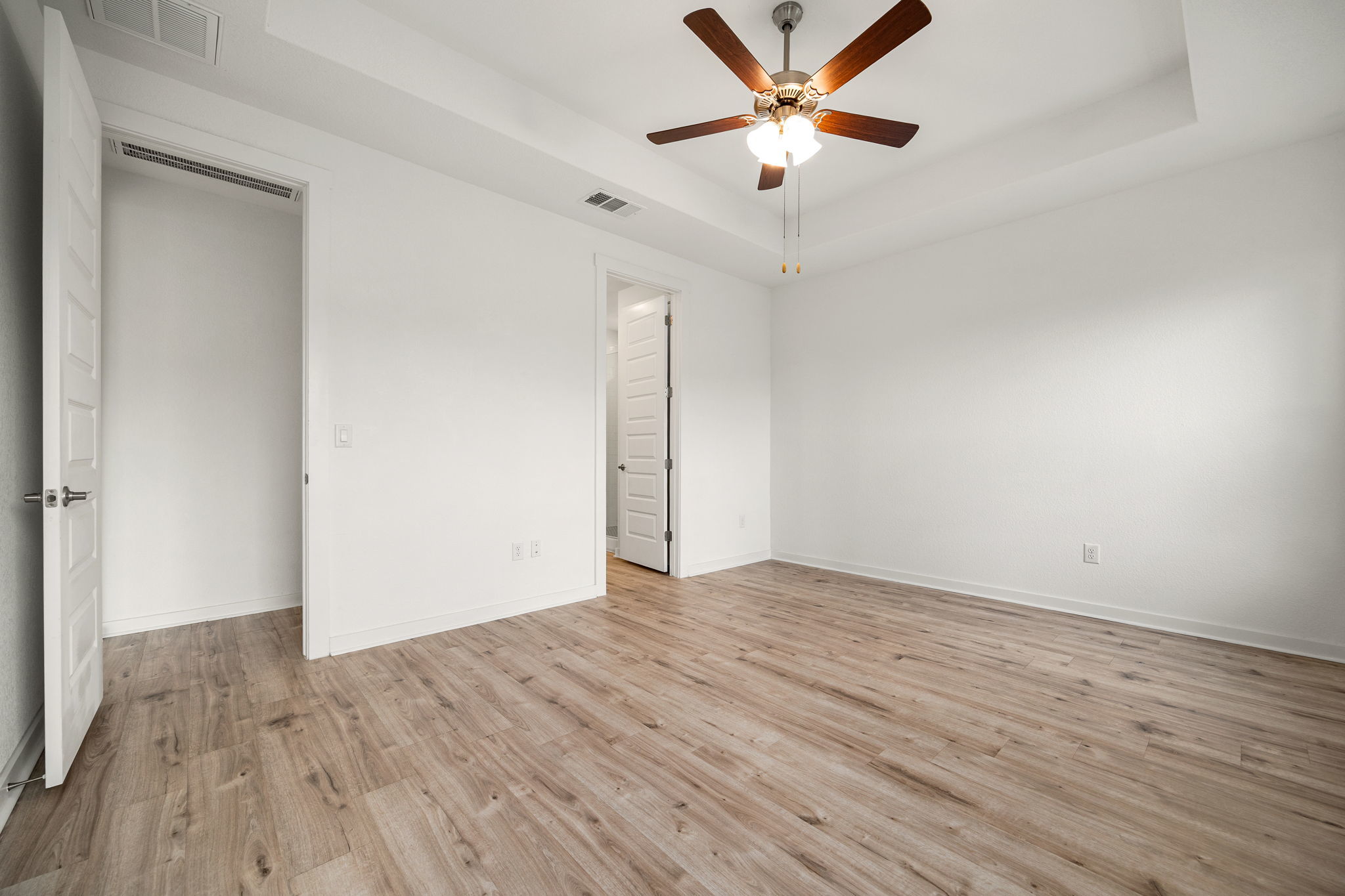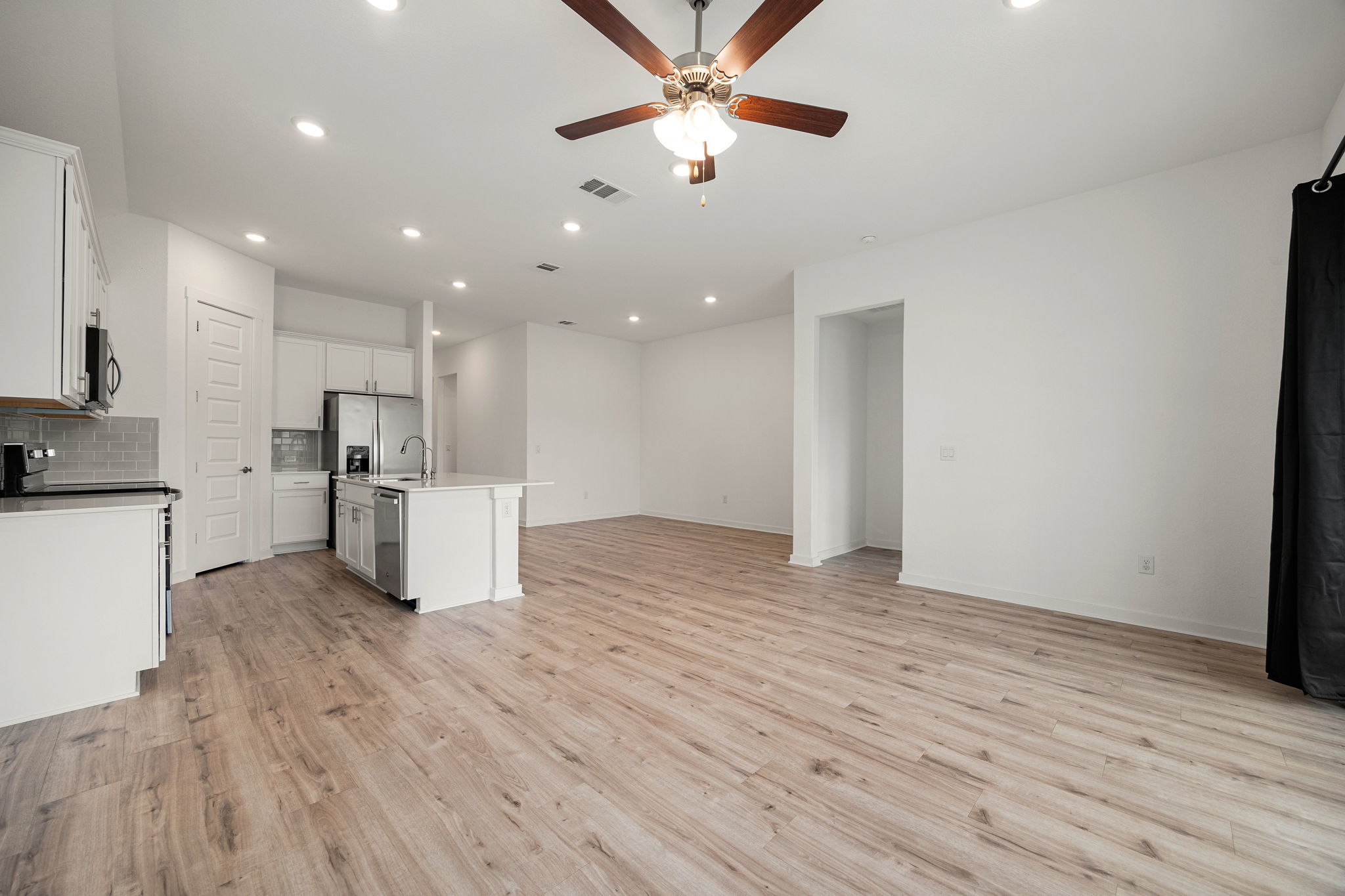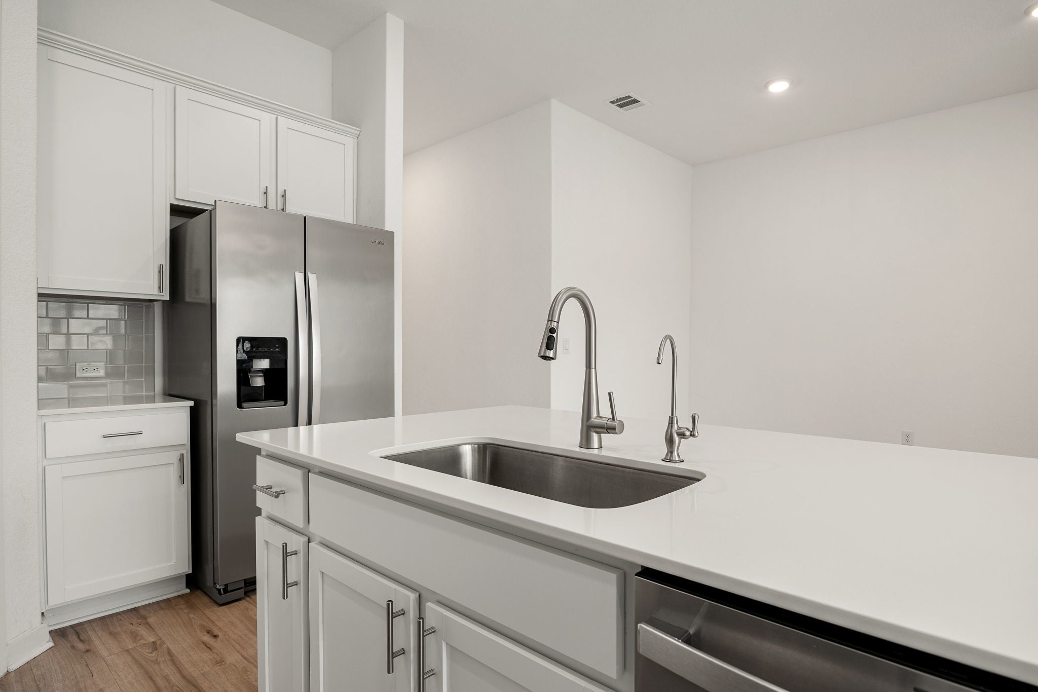 **Move in Special - April move in get April RENT FREE!** Modern single-story home on a peaceful cul-de-sac in the desirable Riverview community, offering easy access to Georgetown’s best amenities. Residents enjoy scenic San Gabriel River trails, a community pool, playground, beach volleyball court, and beautifully maintained green spaces. Just minutes from historic Downtown Georgetown, Wolf Ranch Town Center, and a variety of dining, shopping, and entertainment options. Within 15 minutes, HEB, Costco, IKEA, and Round Rock Premium Outlets are easily reachable. Convenient access to IH-35, SH-130, and Hwy 29 allows quick commutes to Round Rock, Cedar Park, and North Austin. This stunning home offers an open-concept layout with 4 spacious bedrooms and 2 full bathrooms, abundant natural light from large windows and sliding glass doors, 10 feet ceilings in Living, Kitchen, Dinning, Hallway (tray ceiling in primary bedroom is 11 feet, other bedrooms are 9 feet), and luxury vinyl plank flooring throughout the main living areas. All doors are 8 feet high! The entry opens into a bright great room seamlessly connecting the living room, dining area, and chef’s kitchen. The kitchen features an extra-large center island with breakfast bar, quartz countertops, walk-in pantry, water softener, reverse osmosis faucet, and premium stainless-steel appliances. Oversized sliding doors provide a seamless transition from indoor to outdoor living. The private primary suite is separated from secondary bedrooms and includes luxury vinyl plank flooring, tray ceiling, spacious walk-in closet, and a spa-like en-suite with quartz double vanity and large walk-in shower. Secondary bedrooms are generously sized with carpet flooring and share a full guest bath with quartz vanity and tub/shower combination. Step outside to a large fenced backyard with a covered patio—perfect for relaxing, grilling, or entertaining. Exterior features four-side brick construction for durability and curb appeal.
