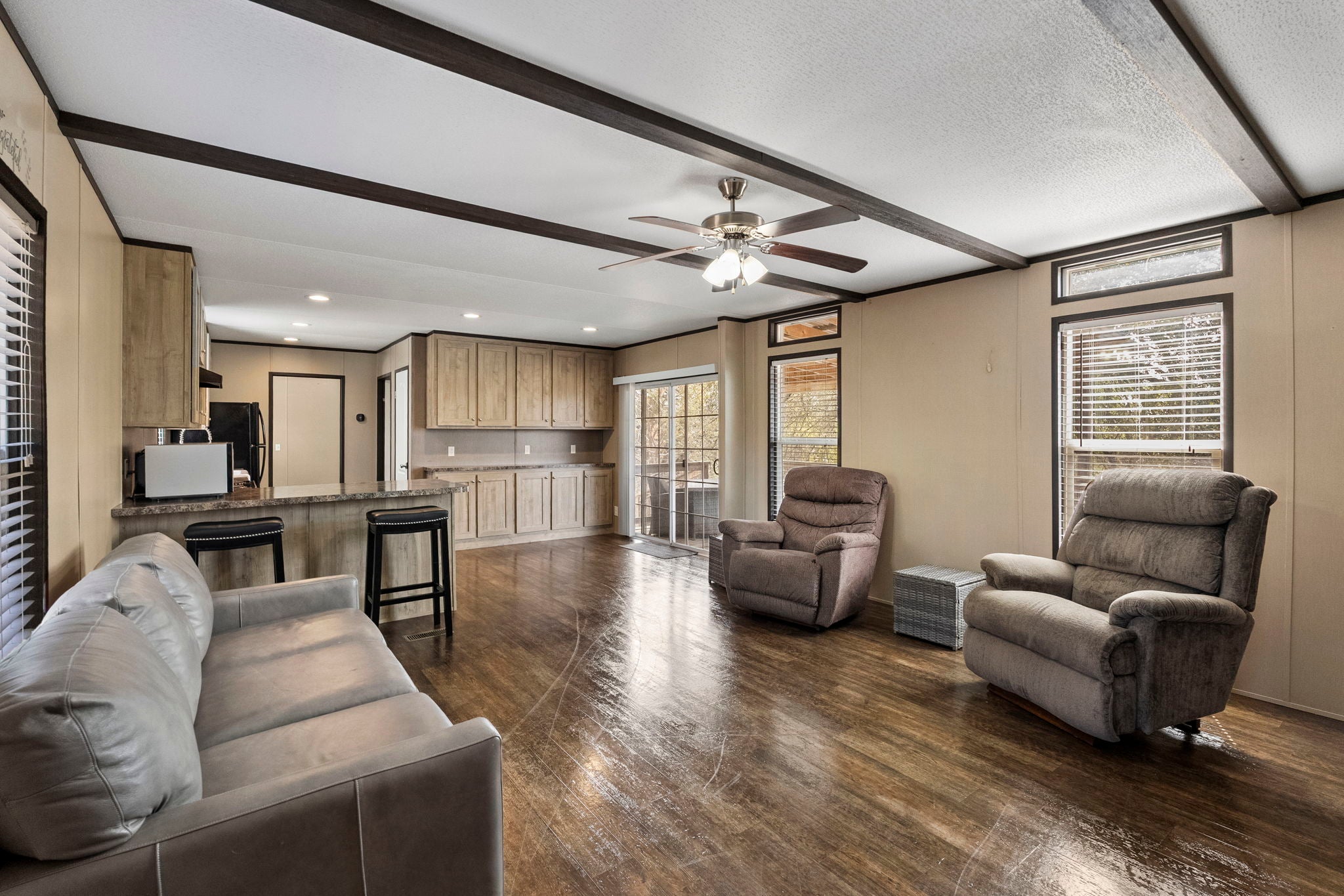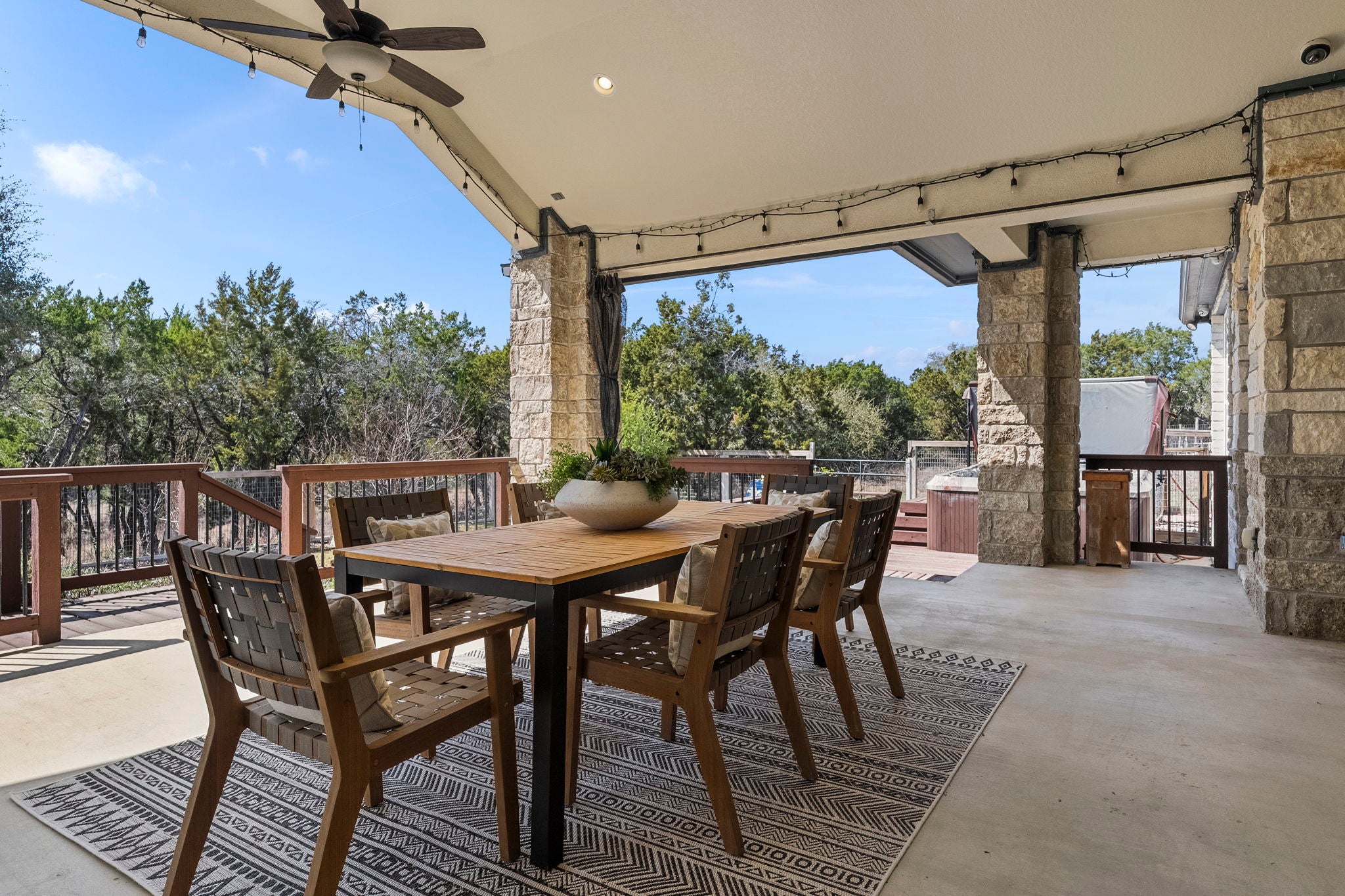 Set on approximately 5.82 private acres in North Canyon Lake, this gated Hill Country estate offers unmatched privacy versatility and refined living just minutes from the lake. With no HOA the property combines freedom and functionality in a serene natural setting surrounded by mature trees scenic views and native Hill Country landscaping. The main residence built in 2017 spans approximately 3,160 square feet with 3 bedrooms and 3.5 bathrooms. Expansive light filled living areas flow seamlessly between the kitchen dining and living spaces, making it ideal for entertaining or comfortable everyday living. The kitchen features granite countertops, ample cabinetry, high end appliances and generous prep space while tile floors in main areas and carpeted bedrooms balance durability and comfort. The primary suite serves as a private retreat with a spa like bath walk in closet and private access to outdoor living areas while additional bedrooms provide flexible living work from home or guest accommodations. A separate guest home built in 2018 by Clayton Homes adds approximately 1,088 square feet with 2 bedrooms, 2 bathrooms and front and rear porches perfect for extended family guests or rental income. Outdoor living embraces the Texas Hill Country with lush mature landscaping fruit trees, a raised garden and a private hot tub for relaxing under wide open skies. A 40 foot by 60 foot fully insulated metal building with water electricity and commercial grade compressor offers exceptional space for a workshop hobby or storage supported by a dedicated pump house. Modern convenience meets country living with Google Fiber high speed internet allowing seamless remote work. With gated access expansive acreage no HOA and proximity to Canyon Lake this unique property presents a rare opportunity to enjoy private Hill Country living with versatility luxury and comfort in one remarkable setting.