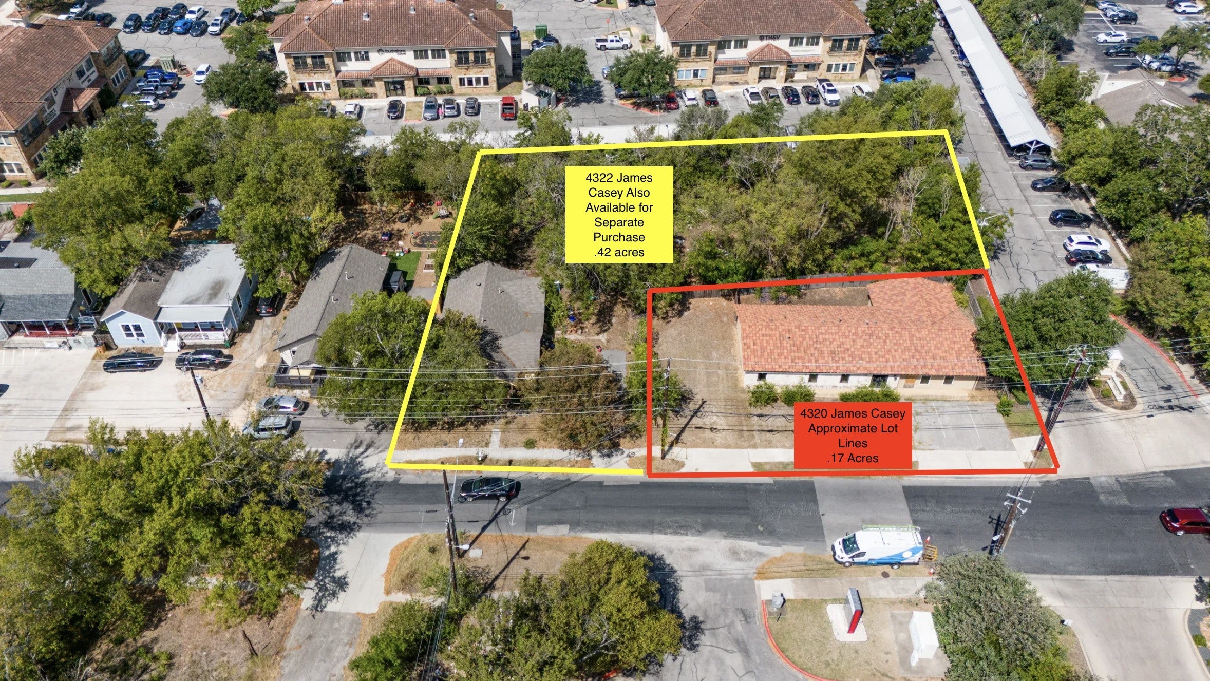 Rare Opportunity Directly in the Heart of ST DAVID'S SOUTH MEDICAL DISTRICT in Austin's SPECIAL DISTRICT. This Commercial Zoned Property Ready for your final touch (.17 acres) or this property is perfect for larger development project as the adjacent parcel at 4322 James Casey (.42 acre) to the left is also available for separate purchase. This combined purchase would amount to a .59 acre combined lot with opportunity on over 25,700 square feet. The structure is fully completed on the exterior and just needs the final finish out on the interior. LOTS of Potential Development Opportunities in this Thriving Medical District.