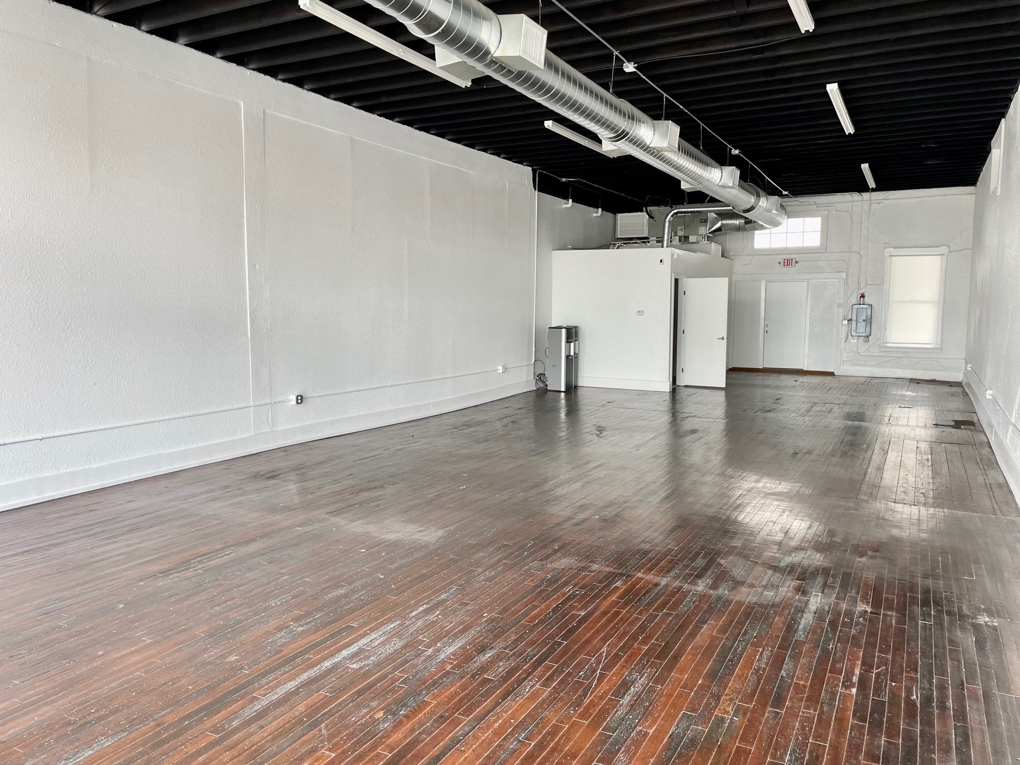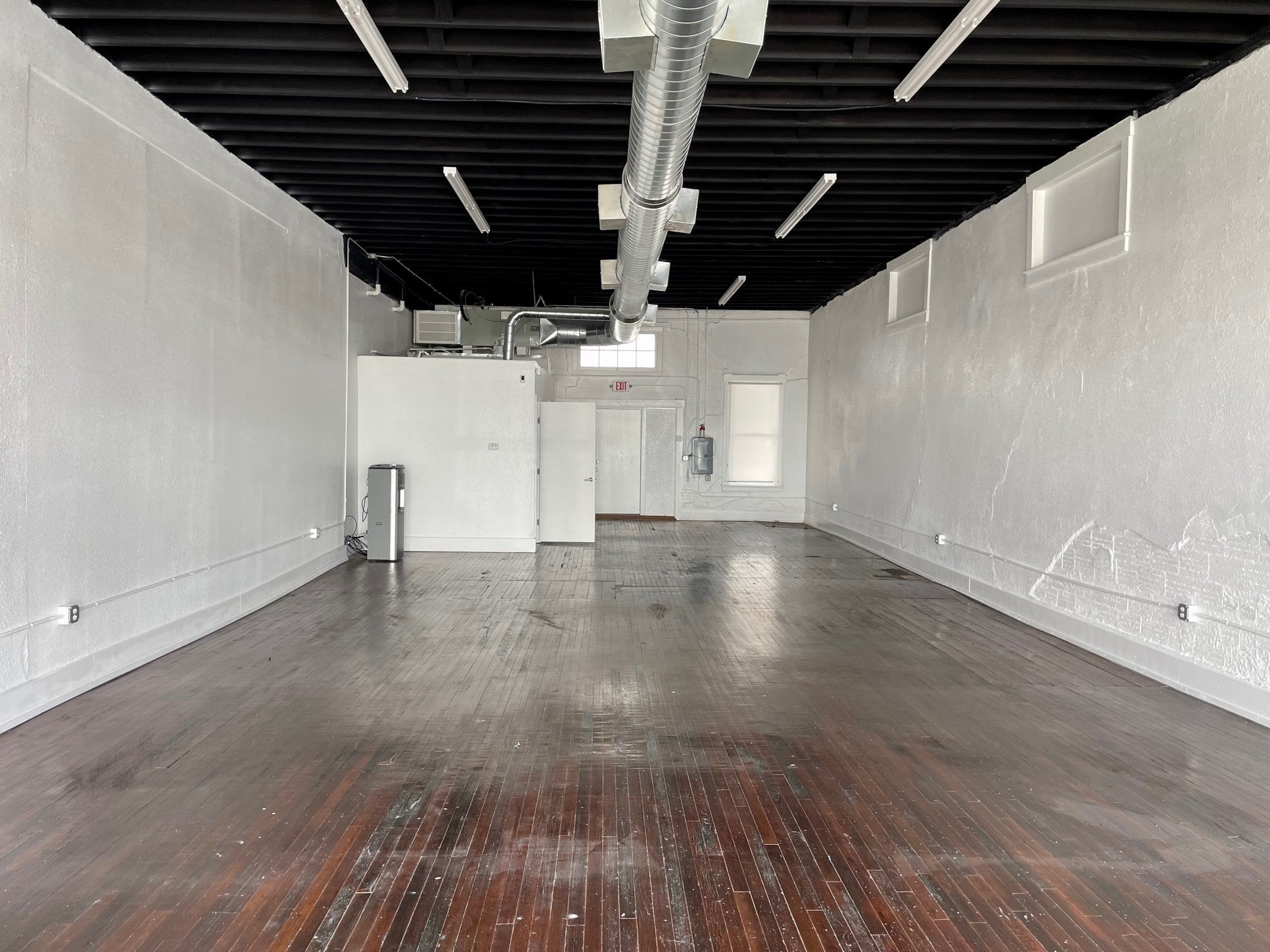 Renovated Commercial Space from the 1920s. 1565 square feet! Retail/office/flex commercial space. Many possibilities. Large open area. Original hardwood floors. Large Windows. Tall Ceilings. 2 new bathrooms. No NNN. Gross lease. Rent just $1595. Utility fee for $100 for water and sewer. Available April of 2026!