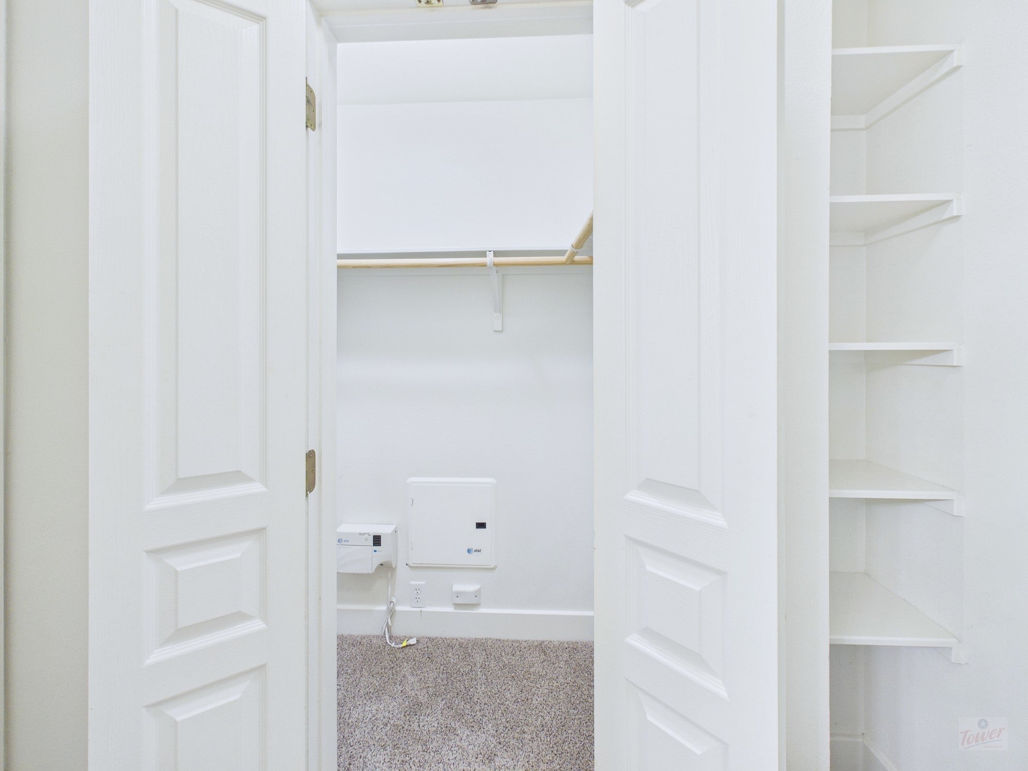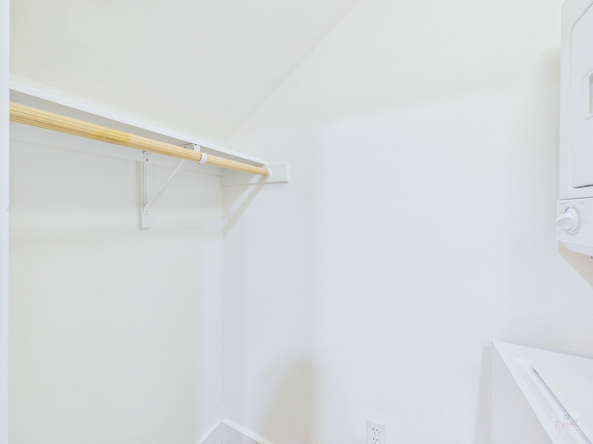 - Washer/Dryer Stacked, Dishwasher, Electric Range, Free-Standing Range, Disposal, Microwave, Refrigerator, Stainless Steel Appliance(s)