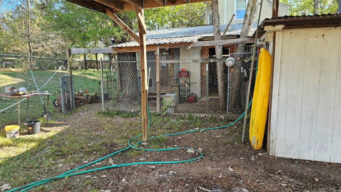 This is a unique — some would say funky — property! Four acres on TX-21, entirely owner-built and owner-landscaped. The current owner purchased the land in 1978, when the previous owner had set up a retired Austin city bus to use as a hunting cabin. From there, the current owner began building a roughly 2,000 sq ft home around the bus — truly a one-of-a-kind creation. Seeing is believing! A large garage/workshop was added to house a motorcycle repair business (now retired). The garage and home are attached. A separate 1,600 sq ft commercial building facing the highway was gradually constructed during the 2000s. It served as a tavern for a few years and is now operating as a cafe with a deck and patio. Perhaps the most attractive feature of the property is the back two acres, where nature takes center stage. A creek runs through the land, which creates a .25 acre pond perfect for fishing or swimming. A private well irrigates the grass and pond, while the house and cafe are connected to Aqua Water. The house patio is grassy and shaded by mature trees. The back acres feel park-like, with tall trees, a meadow, and a large garden area (or potential home site). The pond attracts fish, turtles, frogs, and birds. Last year, another small pond was added near the parking area, complete with a landscaped lawn leading down to it. All construction is unconventional but solid — featuring a hot tub, carports, green room, and multiple sheds.