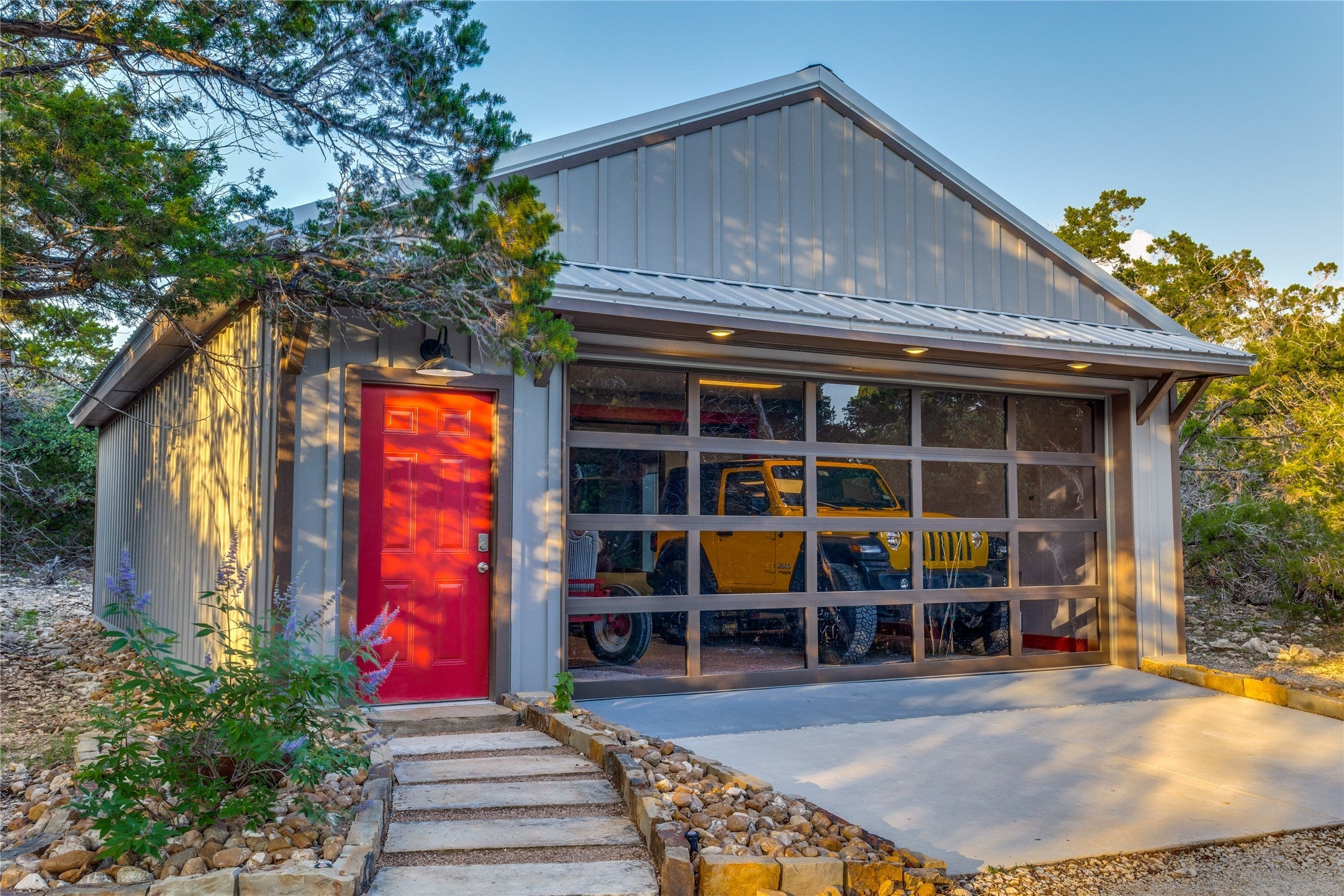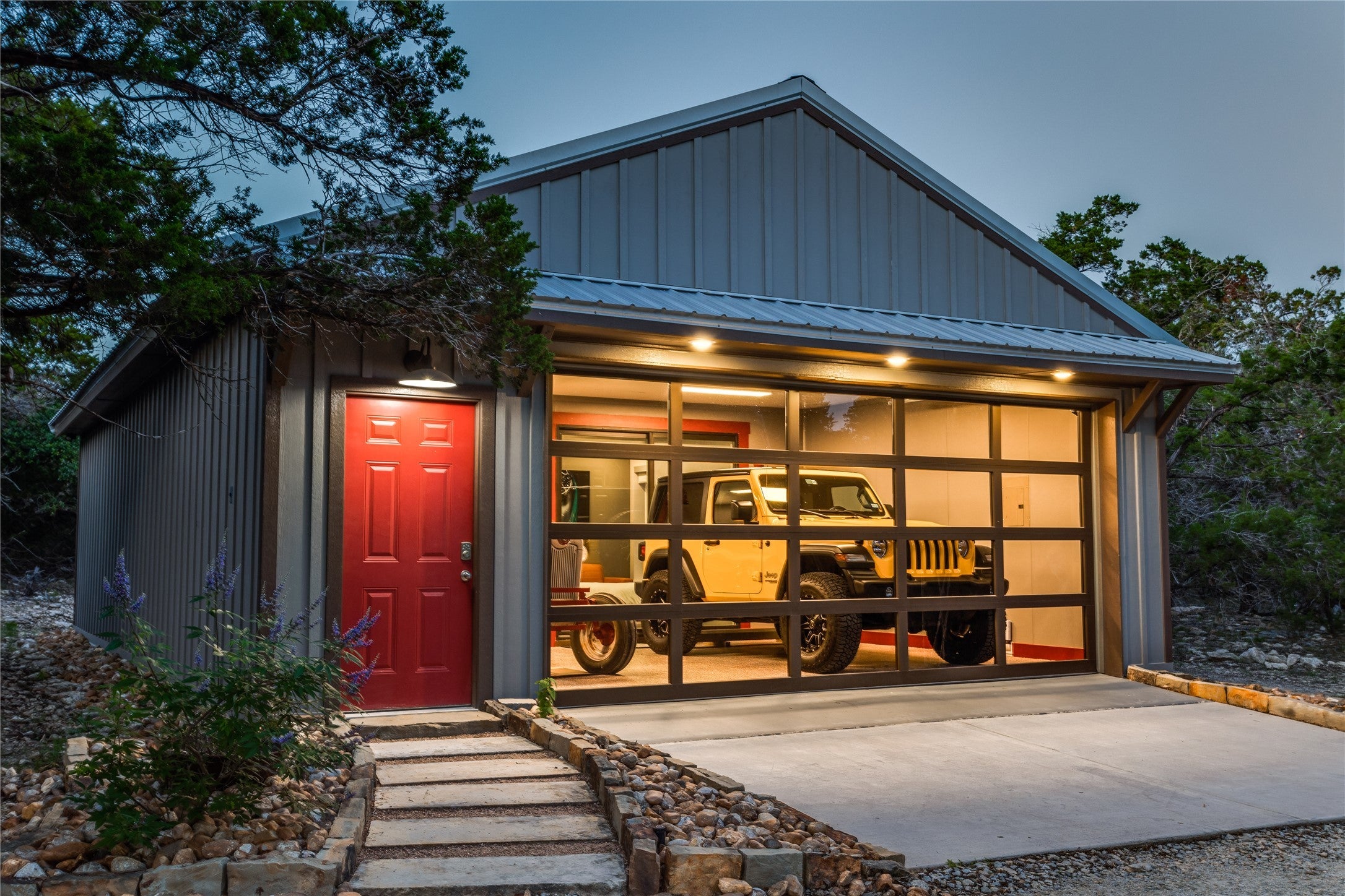 Big Texan Sky has everything you could want in a Hill Country home. Step inside to a stunning view- the floor to ceiling windows overlook 8.5, AG exempt acres. The main home consists of 2 bedrooms and 2.5 baths. The architect and sellers put careful thought into the design aesthetics when creating this 'Hill Country Modern' home. With recent updates that include new flooring and a freshly painted interior. All furniture remains making this a convenient turnkey property. The style extends to the native landscaping and outdoor entertaining areas with a stone encased spa, perfect for relaxing to enjoy the sunset. Just below that sits a fire pit for hosting larger parties. The sellers have cleared a nature path for ease of exploration on the property. To call this 26' X 40' simply a garage, would be an understatement. Not only is there space for 3 cars, epoxy shield flooring, and an insulated and automatic glass garage door, but it also includes 22' X 14' living quarters appointed with a full bath with a spa like walk-in shower. This space includes a king size bed and full size couch. Your guest will not want to leave. Big Texan Sky has been operating as a vacation rental for several years with incredible reviews. This could continue as an income-producing property with potential to grow or work for anyone looking for a truly unique home surrounded by breathtaking views and peaceful quiet.