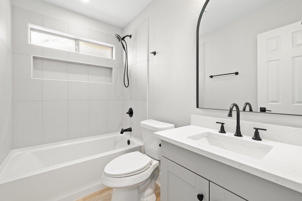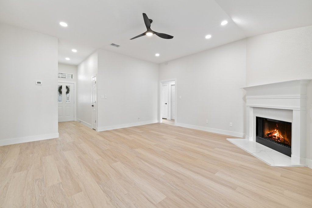 This fully updated 4-bed, 2-bath home pairs modern finishes with a practical layout. Bright kitchen with quartz countertops, new cabinetry/hardware, and brand-new stainless appliances—including refrigerator. Both baths renovated; the primary suite features a double vanity and walk-in shower. Fresh interior paint, recess lighting, LVP flooring, tile, new lighting/fixtures, and refreshed details throughout. Convenient laundry, ample storage, and a spacious yard to make your own.