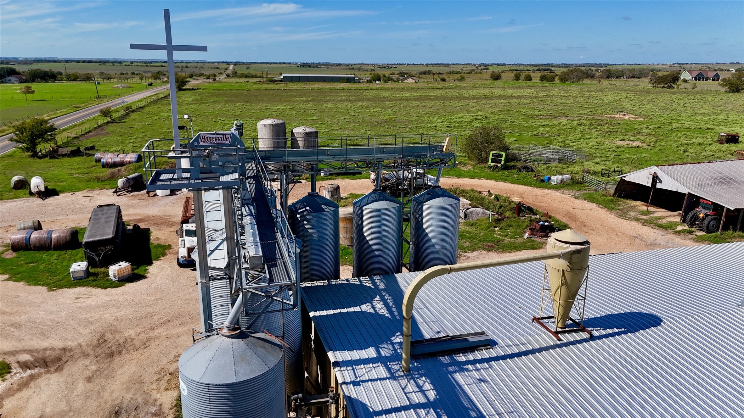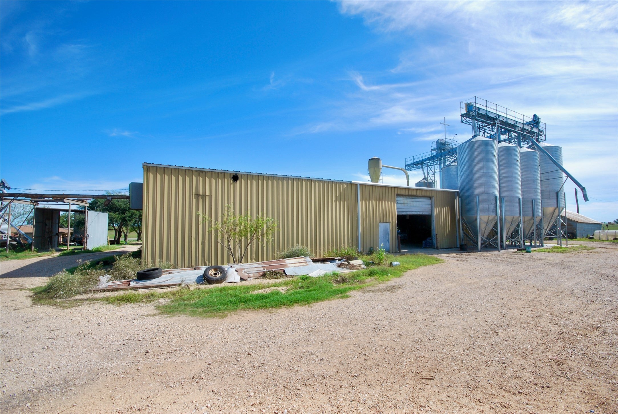 The Bohuslav Feed Mill has been manufacturing and producing agricultural products and feed since 1947. Originally founded in 1946 as a General Store and Gas Station, the Bohuslav Family purchased it in 1947 and expanded it to include a cotton gin and corn mill. It operated in that capacity until the late 1980s, and the Feed Mill and Store are still in operation today, providing all of your agricultural needs. Ideally located at the intersection of FM 532 and FM 1295 in Lavaca County, this area is rich in the cattle and farming industry, and agriculture has been and continues to be a large part of the way of life for the surrounding communities and the local economy. The mainstay of the property is the feed mill building which is approximately 6,000 SF under roof with concrete floors and includes a Fords feed mill manufactured by Myers Sherman Co. in Streator, Illinois 1956. The mill has been overhauled and is well maintained. The Mill building also includes 7-2019 hopper bottom bins/tanks (3-2000 Bushel & 4-1000 Bushel with leg spouting and dust collection.) and is also connected to a 50,000 bushel (48 ft, 8 ring) corrugated steel grain bin by overhead auger. The other 2 significant assets to the property are the liquid fertilizer station and the 3000 sq ft store, originally the start of the landmark operation back in 1946. The sale includes the full-time business, working inventory and commodities in storage. Additional Information: • 30x120 Quonset building for storage with overhead auger system • 40X90 warehouse for storage of grain • 45x90 equipment storage shop • 40x35 shop building • 30x30 equipment storage shop • Liquid fertilizer station with 5 fiberglass storage tanks with load out system • Tank 1-150,000 gal • Tank 2- 22,000 gal • Tank 3- 55,500 gal • Scale house (150 sq ft) with 2018 scale (serviced by Bastrop Scale in 2018) • Water well and private septic • Sale includes all working inventory and commodities in storage (upon request)