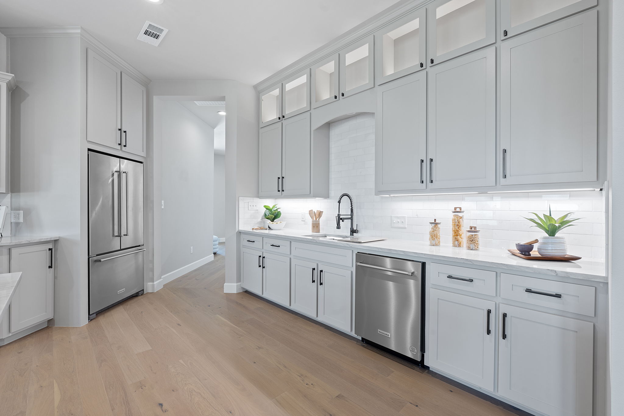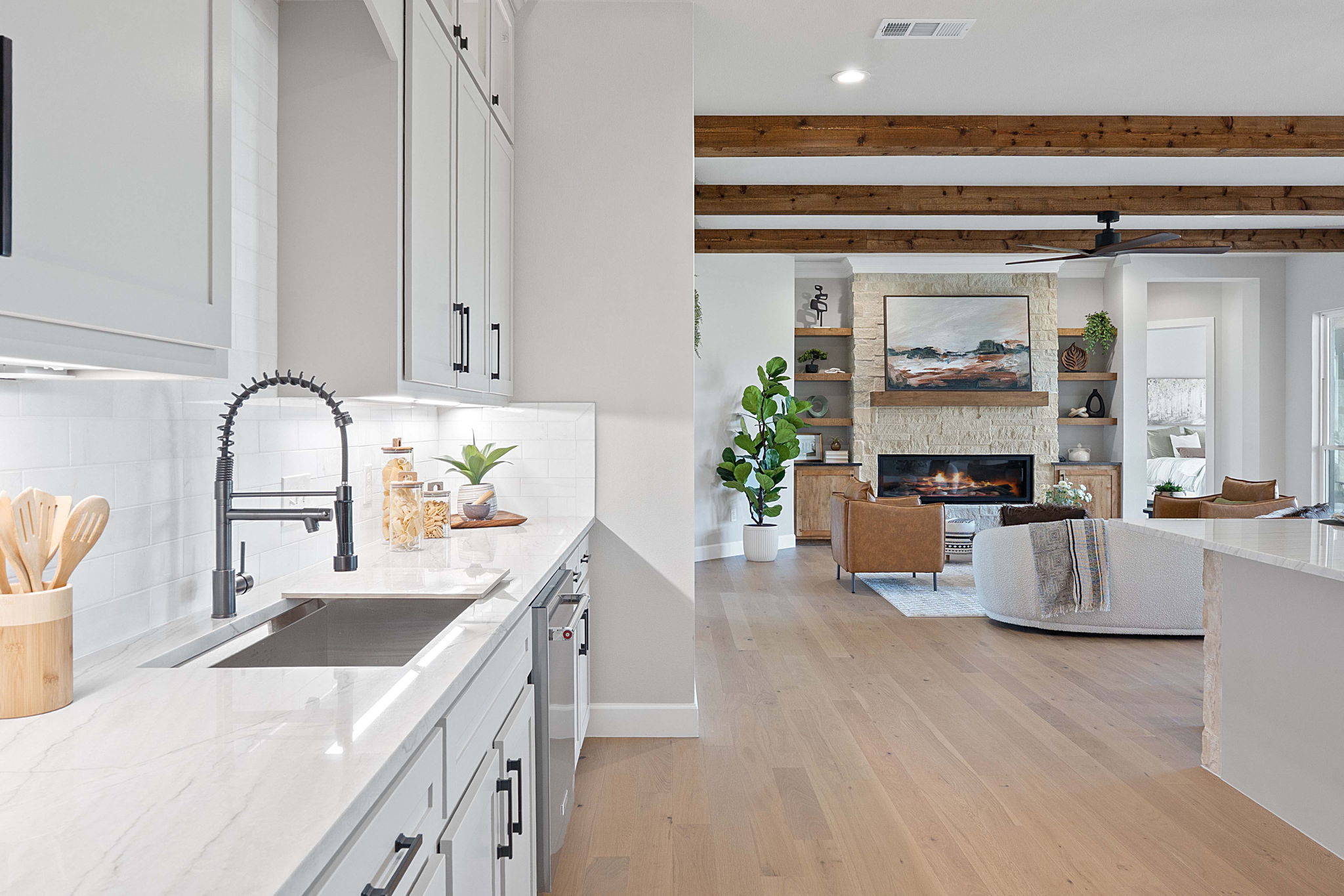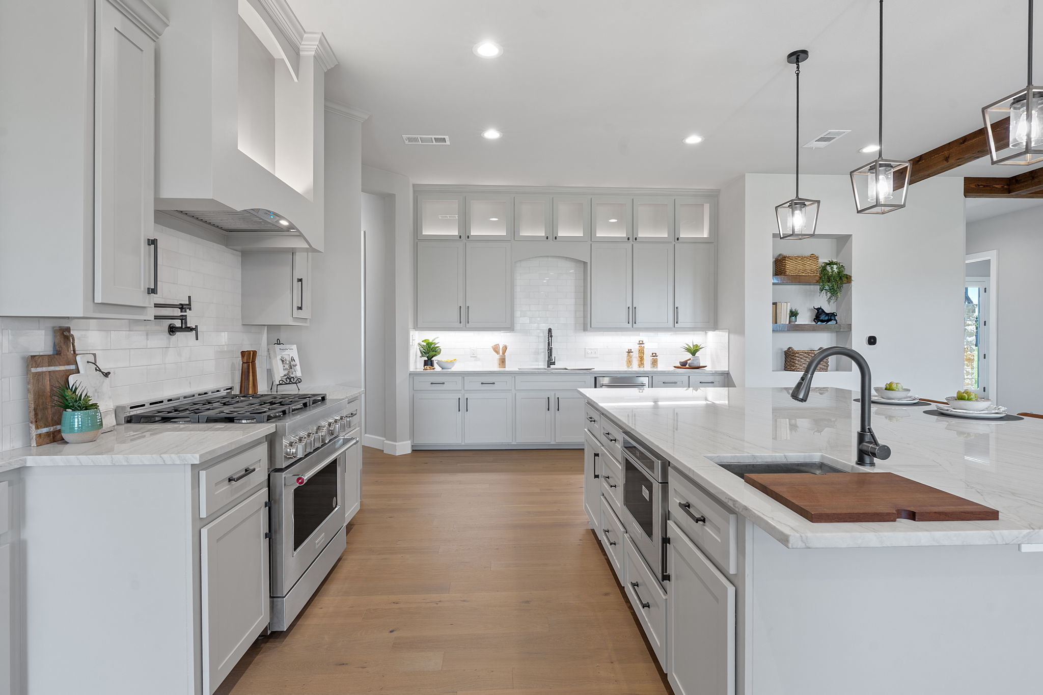 Tucked away on a gated cul-de-sac lot spanning two private acres, this never-been-lived-in craftsman residence delivers a rare combination of thoughtful design, comfort, and long-term functionality. From the moment you enter, the attention to detail is unmistakable. The heart of the home is anchored by an expansive kitchen island and premium KitchenAid appliances, complemented by a pot filler, dual pantries, and a generous butler’s pantry equipped with a beverage refrigerator and microwave. Quartzite, marble, and porcelain surfaces add a refined finish throughout the space. The flexible floor plan offers five bedrooms and five full bathrooms, including a bonus living area with its own private suite, ideal for guests or multigenerational living. The primary suite serves as a true retreat with a double shower, separate soaking tub, heated floors, and a custom-designed closet capable of organizing an extensive wardrobe and shoe collection. Additional features include zoned HVAC with individual room thermostats, a tankless water heater with circulation loop, whole-home water softener, heated and lighted commode seats, and a direct vent gas fireplace that anchors the main living area. Built with efficiency and durability in mind, the home includes spray foam insulation, seamless gutters, a standing seam metal roof, and an extensive irrigation system. Ample storage is found throughout, along with a three and a half car garage offering attic decking, a utility sink, and an oversized laundry room. Designed to be both move-in ready and enduring, this property offers a rare blend of craftsmanship, privacy, and everyday livability.