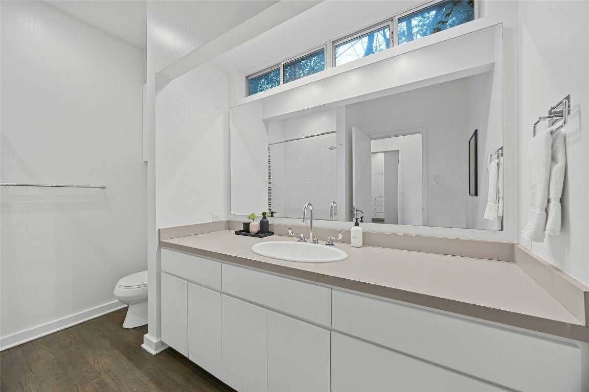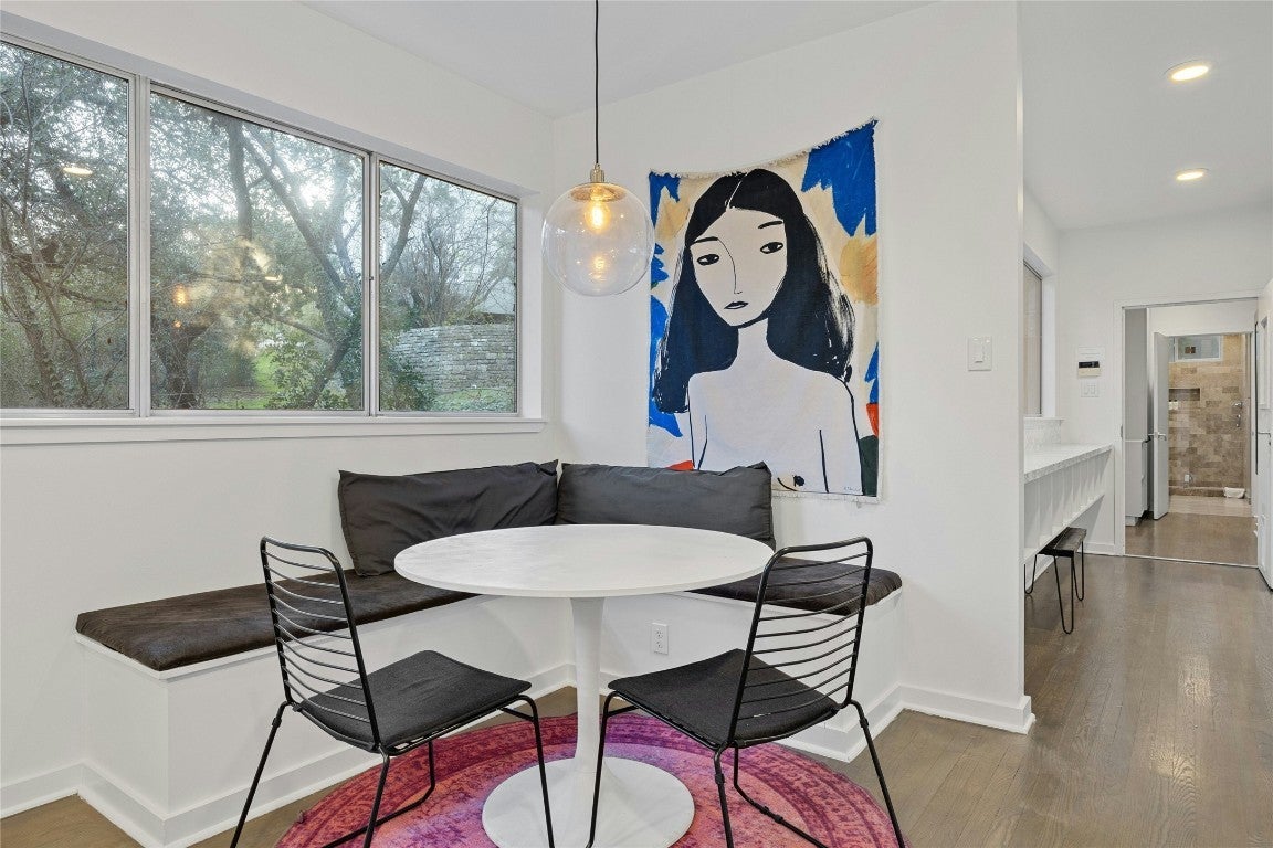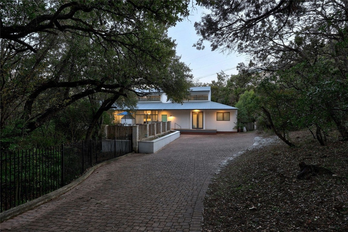 Offering a unique blend of contemporary design and natural beauty nestled on a .73 acre wooded lot on the prestigious Stratford Dr, this home is an oasis within the city. This residence boasts a generous living space of 3,273 square feet with five bedrooms and four bathrooms. The layout primarily features one-story living with only one bedroom and bathroom situated upstairs, providing an ideal retreat for guests or a quiet work-from home space. Step inside to be greeted by high ceilings and clean lines that create a modern yet welcoming ambiance. An abundance of natural light illuminates every corner of the house, enhancing the sense of spaciousness. The interior seamlessly combines style and comfort with wood flooring throughout and two master baths adorned with elegant marble detailing. The heart of this home is undoubtedly its chef's kitchen, outfitted with a Vulcan 6 burner range for culinary excellence. Whether you're preparing daily meals or hosting dinner parties, this kitchen can cater to all your needs. Outside, an expansive deck overlooks the serene lap pool - perfect for entertaining or simply unwinding after a long day. Recent updates have been made to maintain the quality of this property while leaving room for future personalization whether through remodeling or starting anew. Enjoy proximity to Zilker Park, Lady Bird Lake, Barton Springs, Downtown and some of Austin's finest dining and entertainment.