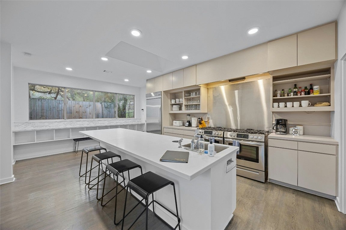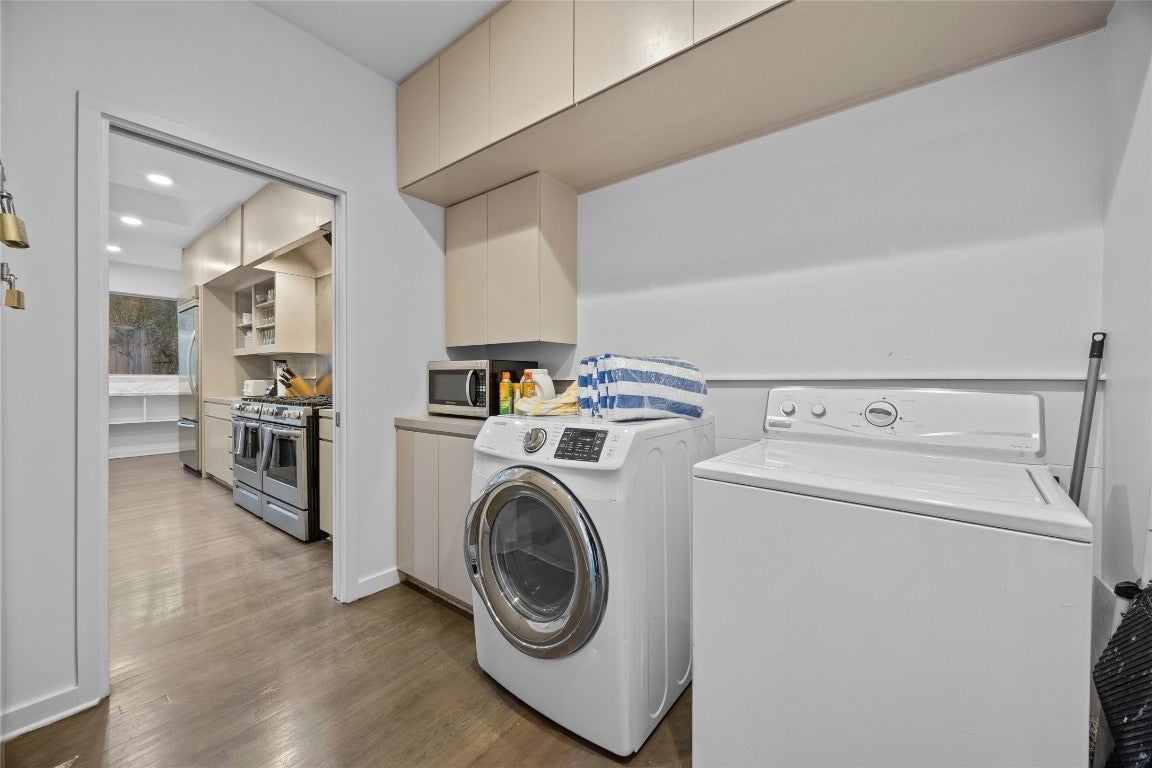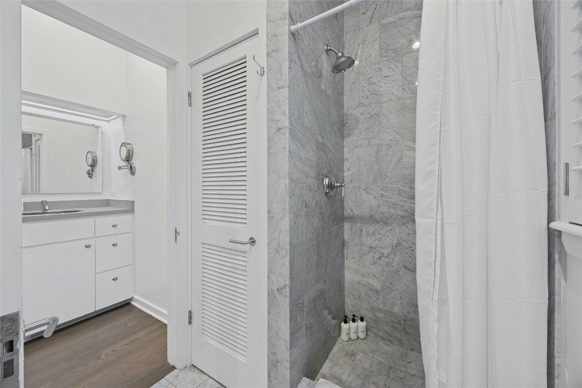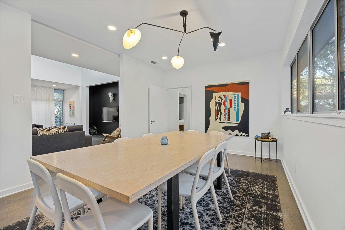 Offering a unique blend of contemporary design and natural beauty nestled on a .73 acre wooded lot on the prestigious Stratford Dr, this home is an oasis within the city. This residence boasts a generous living space of 3,273 square feet with five bedrooms and four bathrooms. The layout primarily features one-story living with only one bedroom and bathroom situated upstairs, providing an ideal retreat for guests or a quiet work-from home space. Step inside to be greeted by high ceilings and clean lines that create a modern yet welcoming ambiance. An abundance of natural light illuminates every corner of the house, enhancing the sense of spaciousness. The interior seamlessly combines style and comfort with wood flooring throughout and two master baths adorned with elegant marble detailing. The heart of this home is undoubtedly its chef's kitchen, outfitted with a Vulcan 6 burner range for culinary excellence. Whether you're preparing daily meals or hosting dinner parties, this kitchen can cater to all your needs. Outside, an expansive deck overlooks the serene lap pool - perfect for entertaining or simply unwinding after a long day. Recent updates have been made to maintain the quality of this property while leaving room for future personalization whether through remodeling or starting anew. Enjoy proximity to Zilker Park, Lady Bird Lake, Barton Springs, Downtown and some of Austin's finest dining and entertainment.